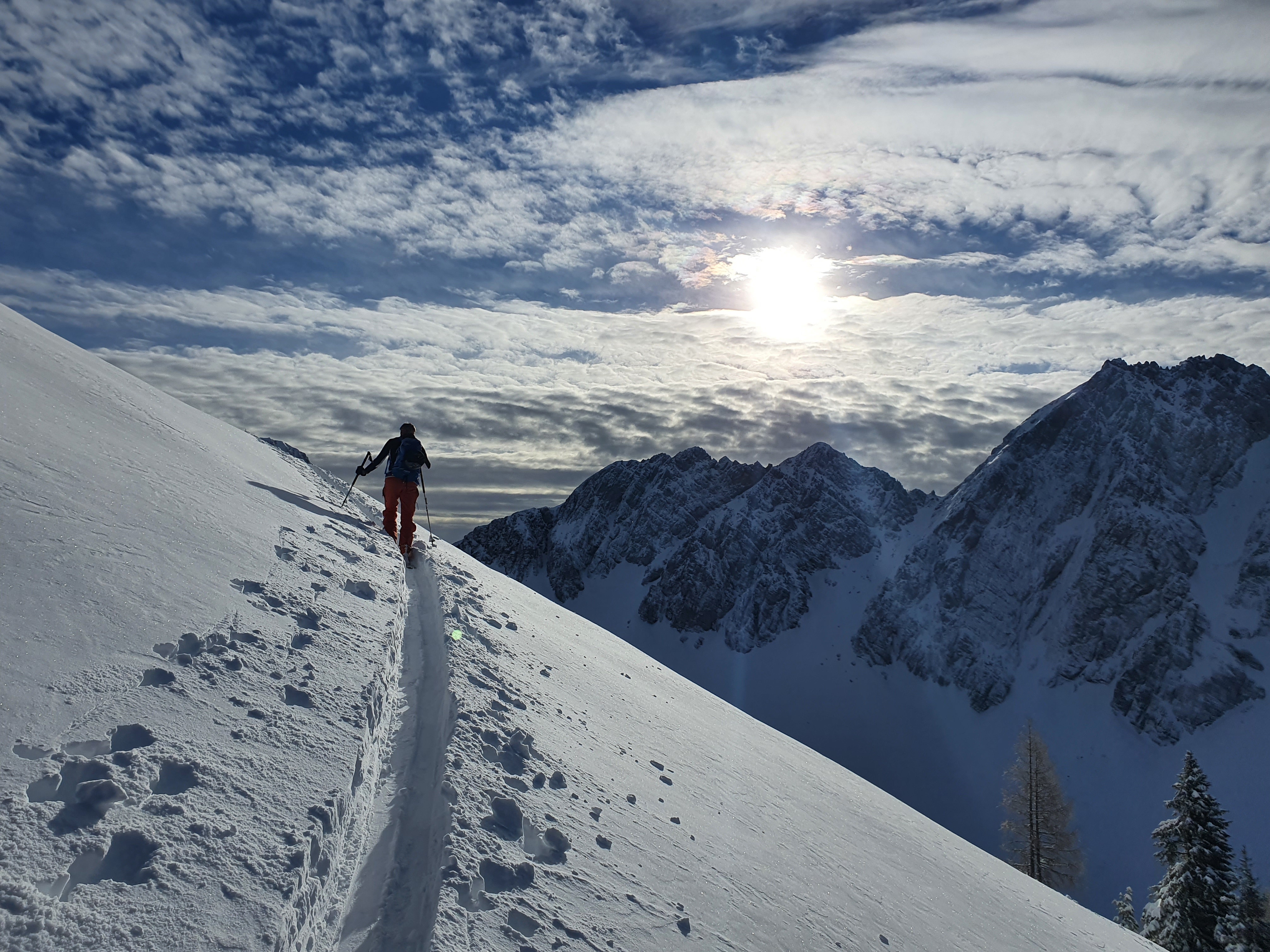 Wenn es im Süden ablädt, dann ist der Kosiak meist eine Bank. Allerdings fängt nur der frühe Vogel den Wurm. Da heißt es dann dafür früh aufstehen und auf nur einspurig geräumter Straße ins Bärental zu fahren. Hut ab vor dem Schneeräumkommando der Gde Feistritz, die dies und auch das beiseite schieben von umgestürzten Bäumen zu so früher Stunde schon erledigt und während unserer Anfahrt auch den PP bei der Stouhütte schon größtenteils vom Schnee befreit hatten. Danach war viel Spuren in einsamer Winterlandschaft angesagt. Einige Nächtigungsgäste der Klagenfurter Hütte hatten das dann oberhalb der Matschacher Alm schon vor uns erledigt. Pulvertraum bei der Abfahrt mit viel Gegenverkehr danach zurück zum Ausgangspunkt. Die ganze Geschichte zur Tour in nächster Zeit unter www.schittertour.at