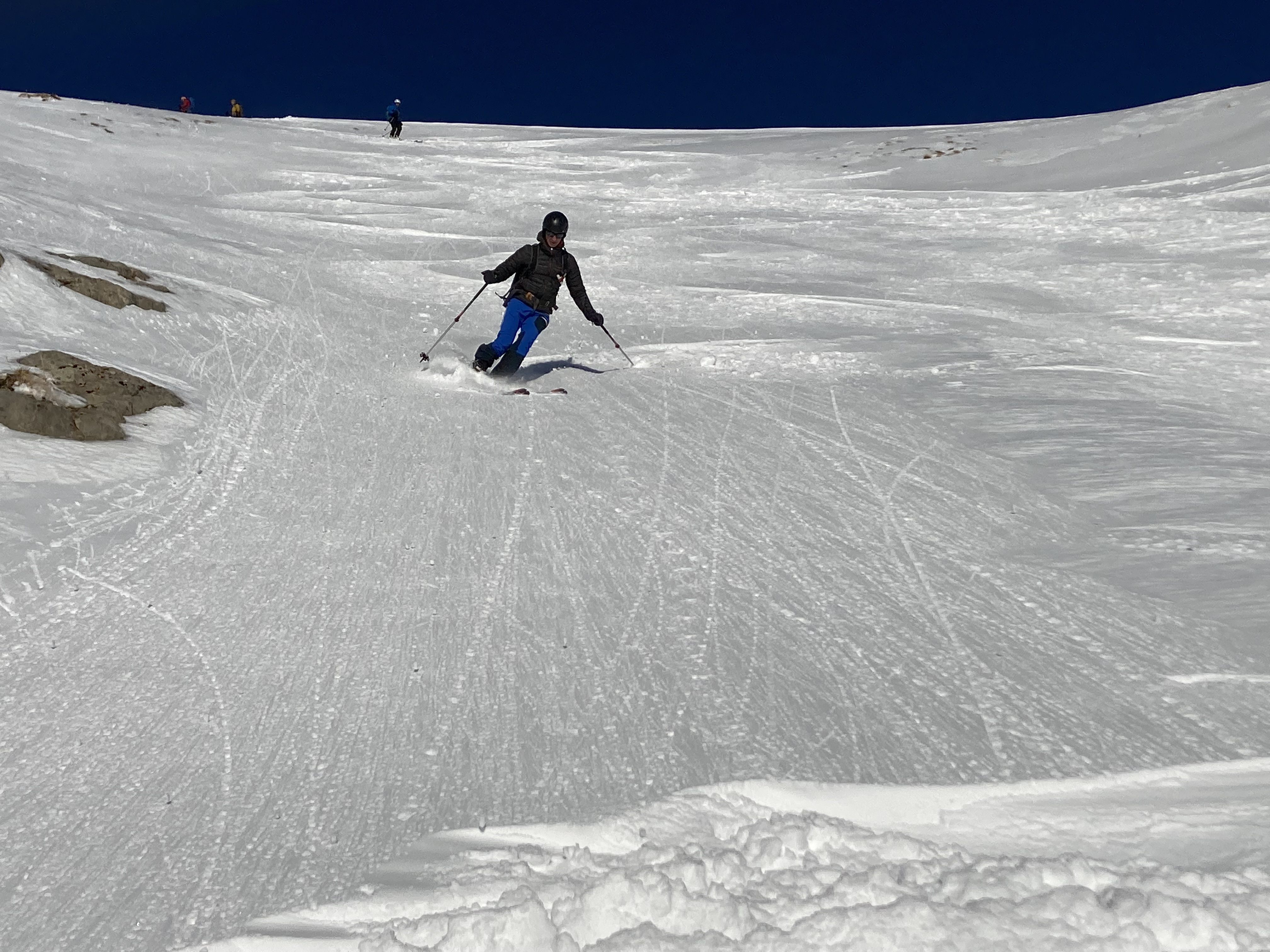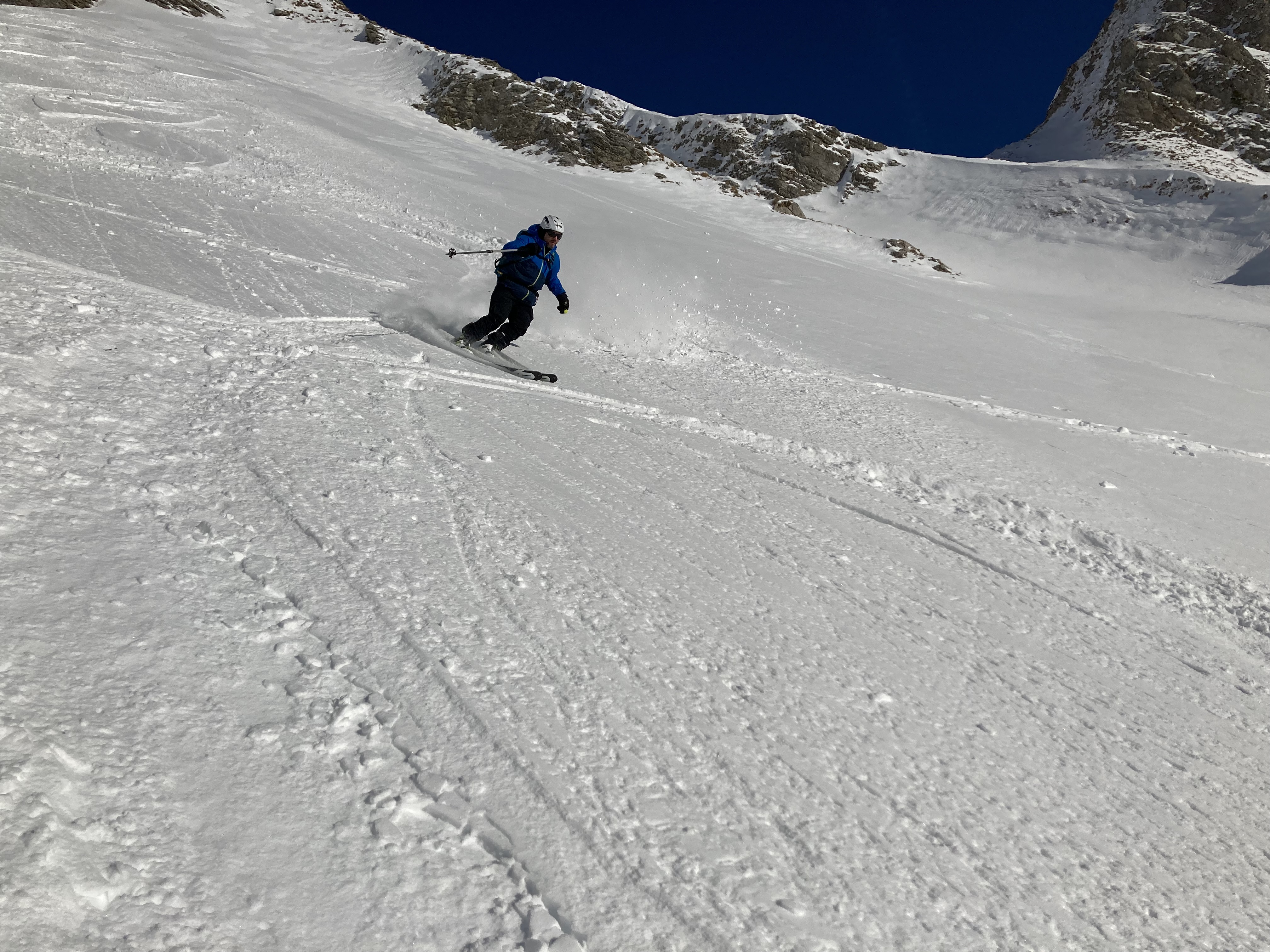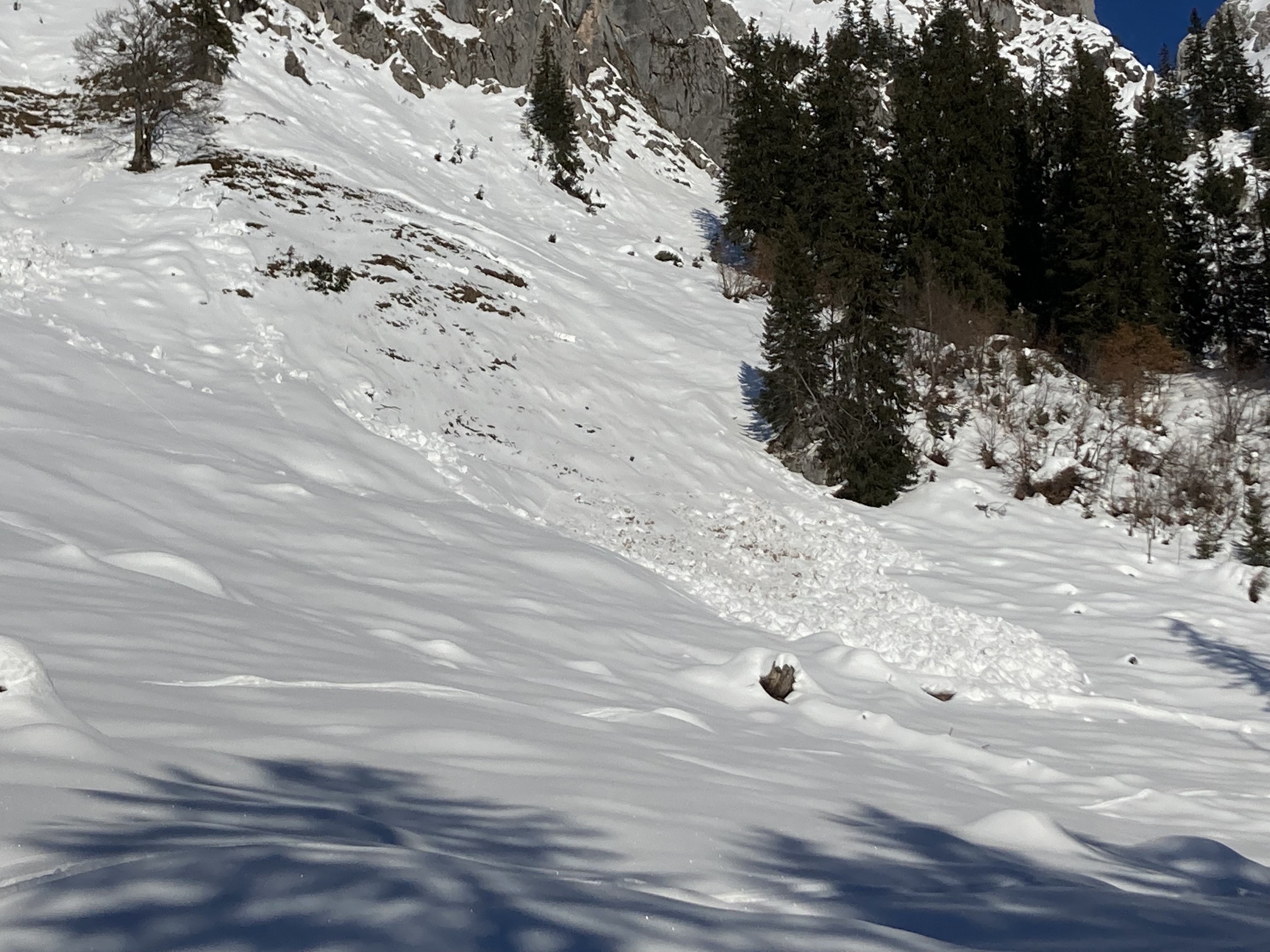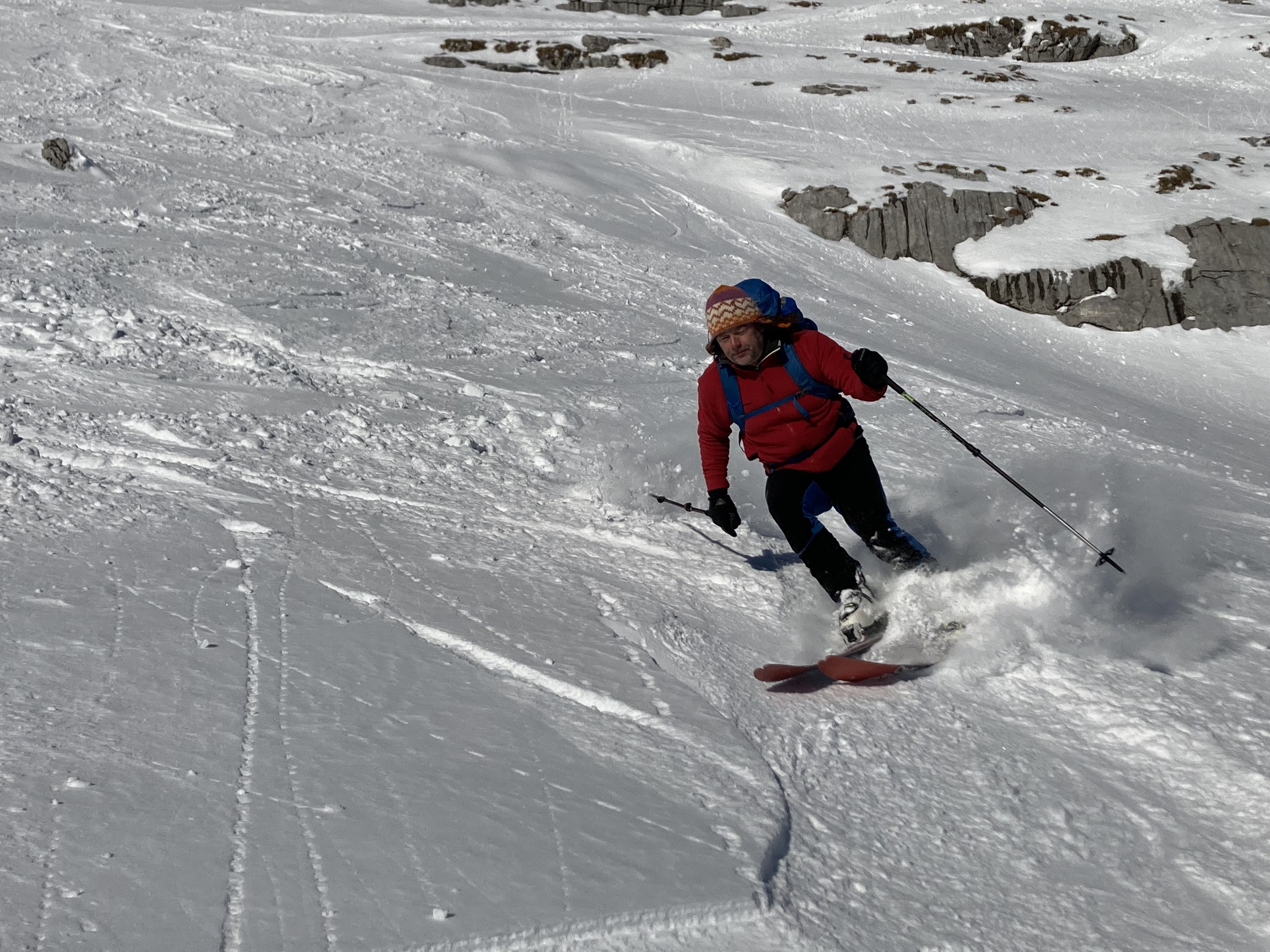 Start bei -11° C am Parkplatz bei der Ebner Klamm; ab der Ebeneralm war es in der Sonne angenehm warm, bzw. zum Schwitzen ;o). Der sonnige Aufstieg bei weitgehender Windstille war ein landschaftlicher Genuss. Die 5-10 cm Neuschnee auf der harten Harschunterlage waren nur im unteren Teil der Tour gleichmäßig verteilt. Vom Gipfel bis auf ca. 1500 m (Direttissima Abfahrt vom Gipfel) waren die Bedingungen teilweise recht abwechslungsreich aber sehr sicher!