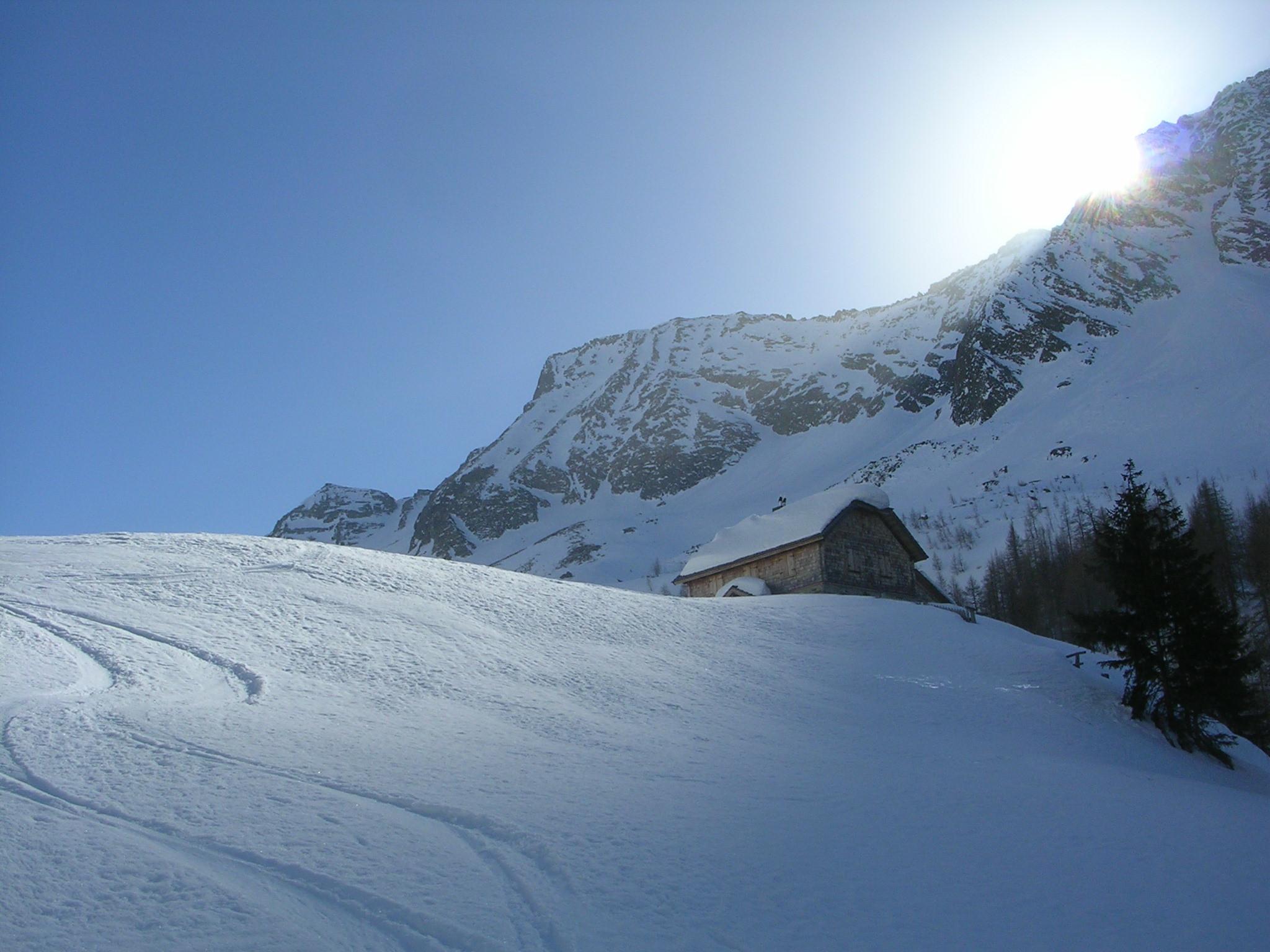 Vorletzte Woche war der Schnee schon beim Anstieg oberhalb der Hütte aufgeweicht. Da wäre es besser gewesen, rechts vom See hochzugehen. Letzte Woche hat es dafür gar nicht aufgefirnt, nur bei der Abfahrt nach Mallnitz war der Schnee weich, aber schön zu fahren.