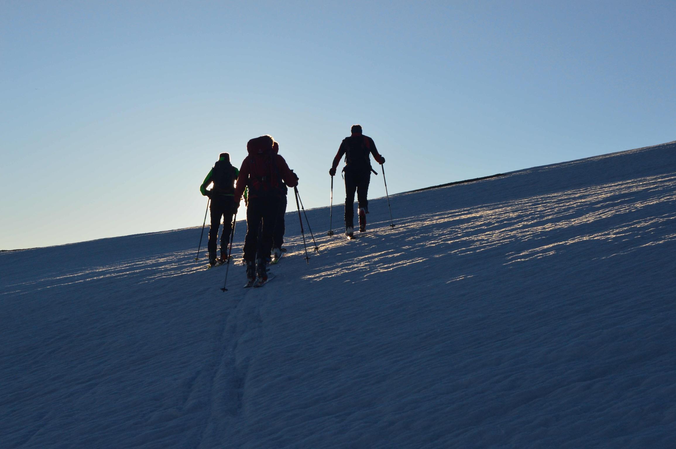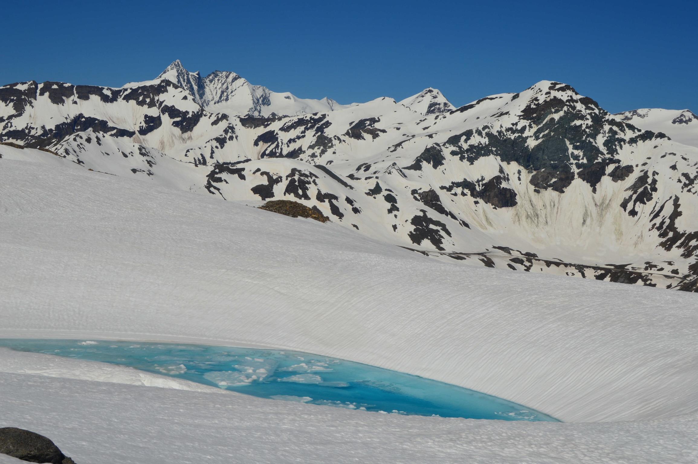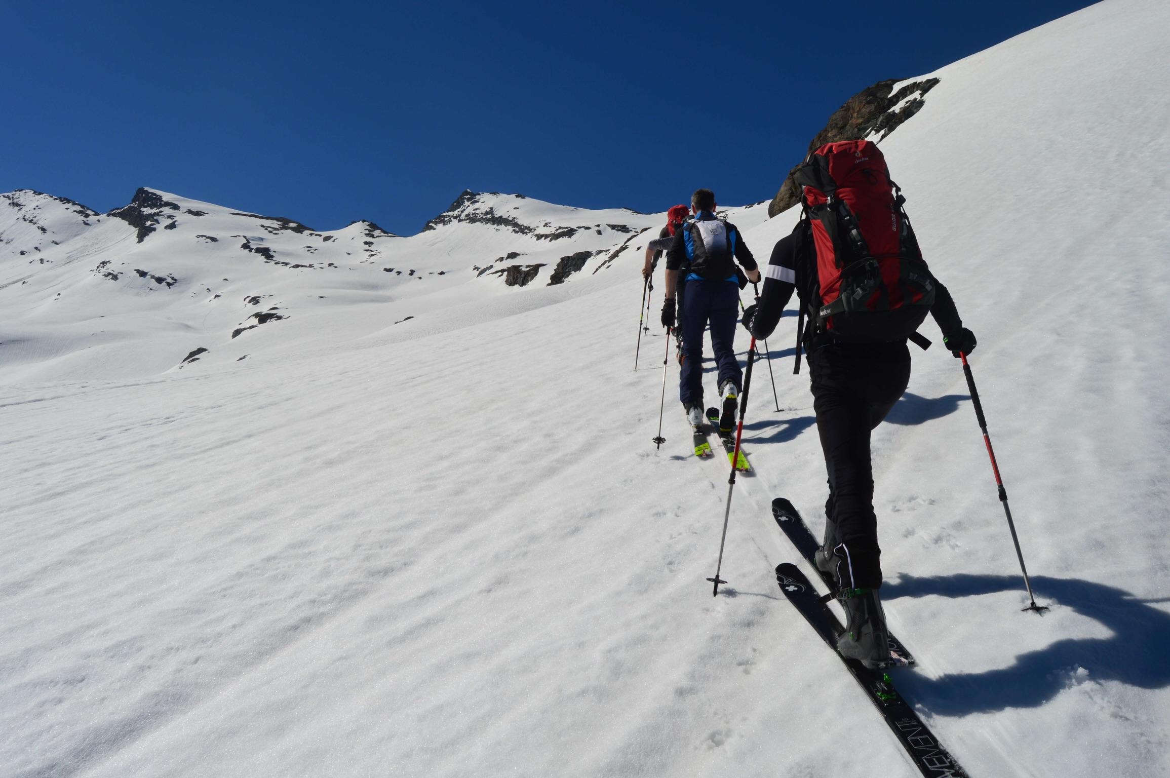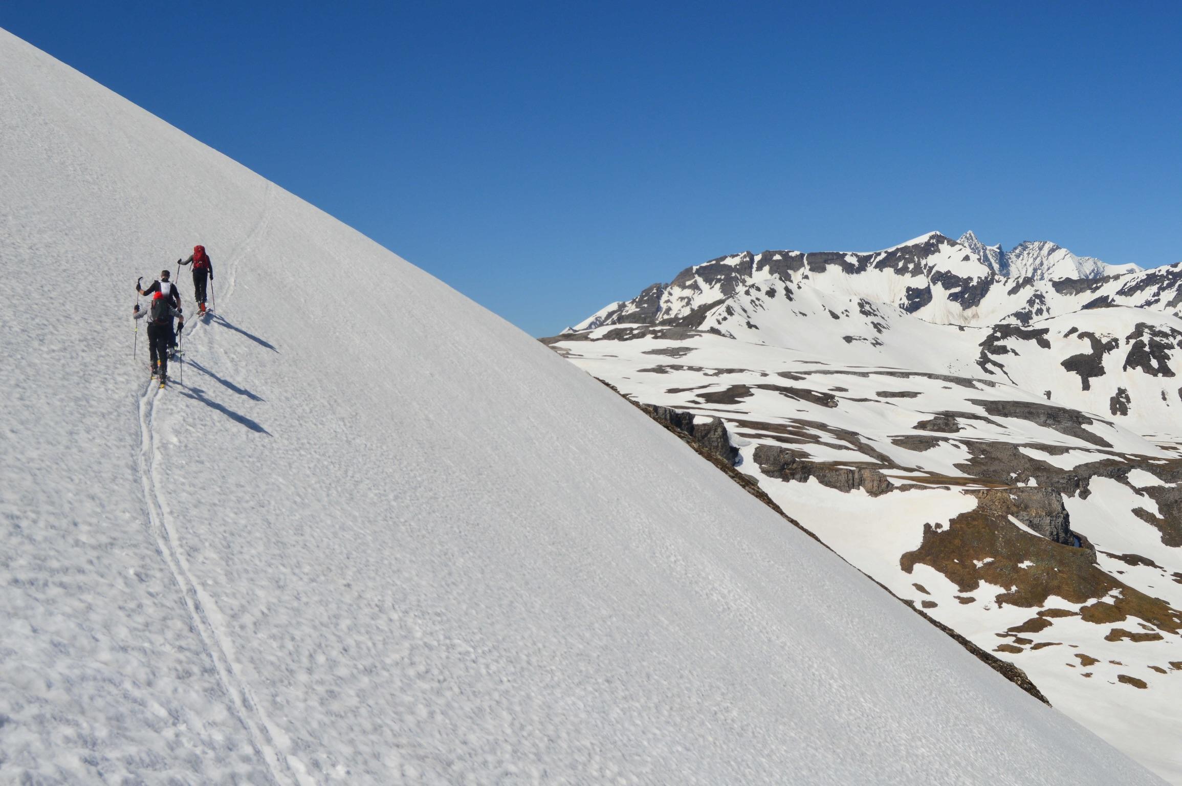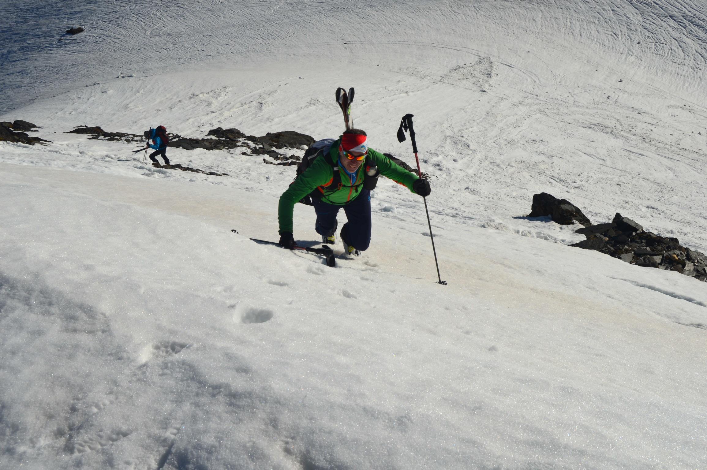 Der Vorteil bei dieser Tour ist, dass die Abfahrt vor dem Hauptaufstieg erfolgt und dadurch die Schneeverhältnisse auch Mitte Juni bei vernünftiger Abstrahlung noch perfekt sind.