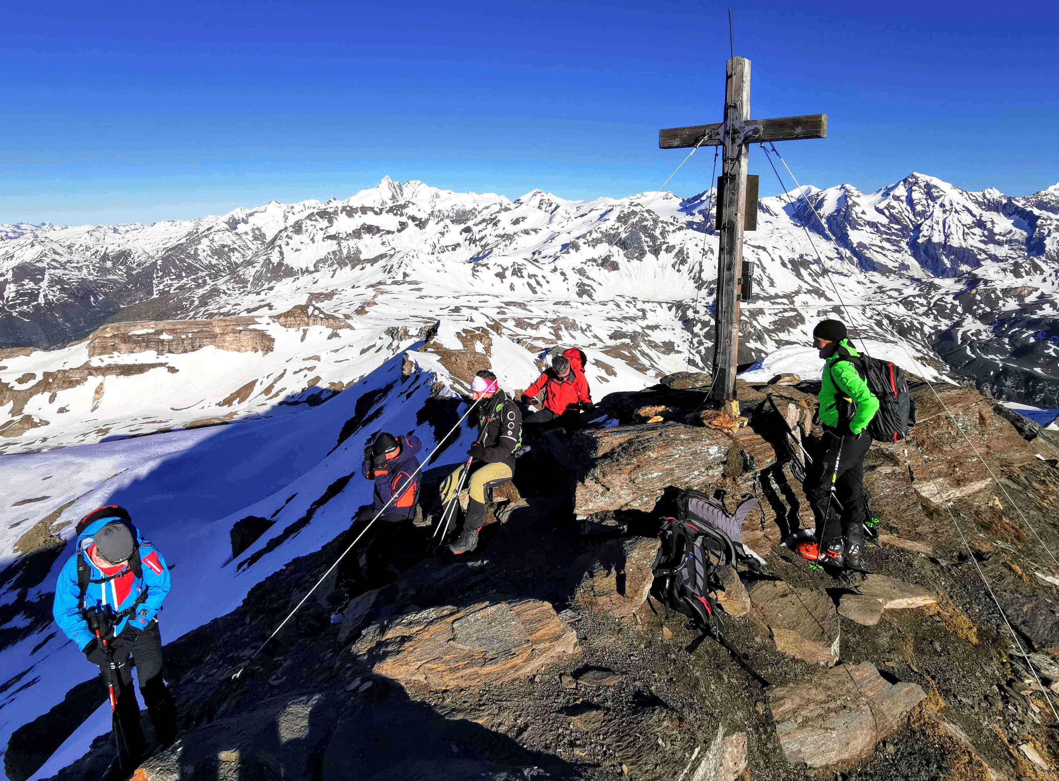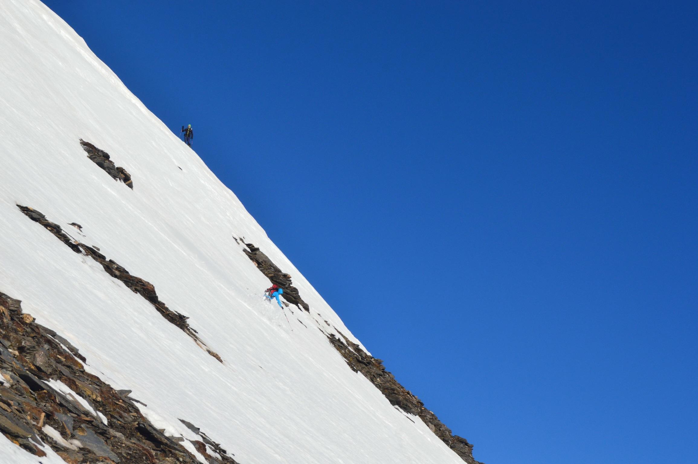Wir sind erst aufs Modereck (aktuell kann man fast direkt vom Gipfel über die steile NO-Flanke abfahren.
