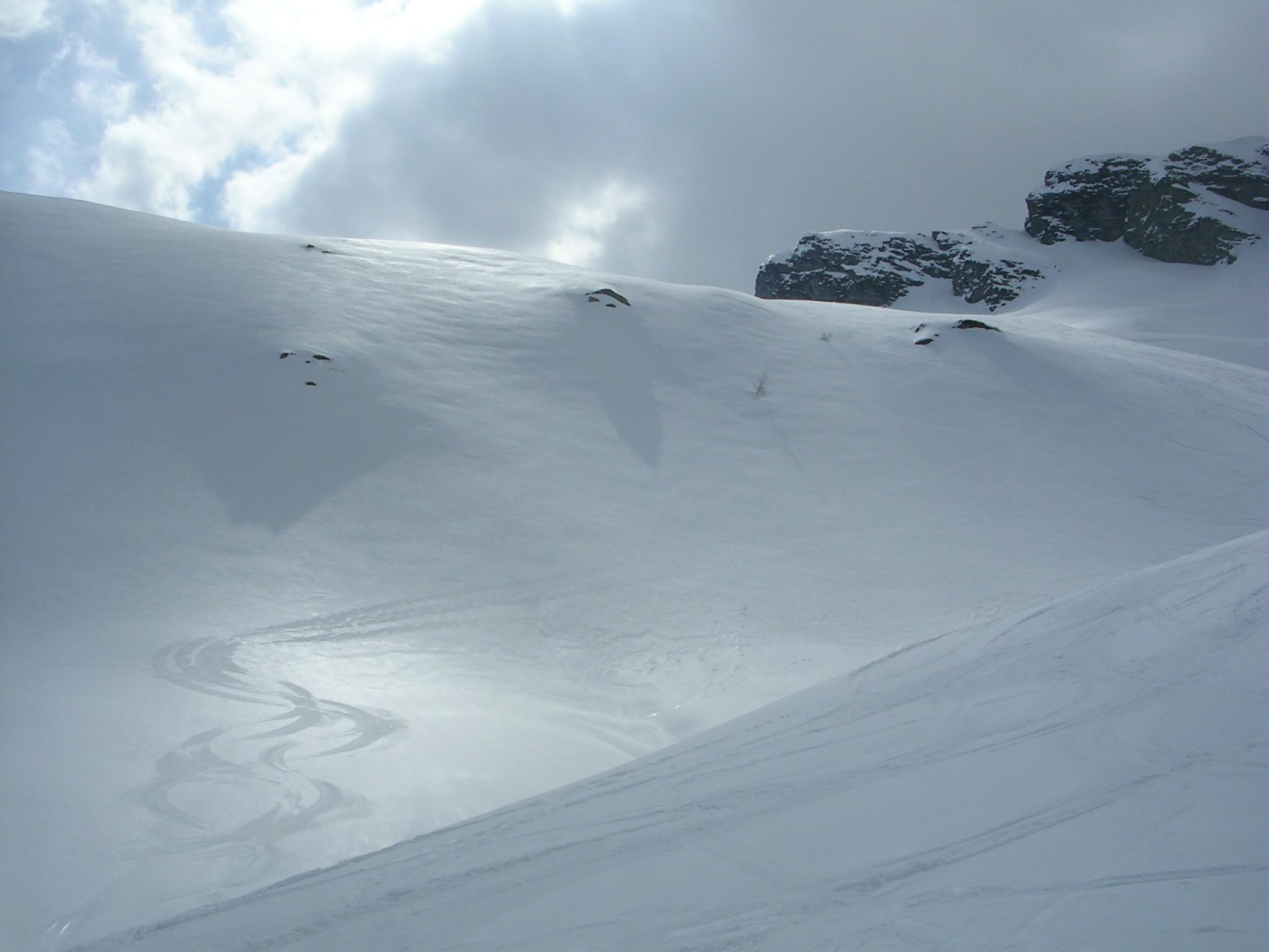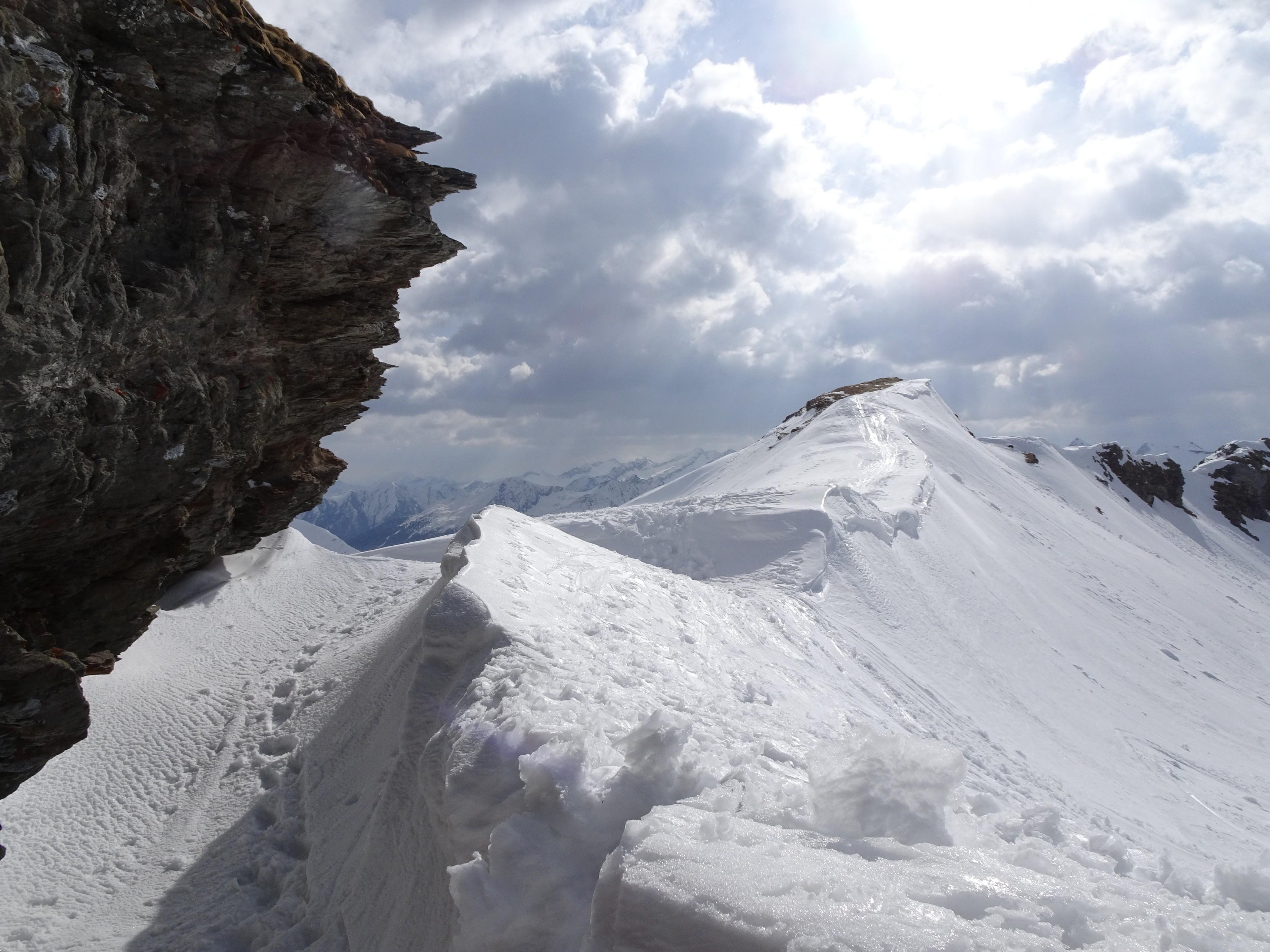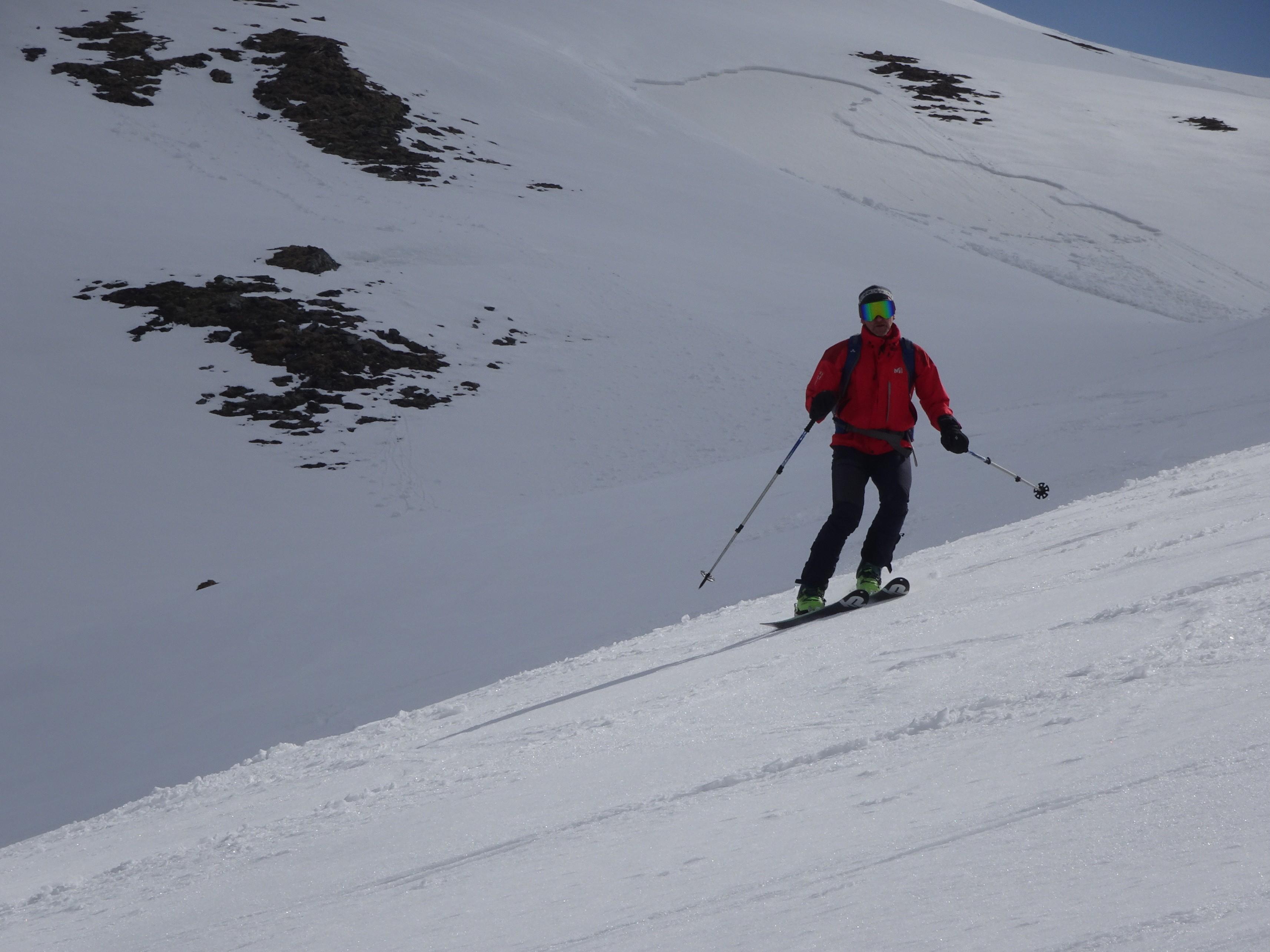 Am Gipfel blies ein eisiger Wind, aber unterhalb war es sehr angenehm. Wider Erwarten war die Abfahrt durch's Kolmkar dann schön firnig.