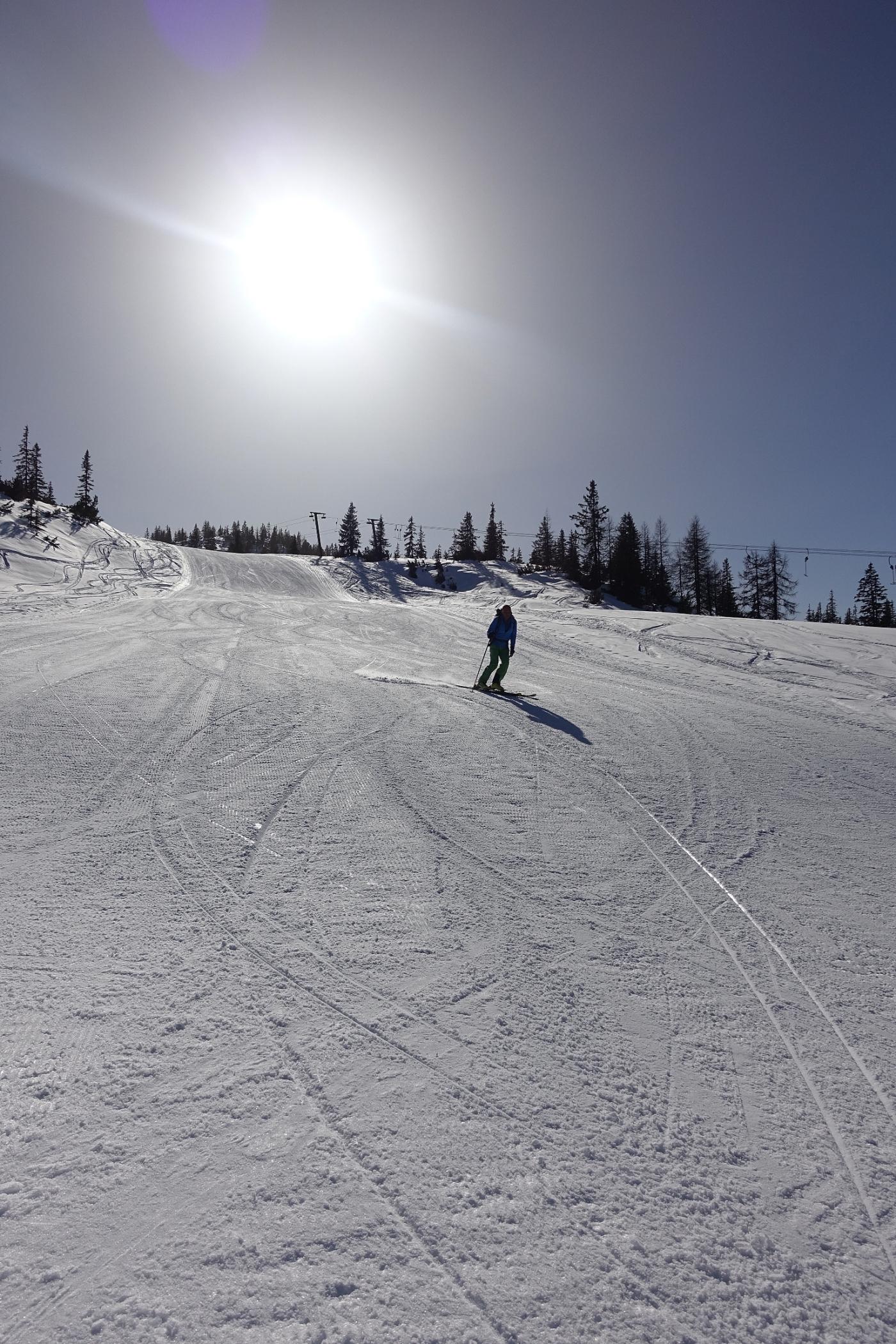 immer noch nicht ganz fit - daher eine Pistentour in Forstau auf die Vorder Fager unternommen, kein Liftbetrieb Pisten werden jeden Tag neu präpariert, kein Nachdenken/Berücksichtung der Hangexposition, kein Stress bzgl. Firnzeitmanagement usw. einfach rausgehen und den Tag, die Ruhe und die Sonne mit Frau genießen.