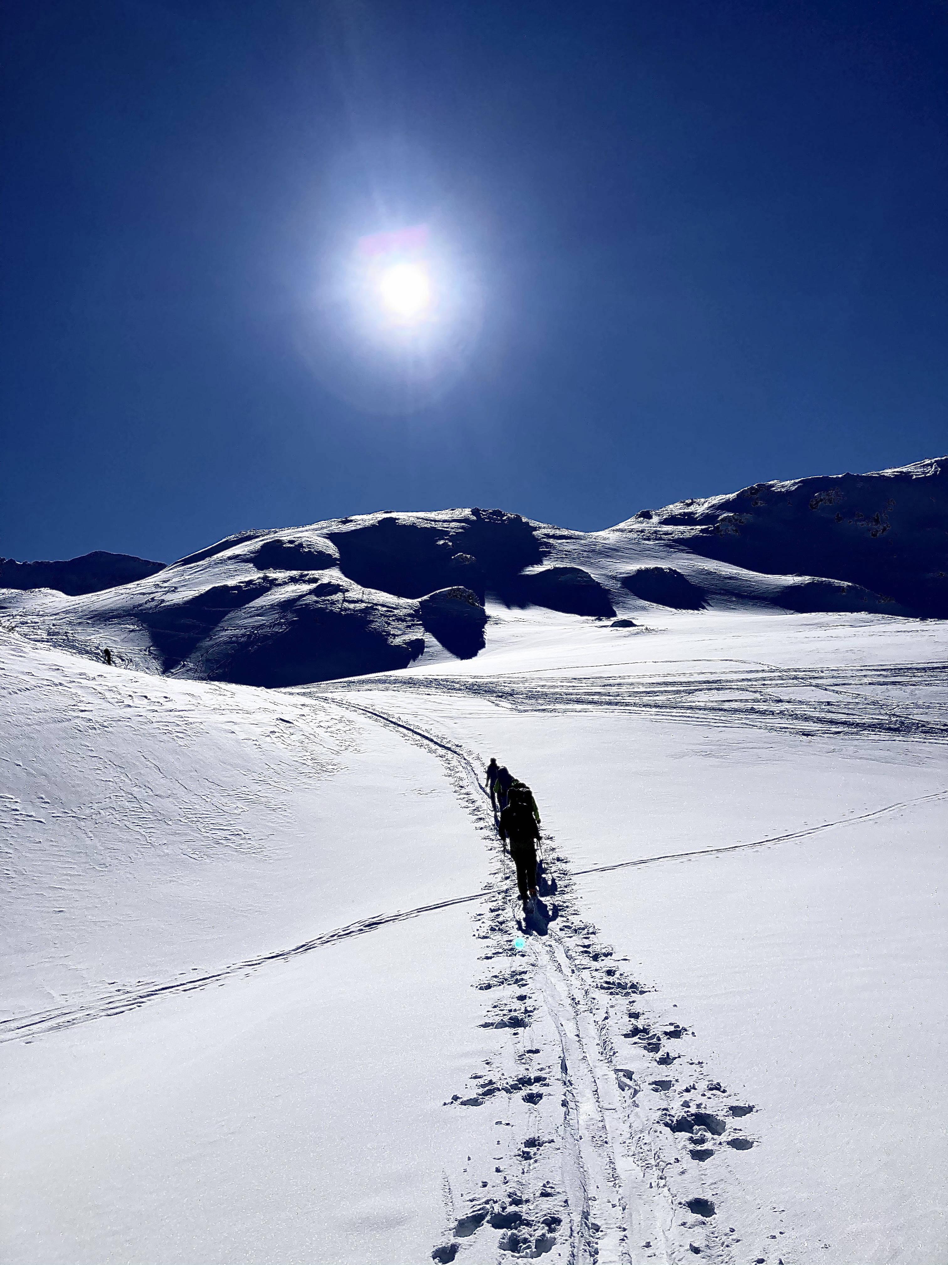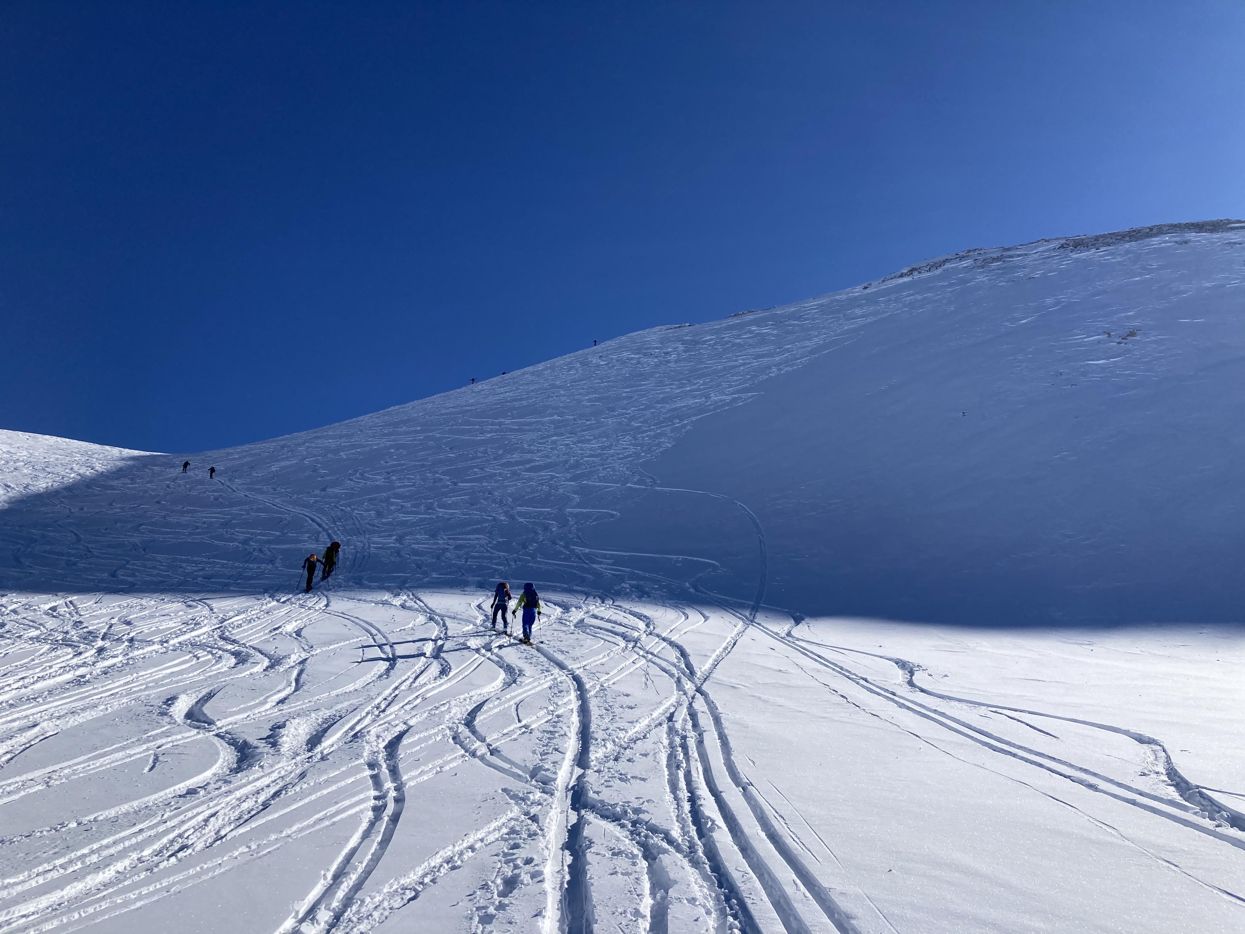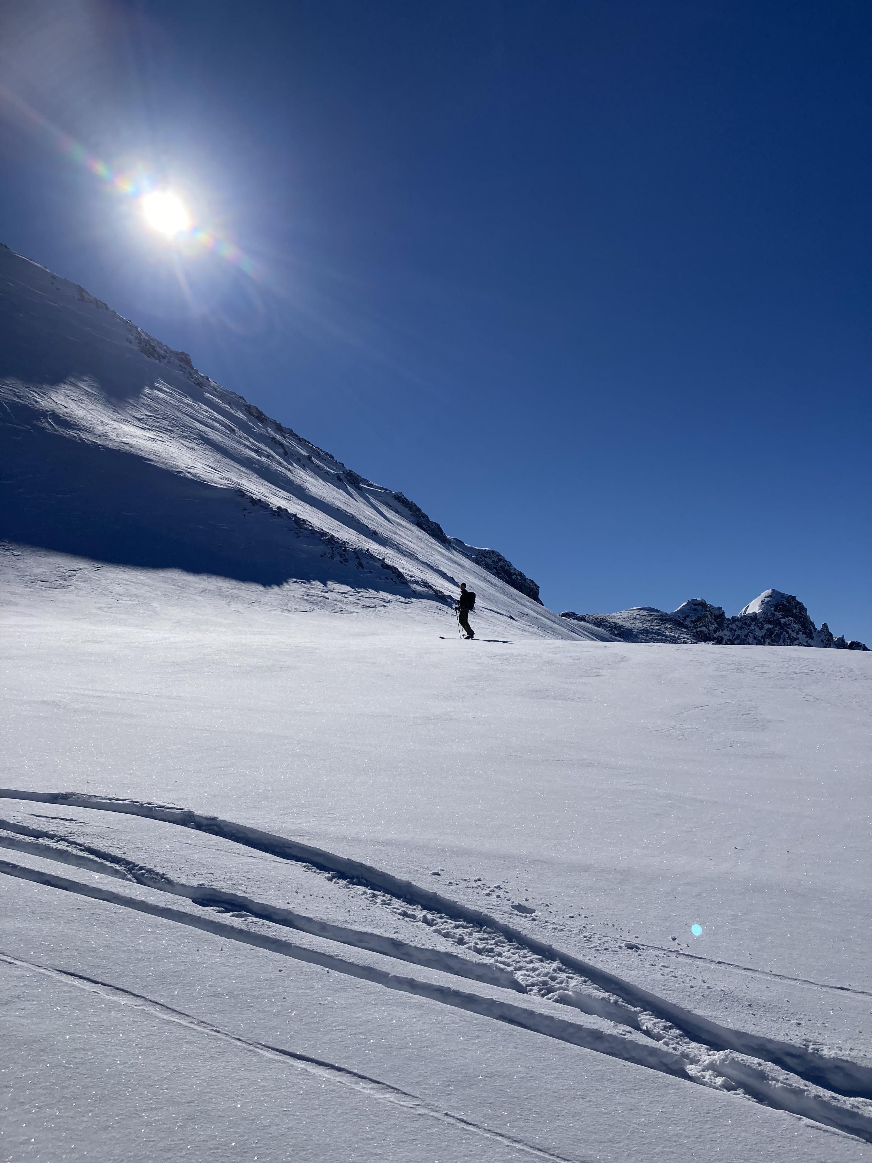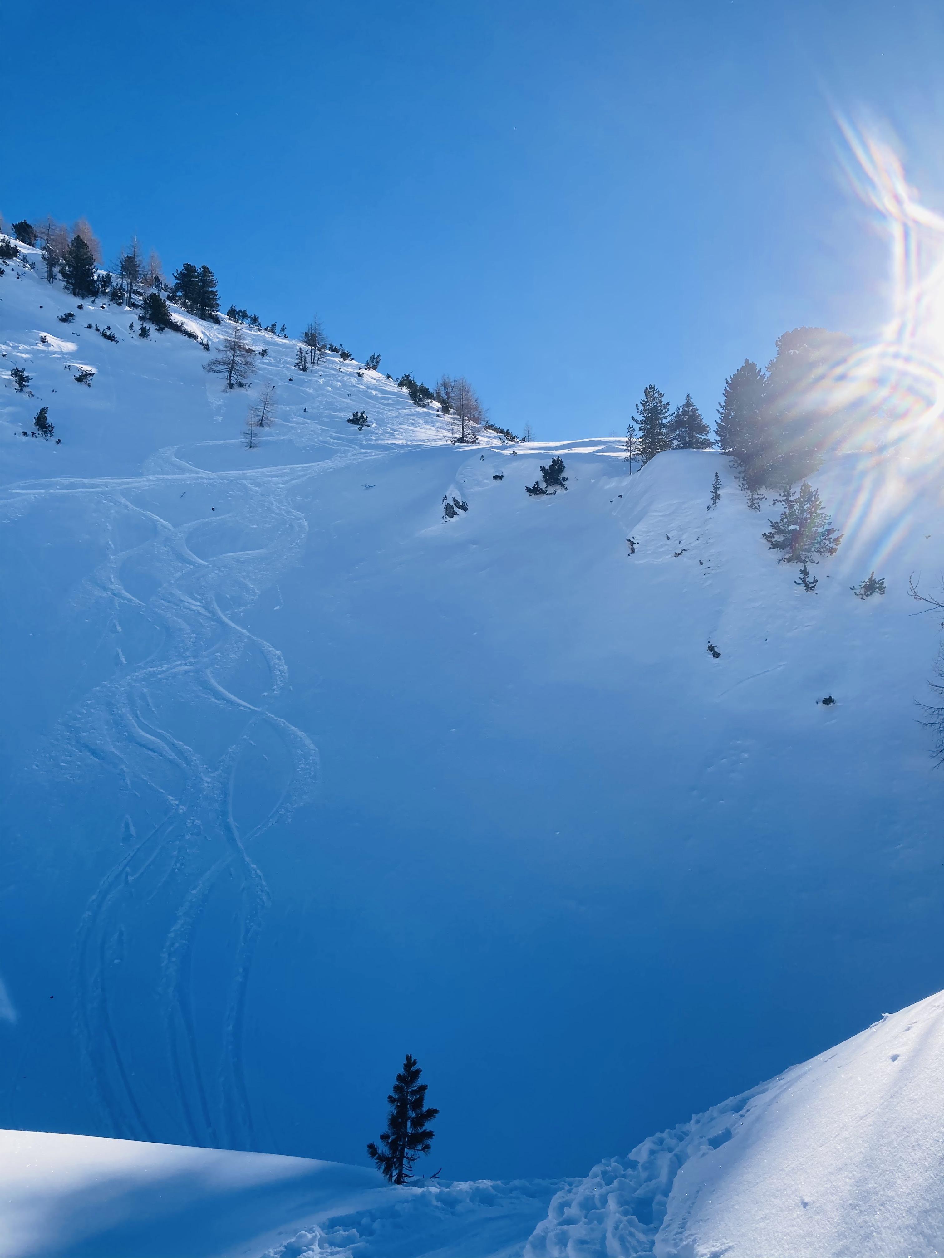 Fazit.: eine mehr als lohnende Tour da nicht viel los und genügend unverspurte Hänge und Sonne pur...