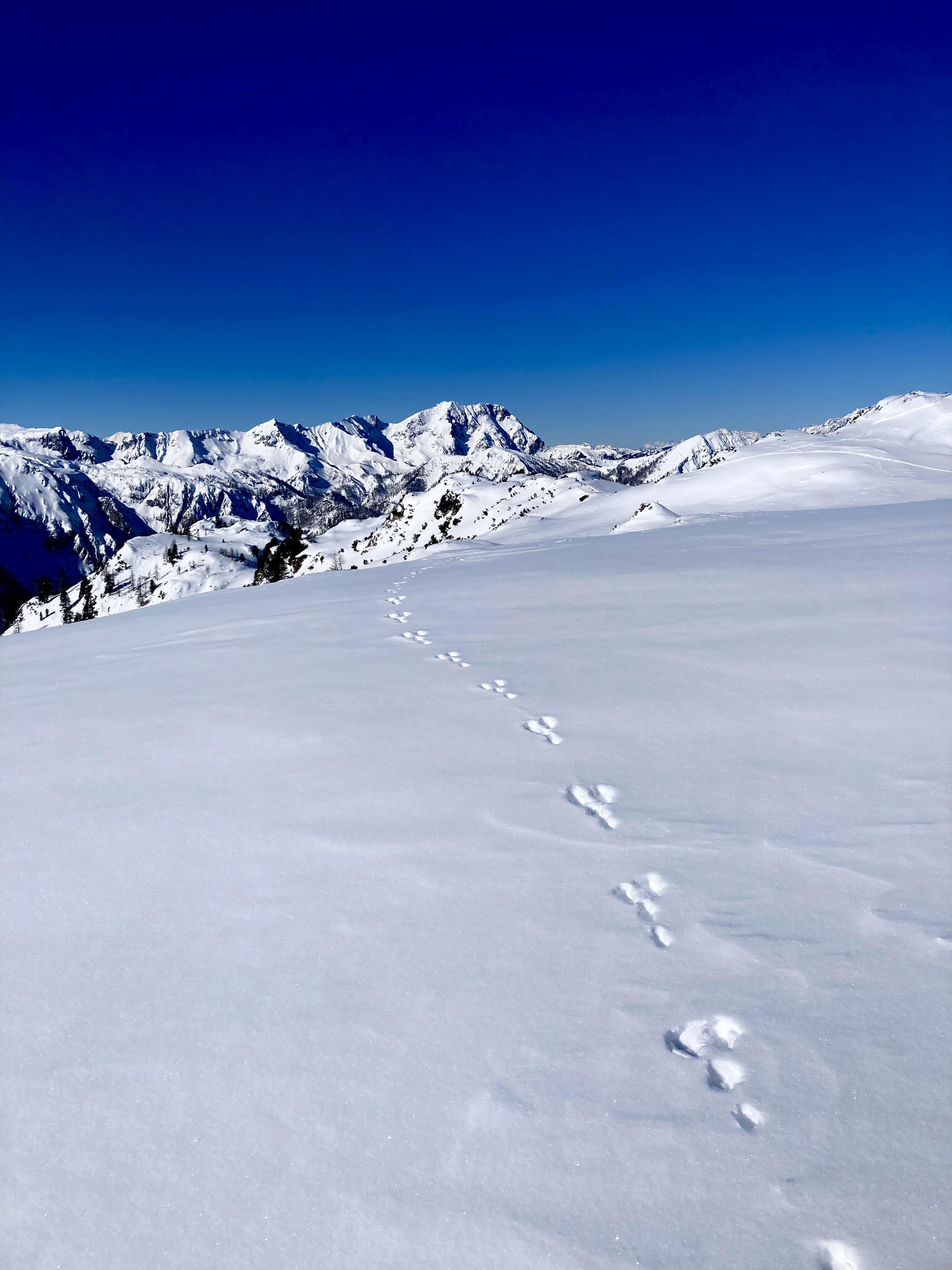 neben dem fantastischen Wetter auch einen Schneehasen gesichtet, der auf jeden Fall schneller als wir war...