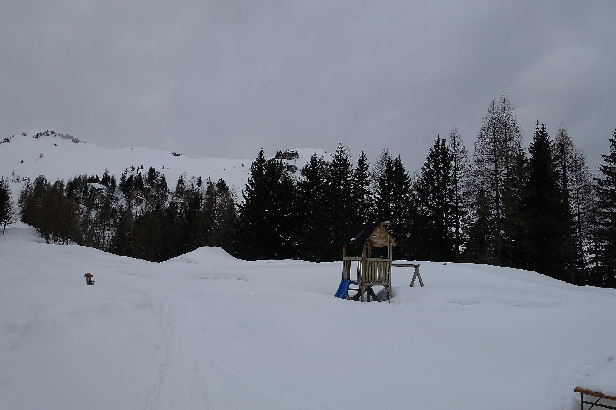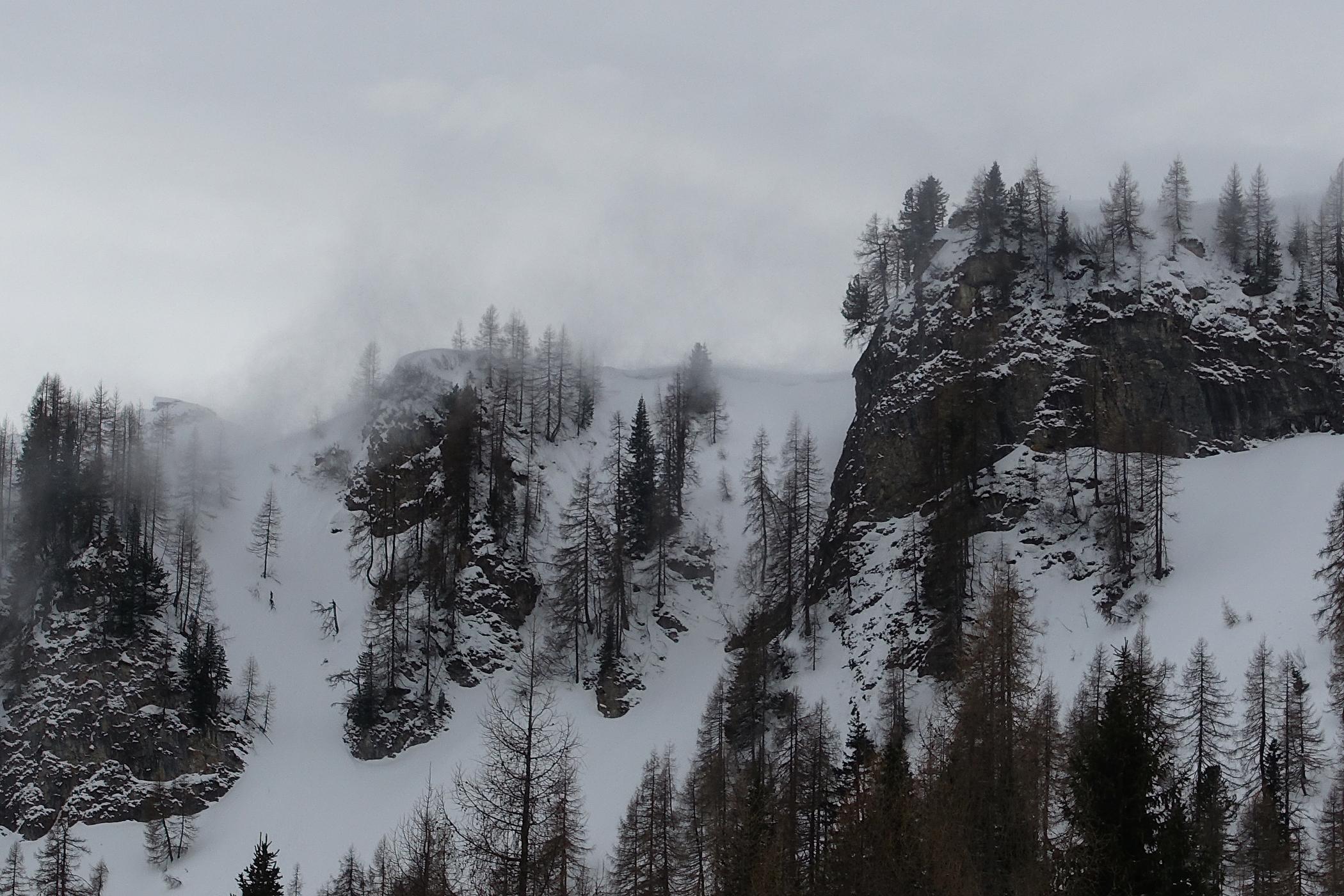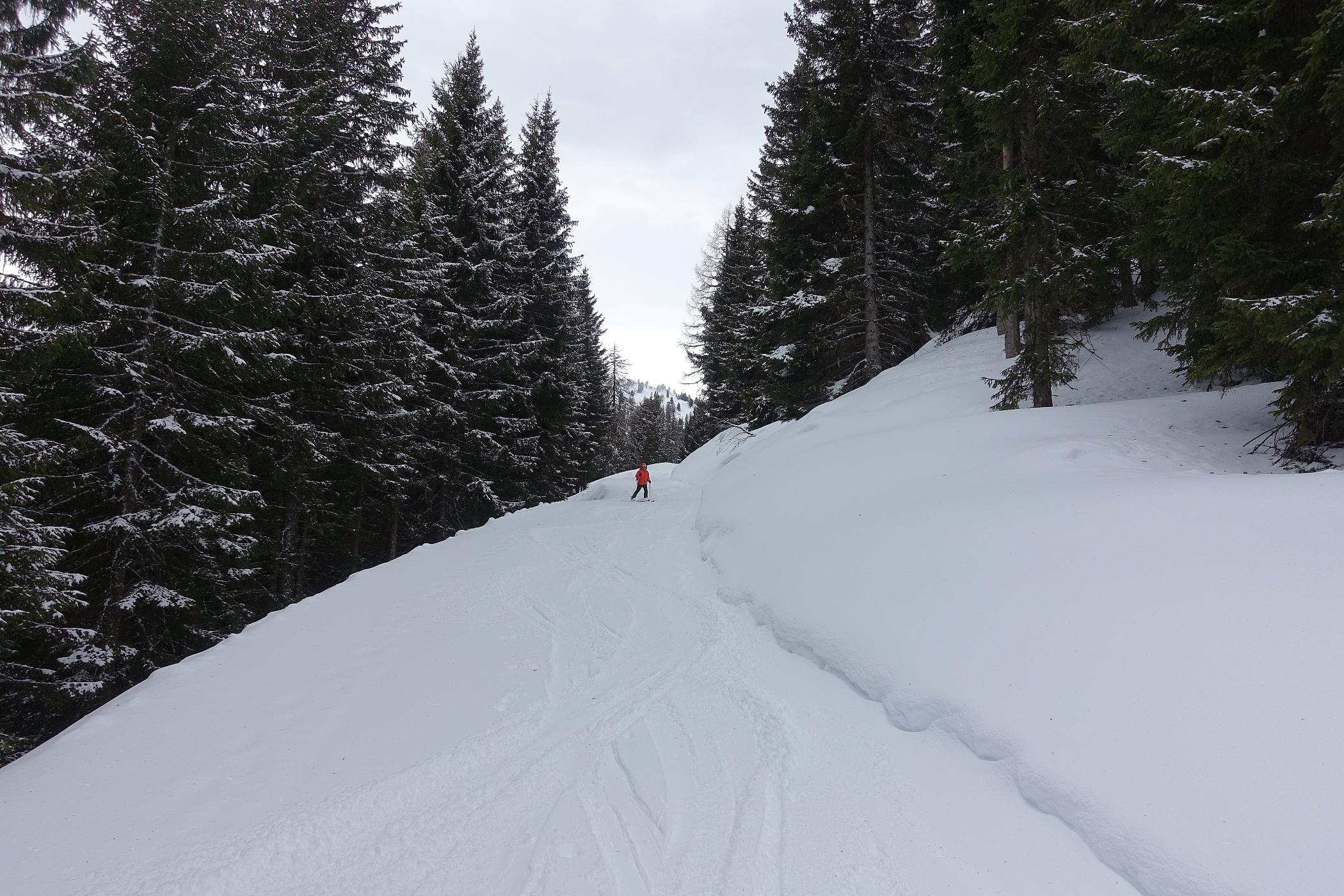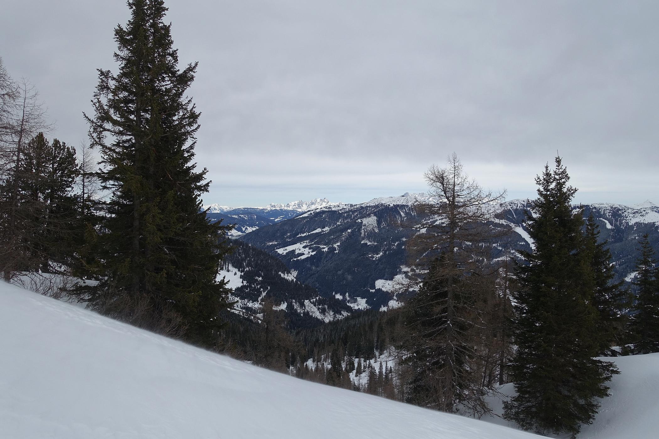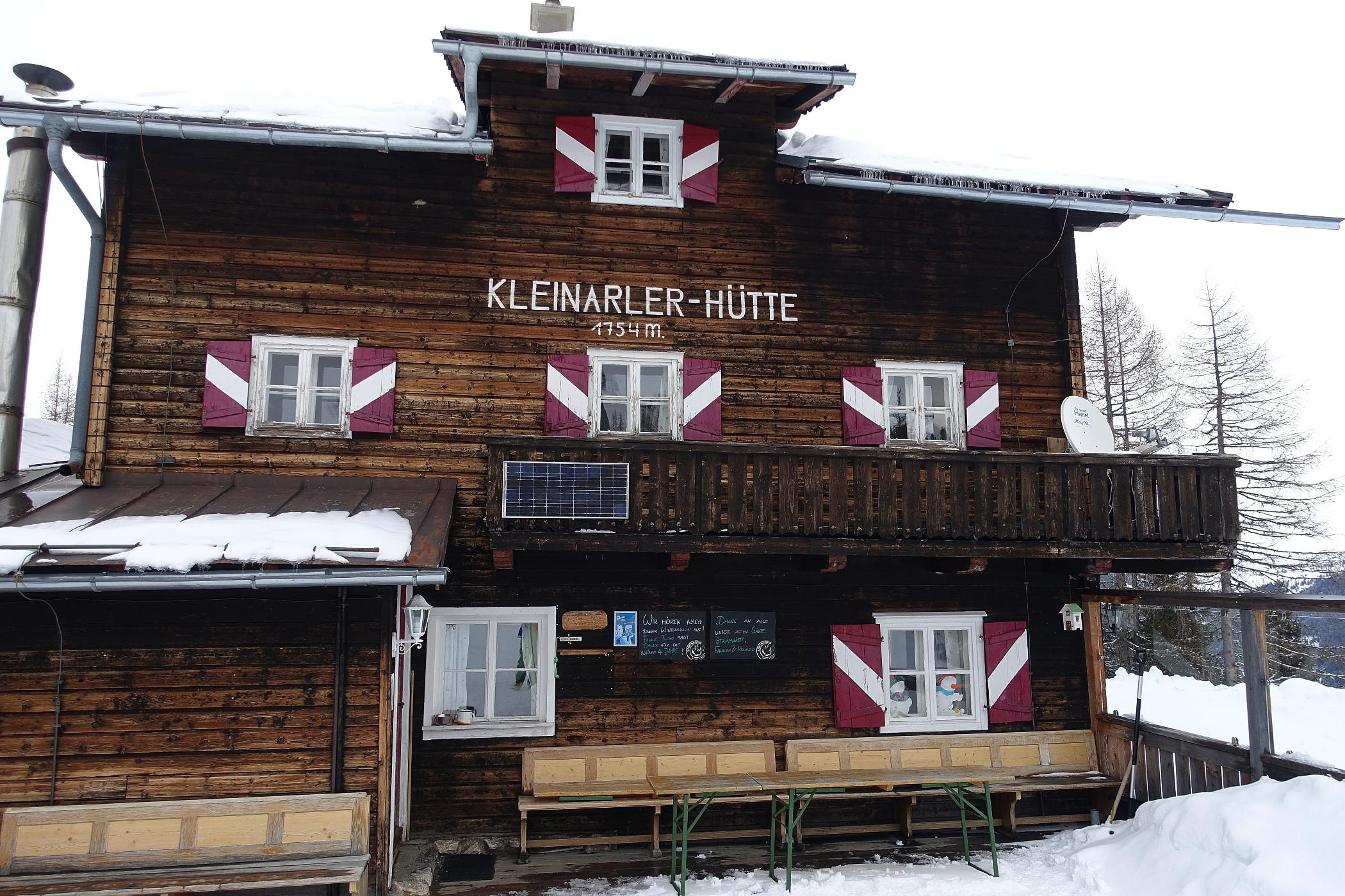 über die Kleinarlerhütte auf den Penkkopf - nicht ganz, auf ca. 1850m wegen Föhnsturm und sehr schlechter Sicht abgebrochen. Etwas zu spät gestartet, um 12.00 Uhr aufziehende Wolken und Sturm in Anmarsch. Aber sonst gute Verhältnisse, frischer Pulverschnee, unten 10cm bis auf 25cm anwachsend auf fester tragender Unterlage - es hat in der Nacht geschneit.