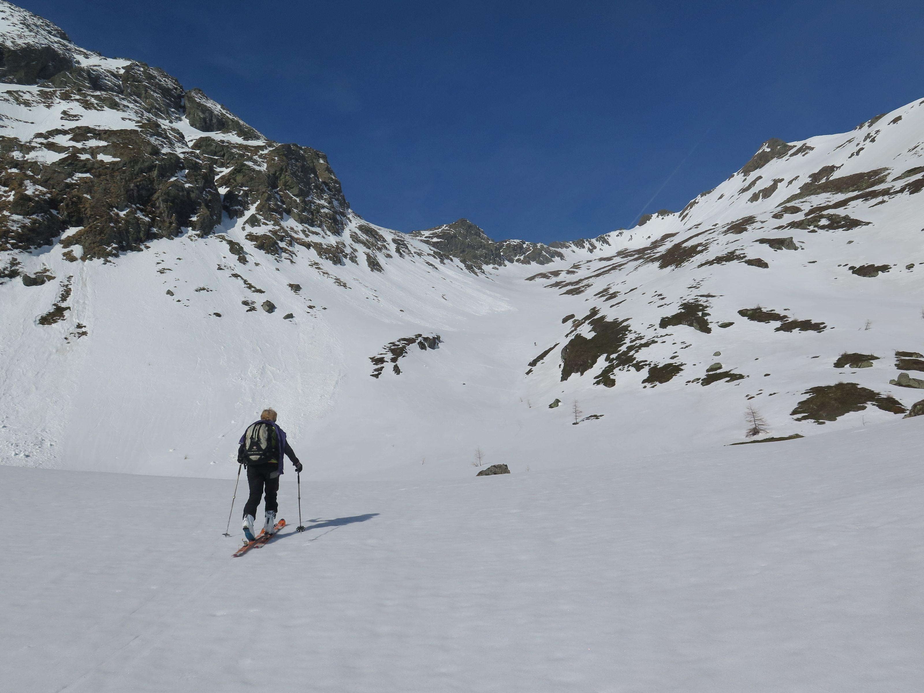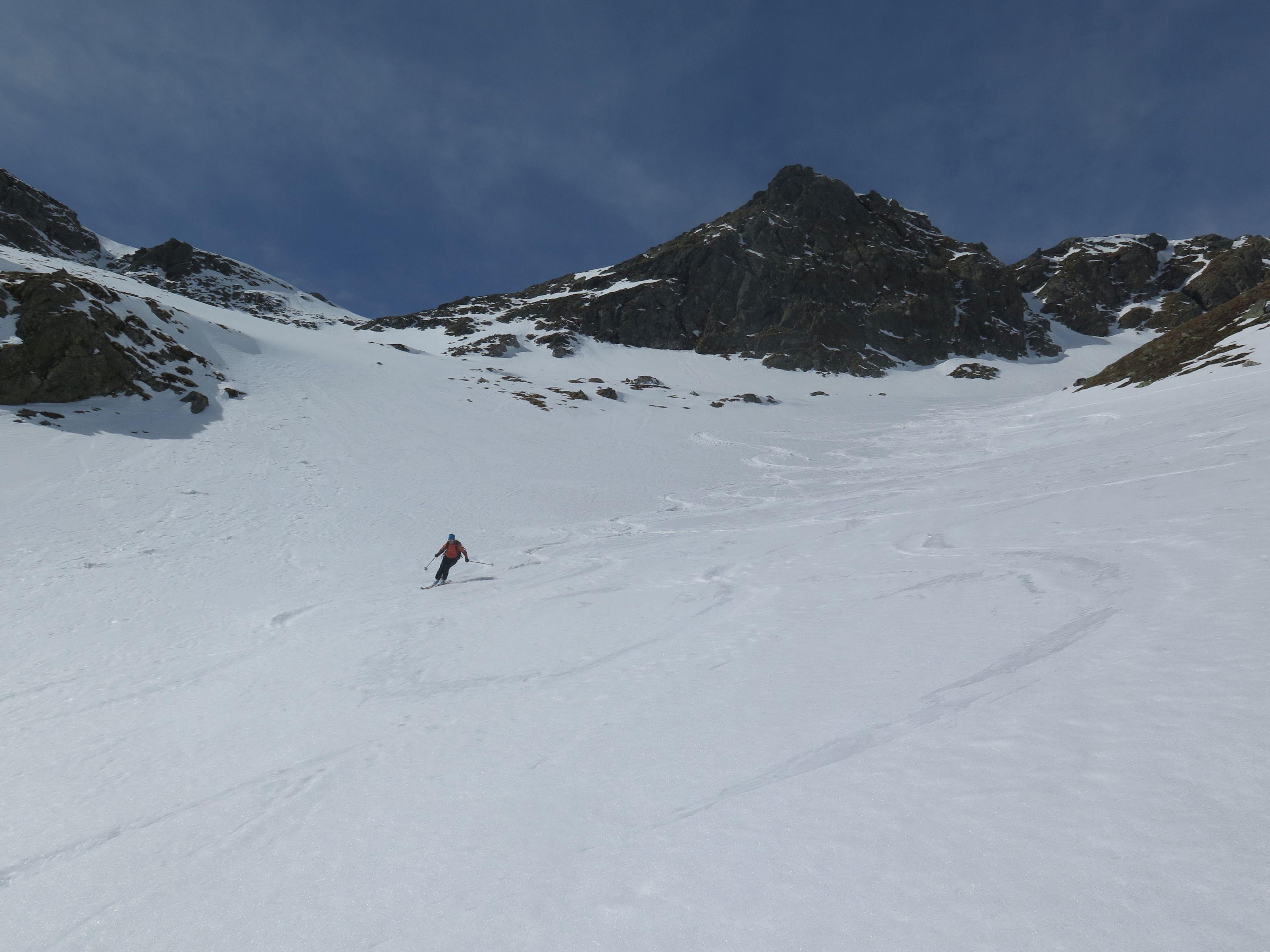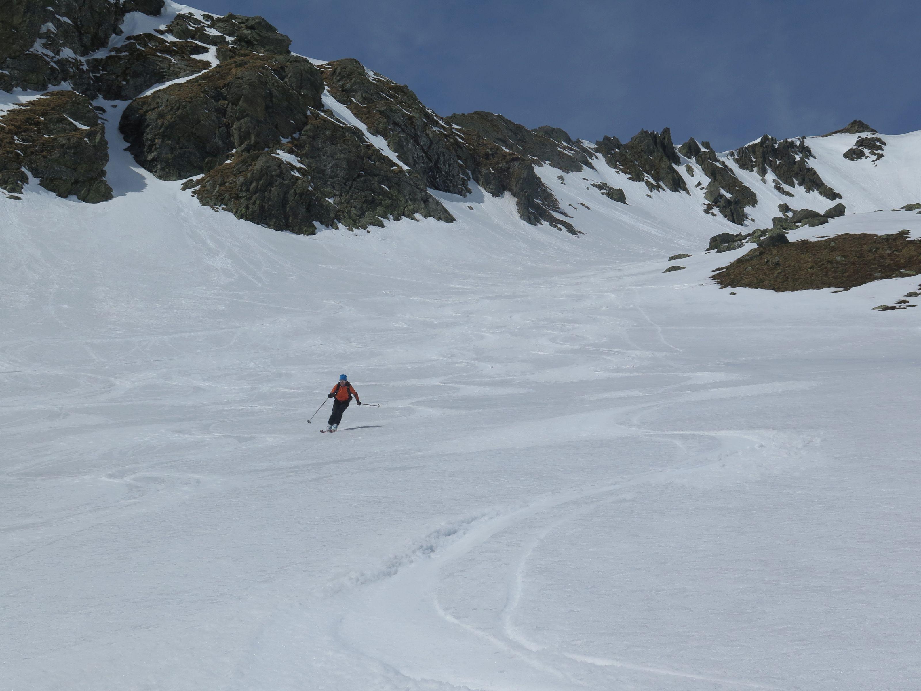 Start bei der Kreutzerhütte am Sölkpass. Ski sind bis zur Bachüberquerung zu tragen.Wetter : Sonne, zeitweise hohe Wolken.Schnee : Firn. Einsame Skitour.
