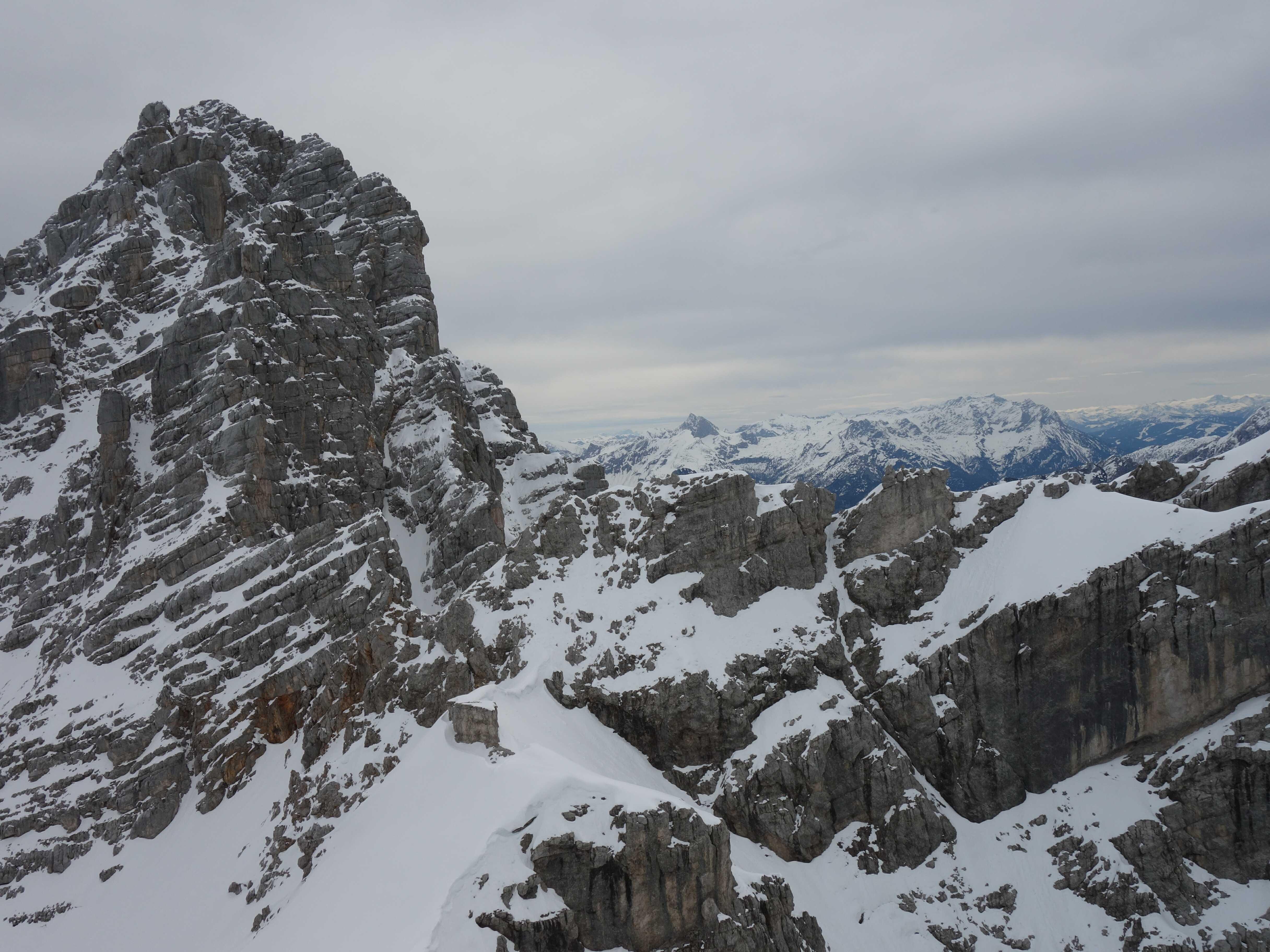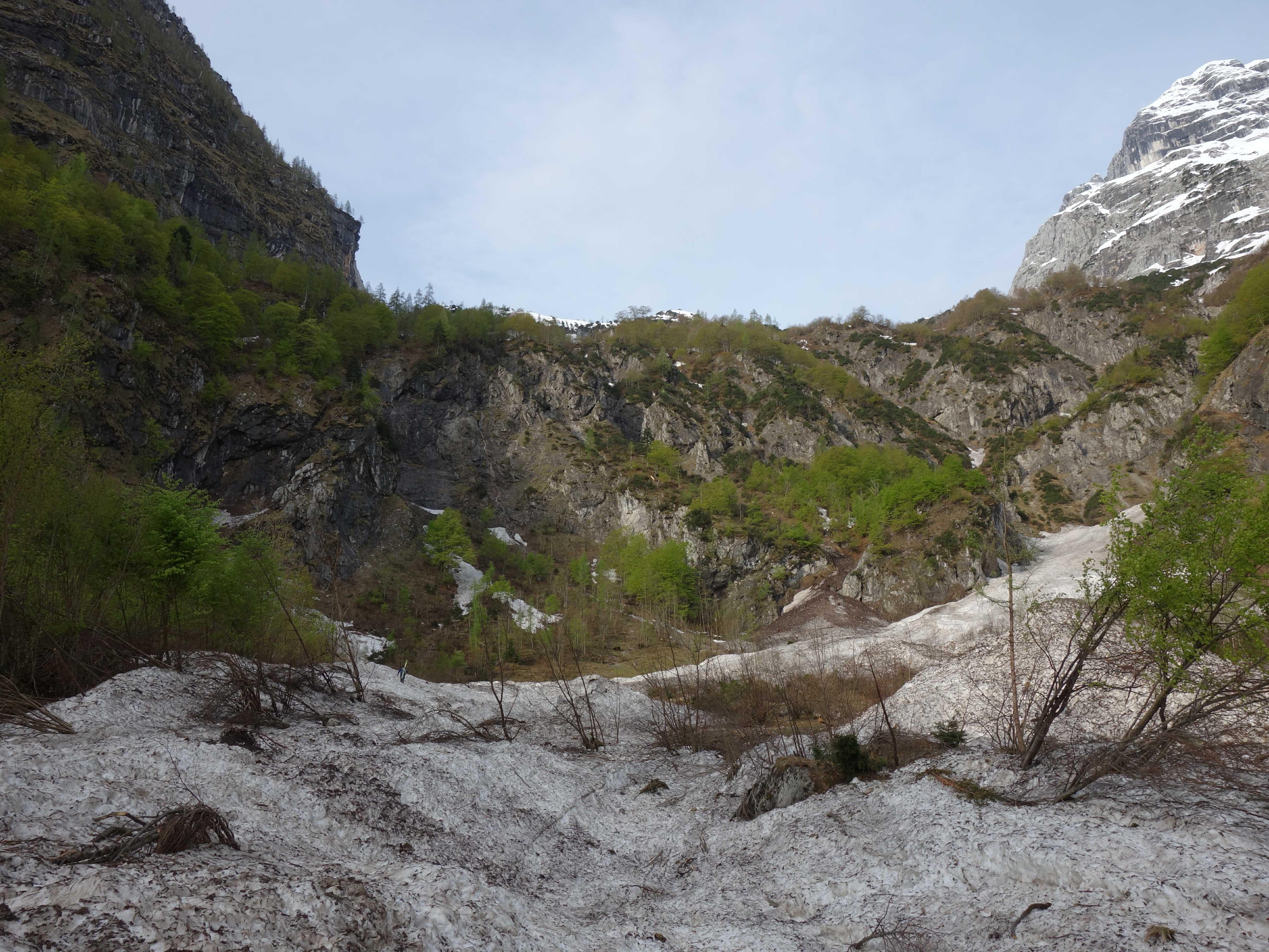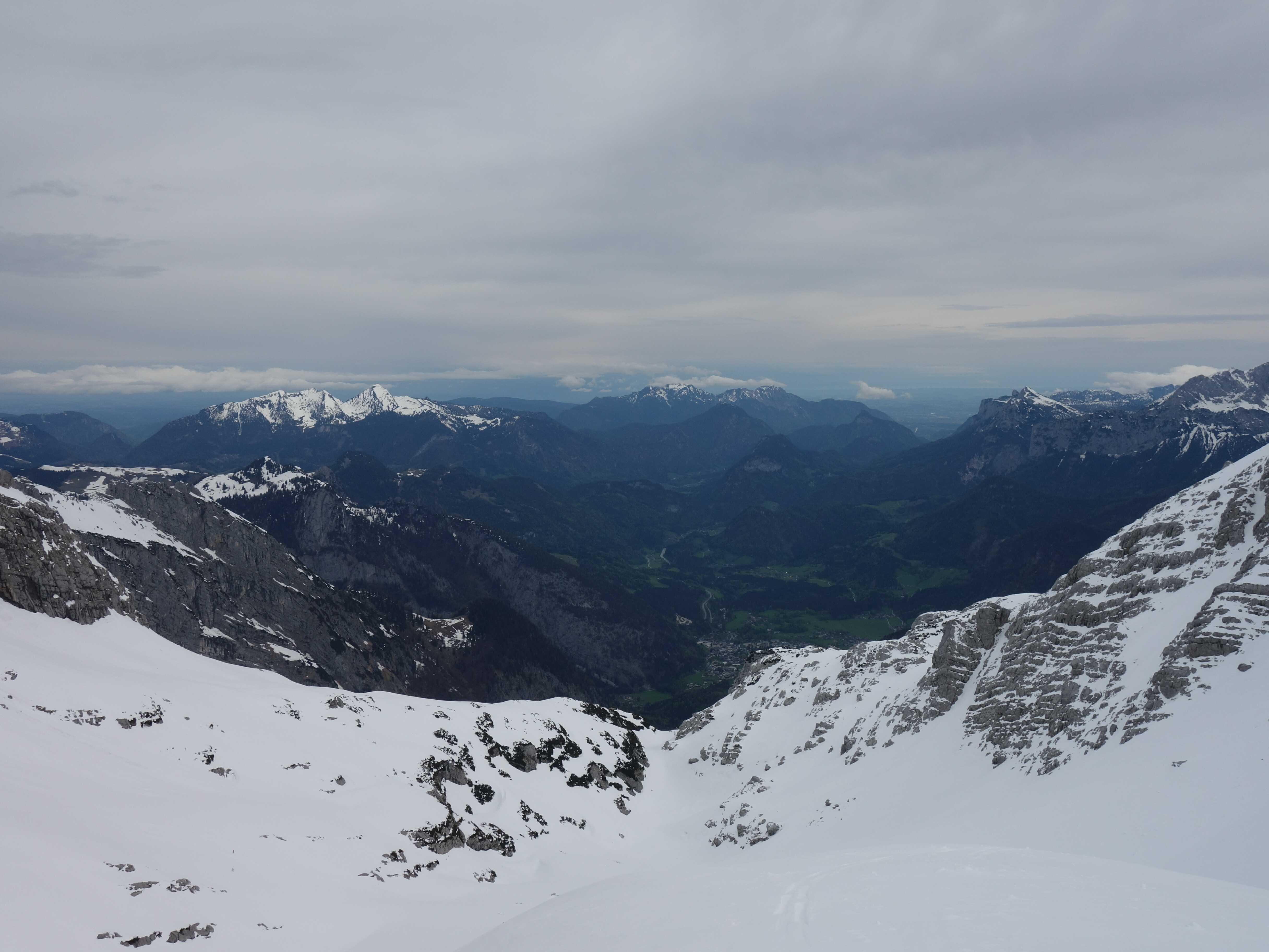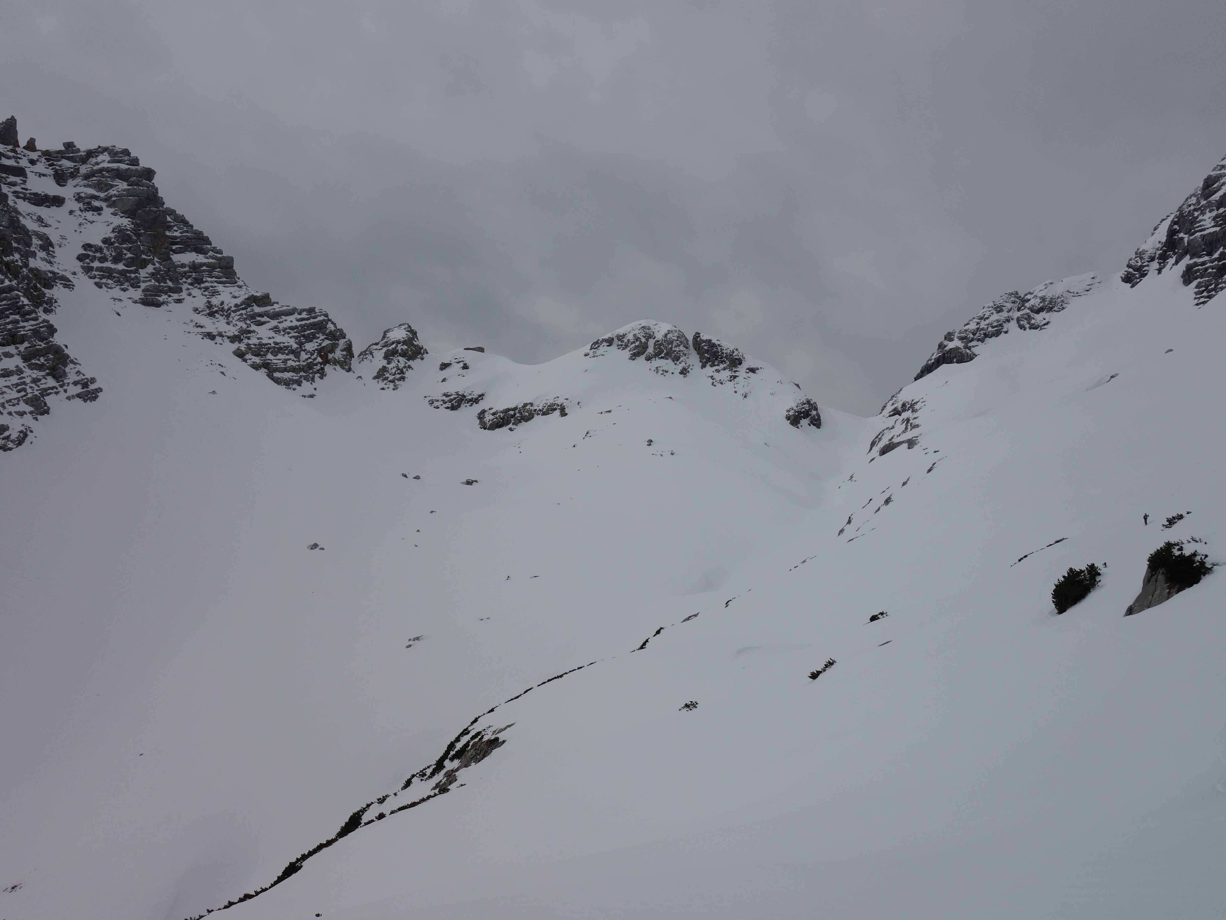 Schneelage: Nach 40 Min Ski tragen (1100) konnte mit Ski weiter aufgestiegen werden. Im untersten Teil der Rinne liegt bereichsweise erdiger Dreck auf dem Schnee. Oberhalb ca. 1400m Sulzauflage, die weiter oben wieder kompakter wurde. Abfahrt ging deutlich besser als im Aufstieg befürchtet.