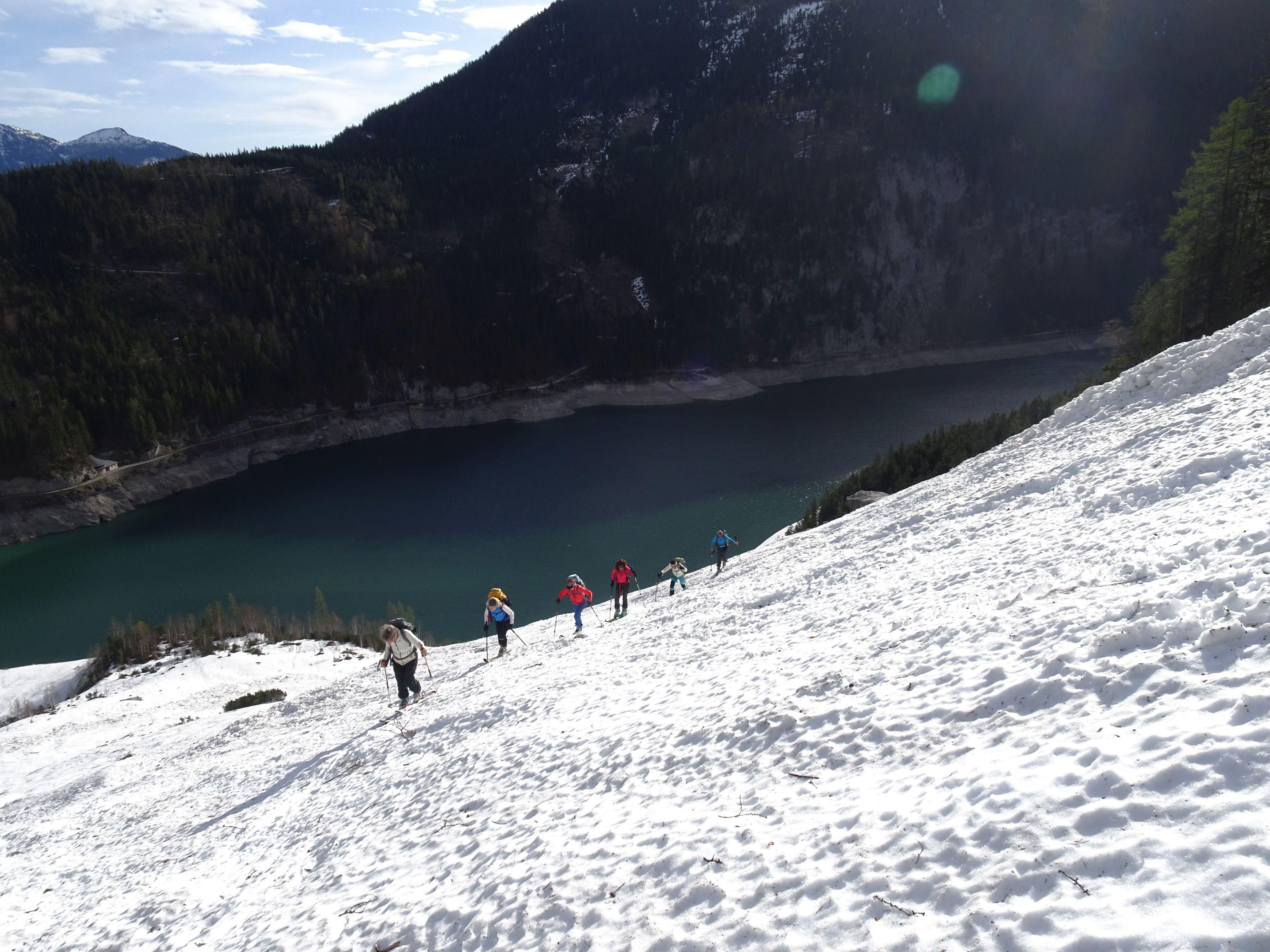Start mit den Skiern noch  vom See möglich.