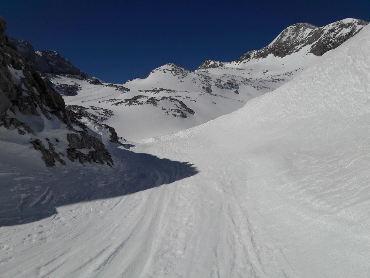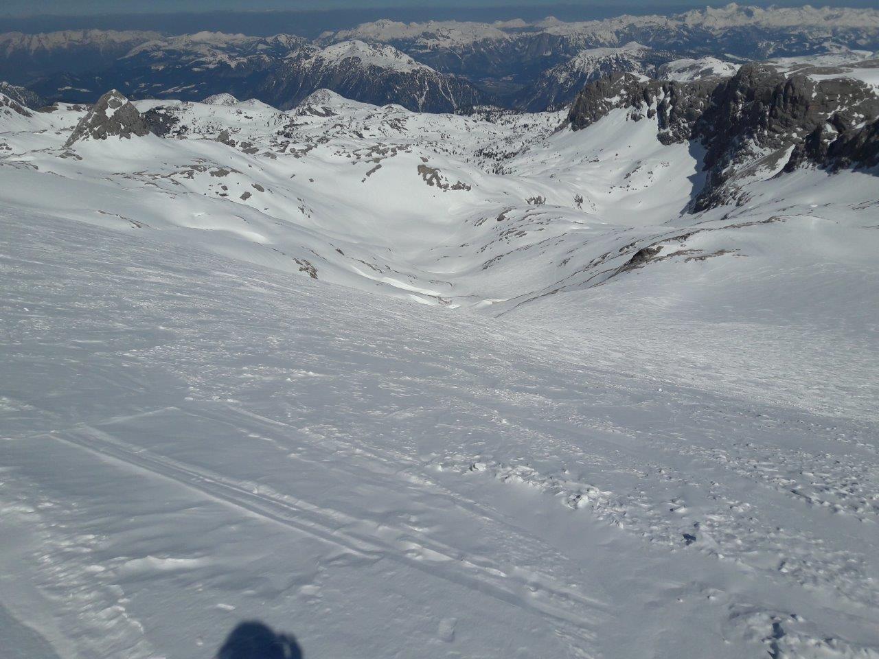 Schon wieder so ein Wellness-Tag... Sonne vom blitzblauen Himmel, null Wind, Pulver am Hallstätter Gletscher. Auffahrt mit der Krippensteinbahn von Hallstatt/Obertraun - Aufstieg zum Rumpler (1979m) - Dachsteinwarte (2.740m) - Abfahrt über Hallstätter Gletscher zum unteren Eissee - Aufstieg Simonyhütte - Abfahrt zur Gjaidalm und nach Obertraun/Talstation zurück.