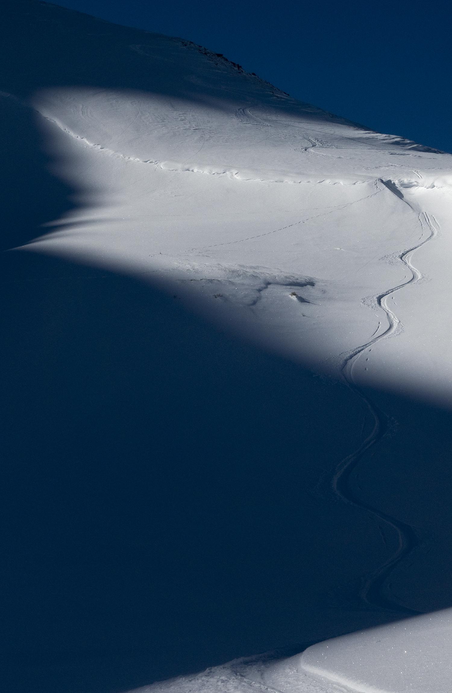 Erst Sonne und feuchter Pulverschnee, dann Schatten und Pulverschnee, teils mit Raschelreif...