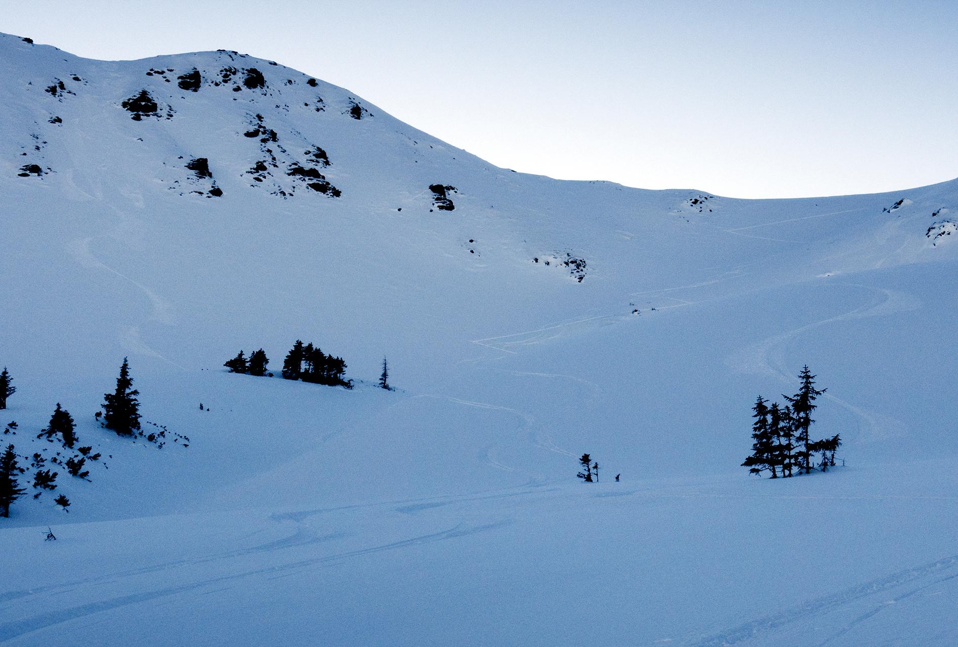 4. Pulverabfahrt Rabenkopf Nord und bis hinab in den Schwarzachgraben bei feinstem Schnee.