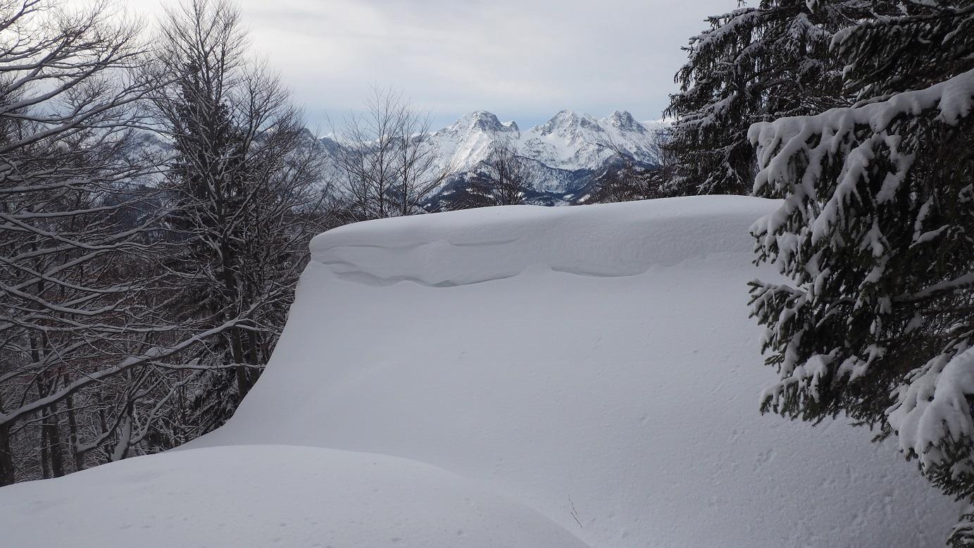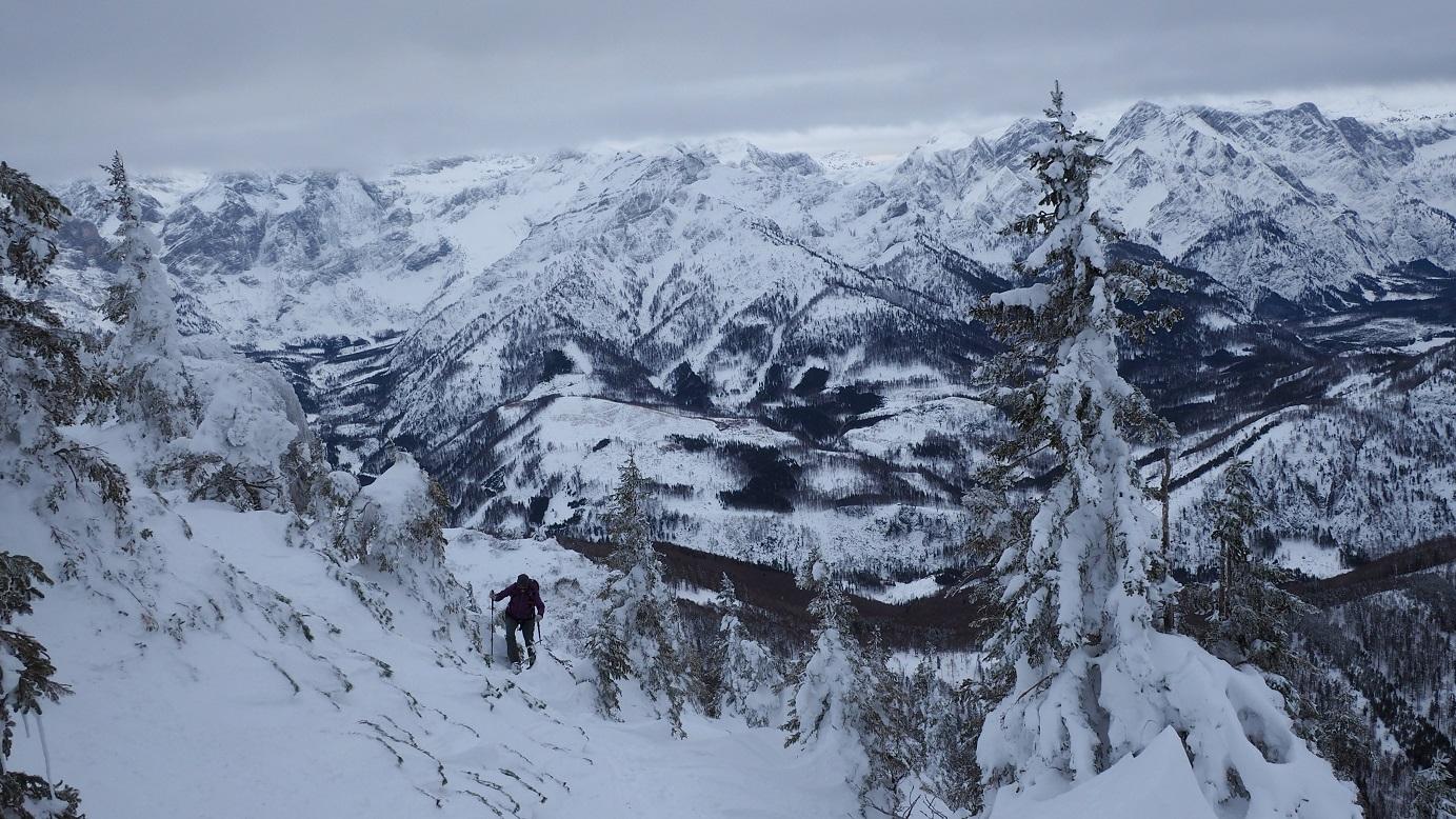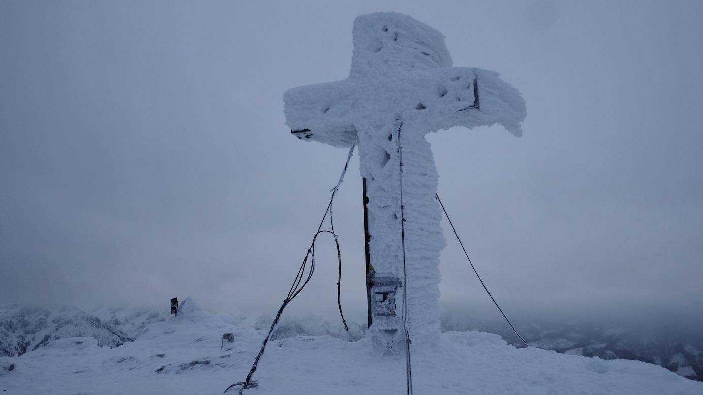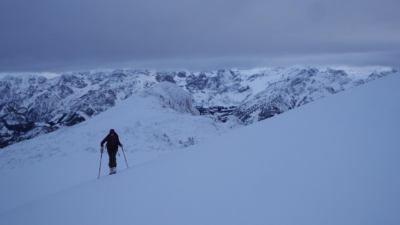 Heute im Bereich des Anstiegs nichts lawinenrelevantes zu erkennen (z. B. Risse oder Schneemäuler, Wummgeräusche...), dennoch sehr vorsichtig und geländeausnützend zum Gipfel. Das Sonnenfenster ist entegen der Prognosen leider von sehr kurzer Dauer (max. 1 Stunde), der Warmwettereinbruch mit Regen bis etwa 1.100m hat der Schneedecke bis dorthin nicht unbedingt gut getan.