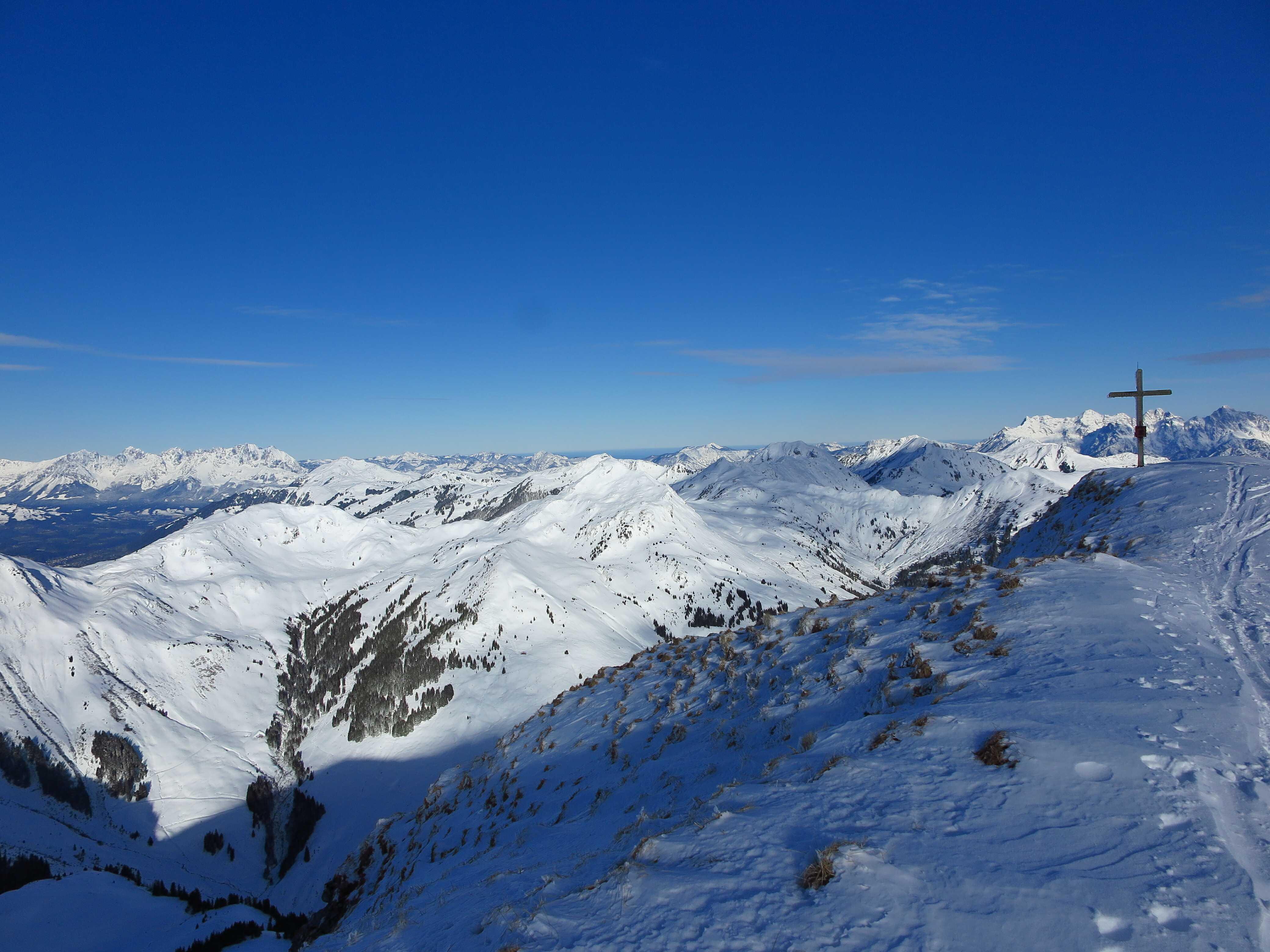 Wetter: Beim Abmarsch ca. -6°C, oberhalb der Saalhofalm zunehmende Brise aus westlicher Richtung mit Verfrachtungsstärke. Am Gipfelrücken starker Wind, ganz oben dann wieder weniger, sodass man sogar Pause machen konnte.
