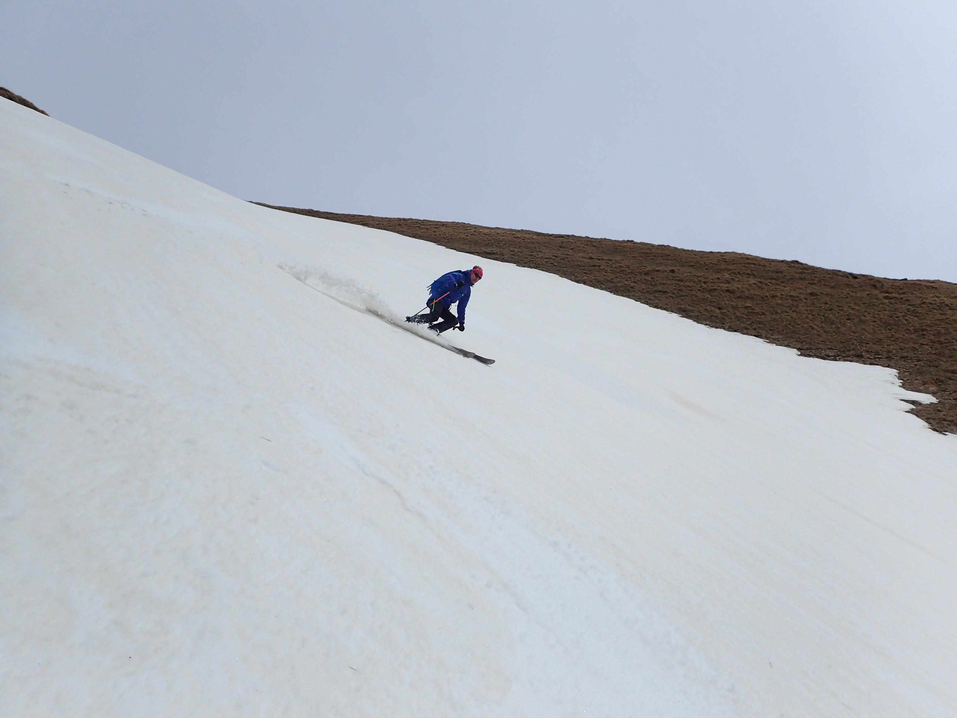 Der böige Wind und die teils dicken Wolken machen anfangs wenig Hoffnung auf Firn. Erst die Tageserwärmung und zunehmend heiteres Wetter sorgen dann für (Sommer-) Firn.