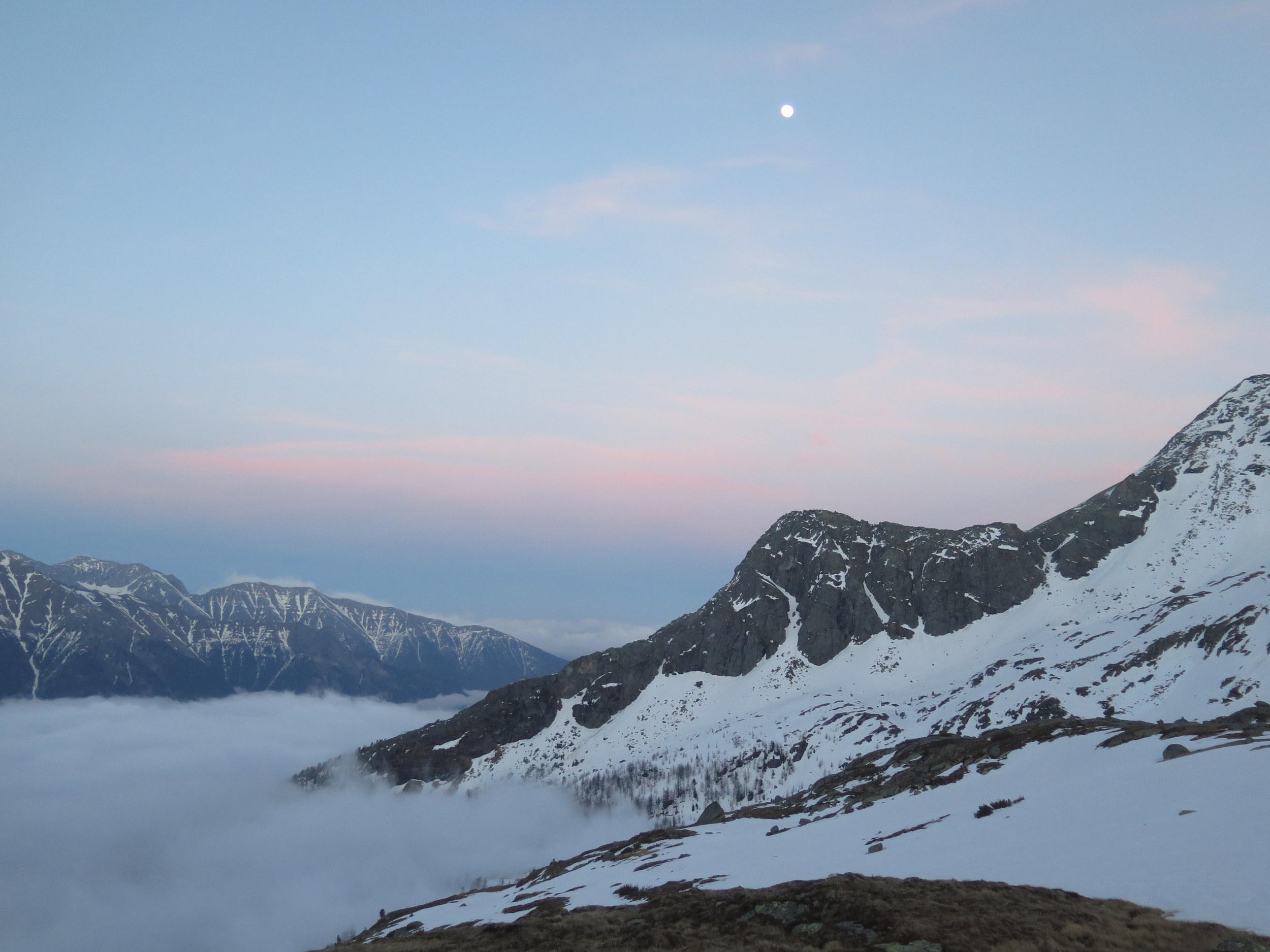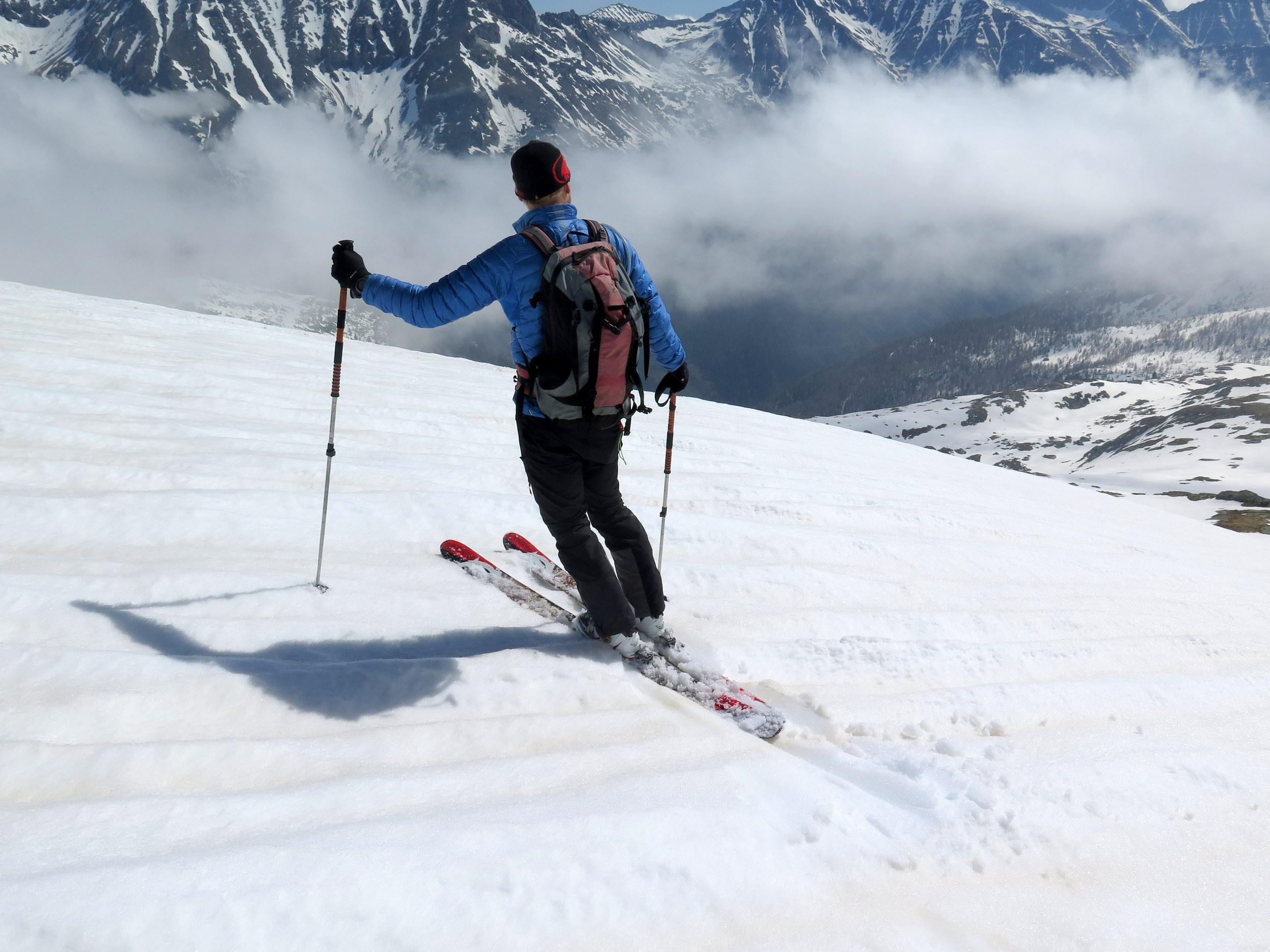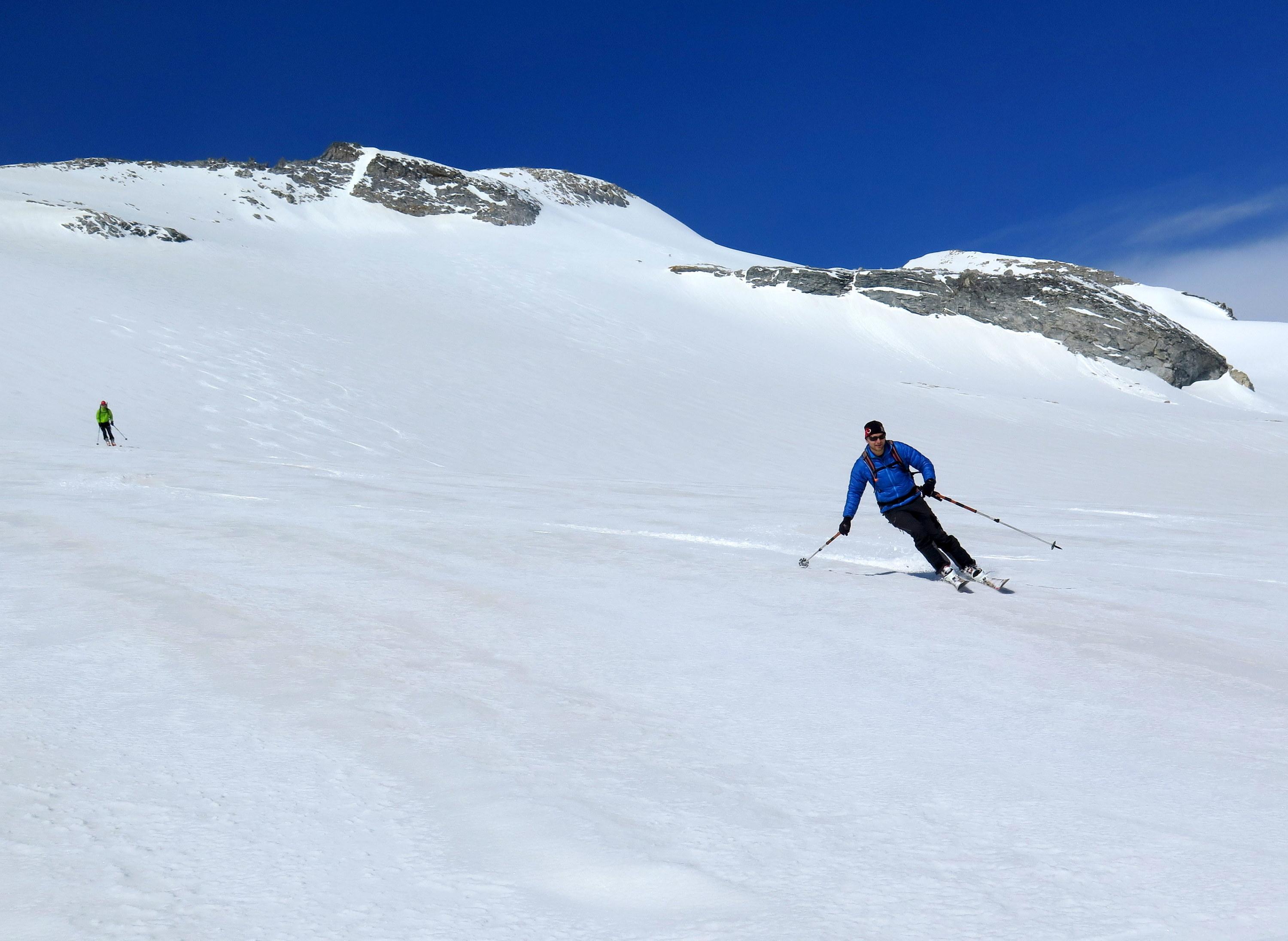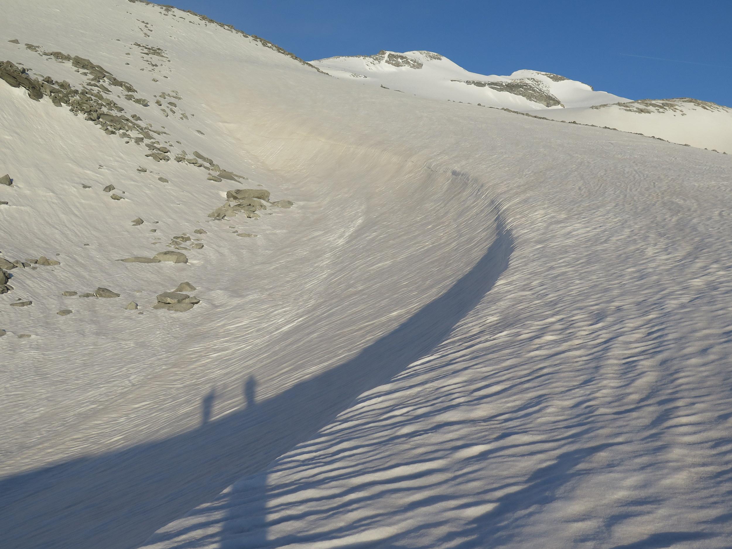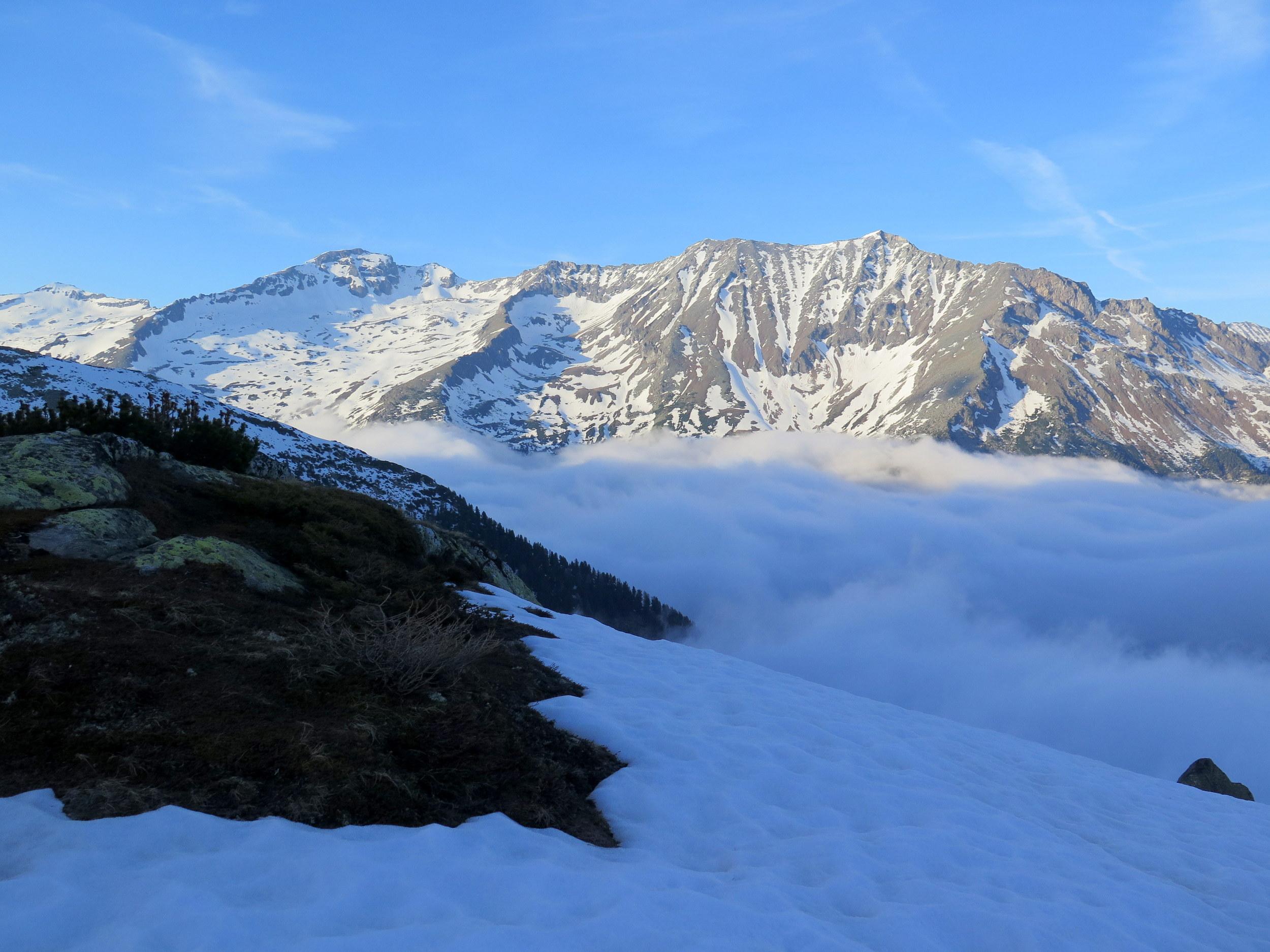 Anstieg bereits am Vorabend zur Villacher Hütte. Nach klarer Nacht beim Start um kurz vor 6 Uhr kompakter Harschdeckel. Der letzte Niederschlag muss bis weit hinauf als Regen gefallen sein, entsprechend stark ausgeprägte Regenrillen, im flachen Gelände Wassermulden, oberhalb 2500 m teilweise Wassereis-"Glatzen", erst auf den letzten 300 Höhenmetern bis zum Gipfel eine leichte Neuschneeauflage, ohne besonderen Windeinfluss. Windstiller Gipfel mit bester Fernsicht rundum. Während der Abfahrt bilden sich einige Nebelfelder, die das Maltatal einwärts und hangaufwärts ziehen. Mit Wolkenaufzug am frühen Nachmittag neuerlich Staubewölkung am Alpenhaupkamm von Süden her.