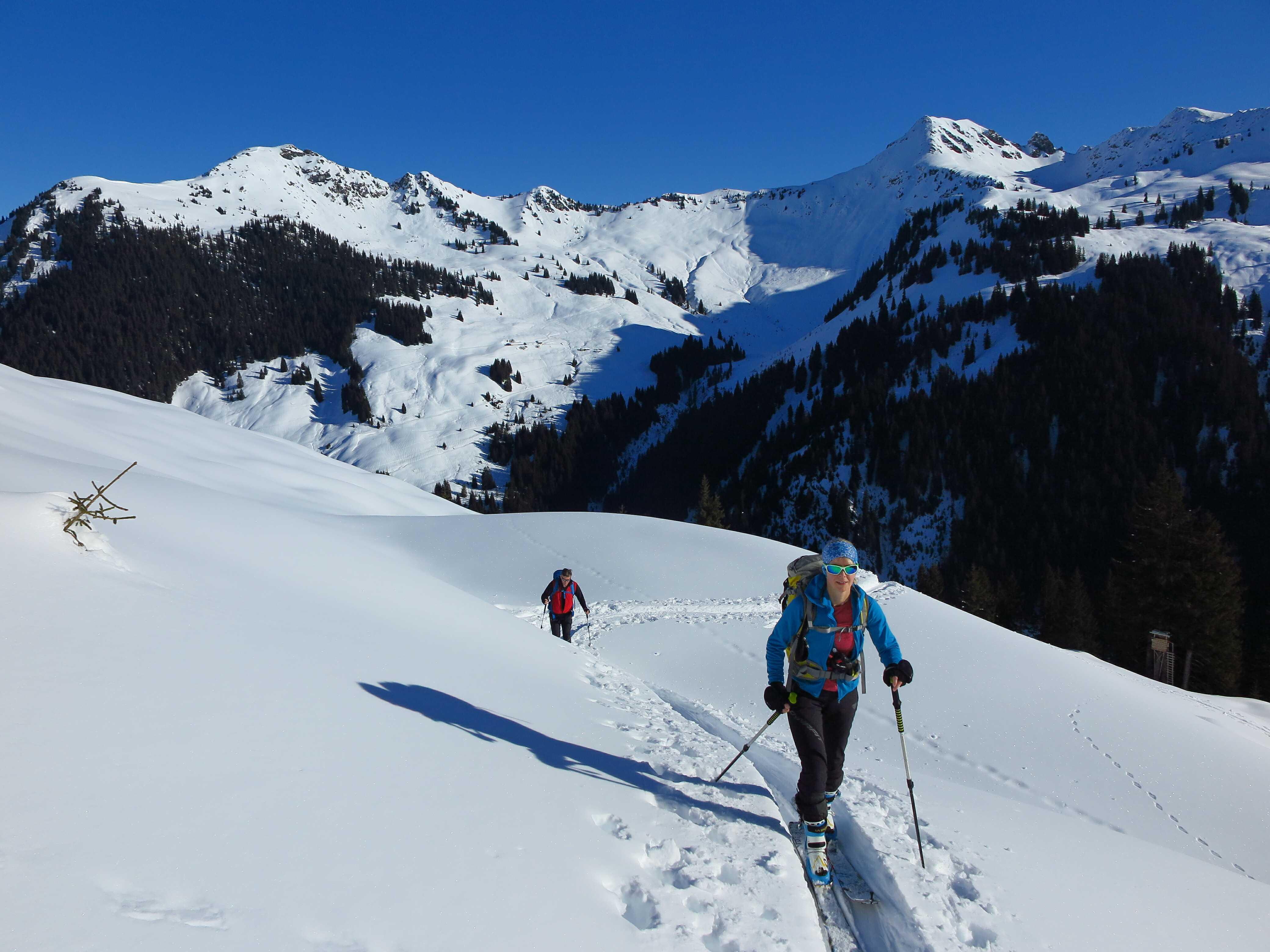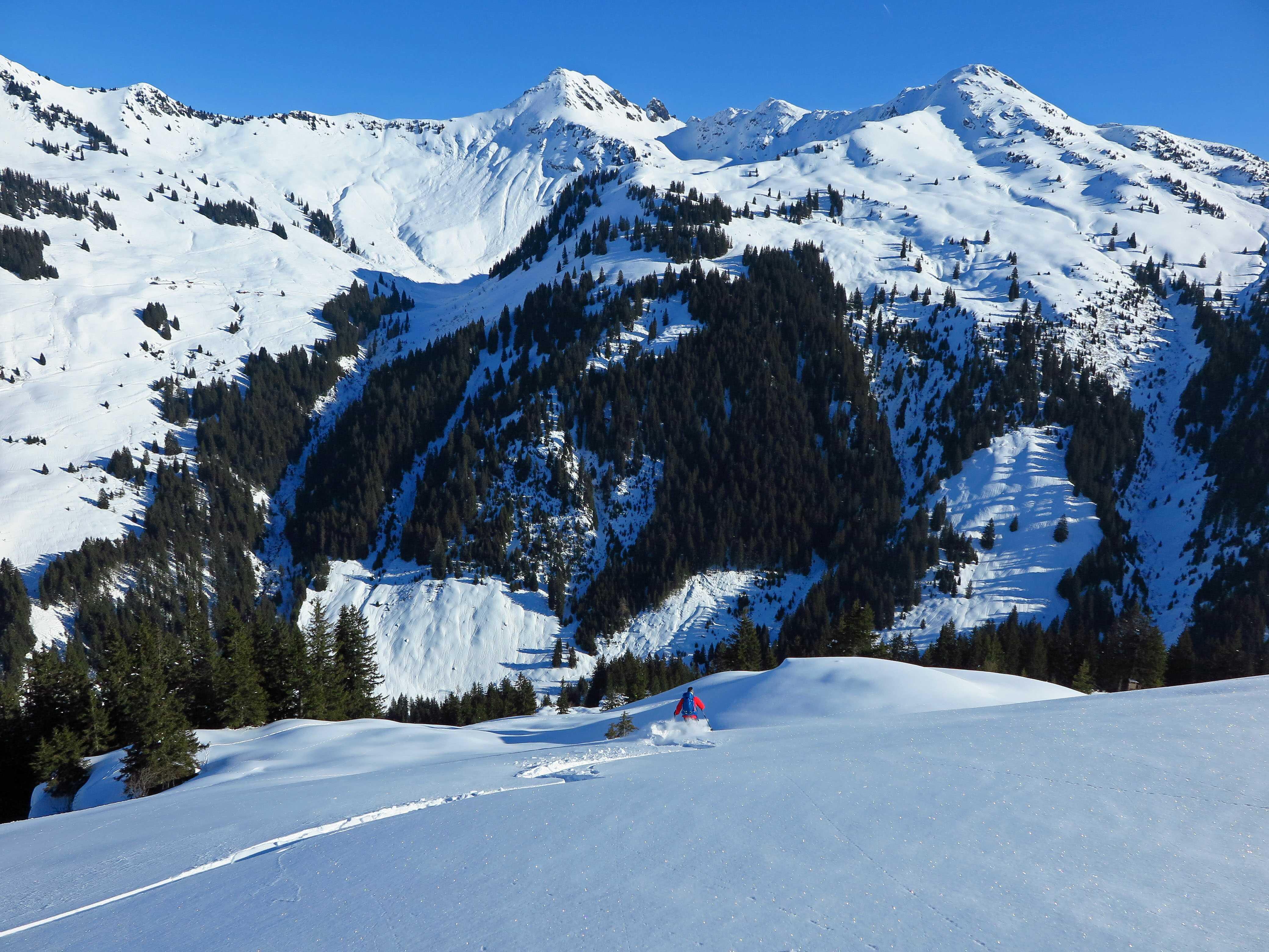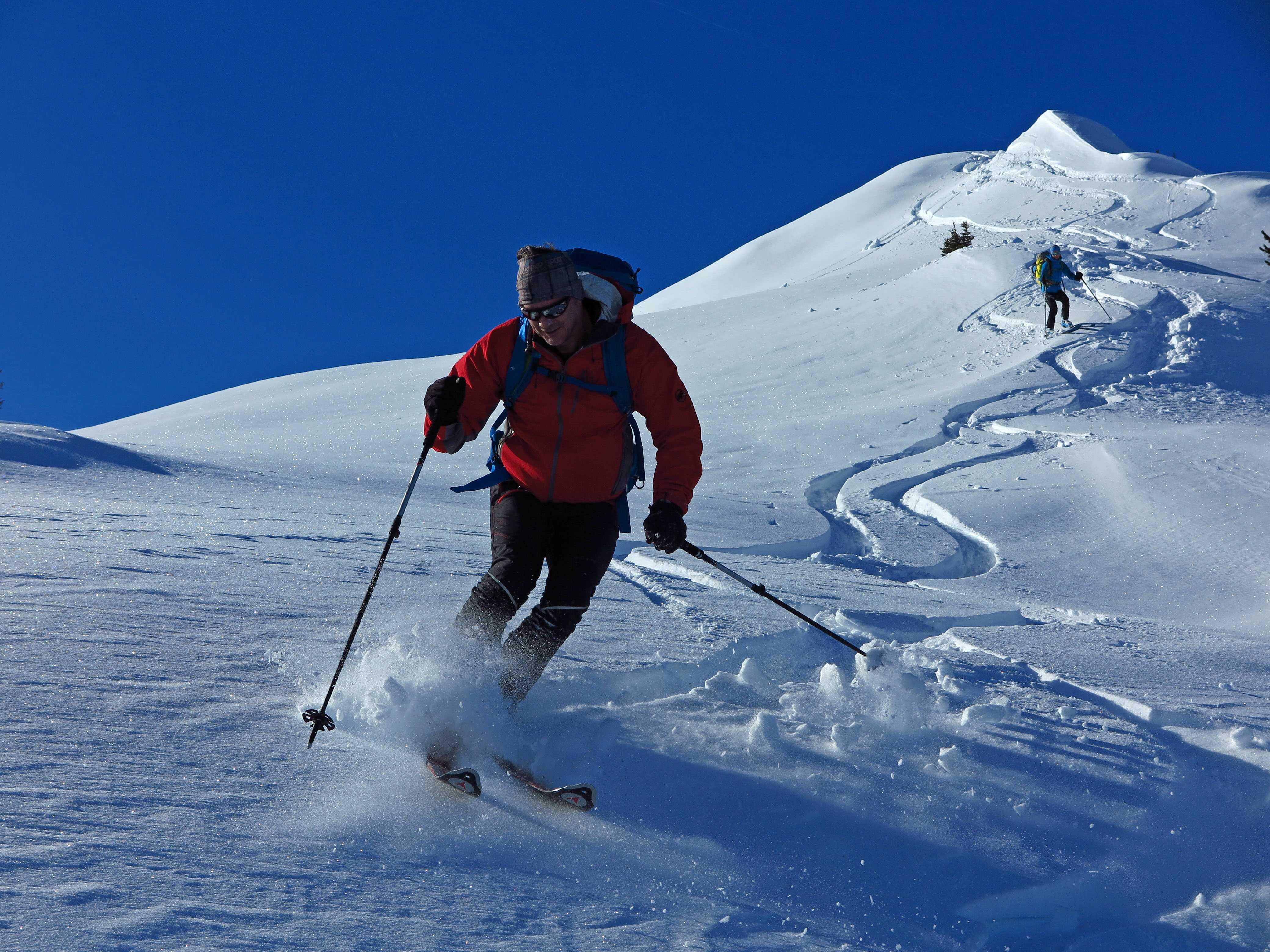 Schneelage: Kaum zu glauben, aber im schattseitigen Wildalmgraben gabs noch feinen Pulverschnee, nur an wenigen Stellen etwas windbehandelt. Der sonnseitige Harschdeckel wurde ab Spätvormittag weich.