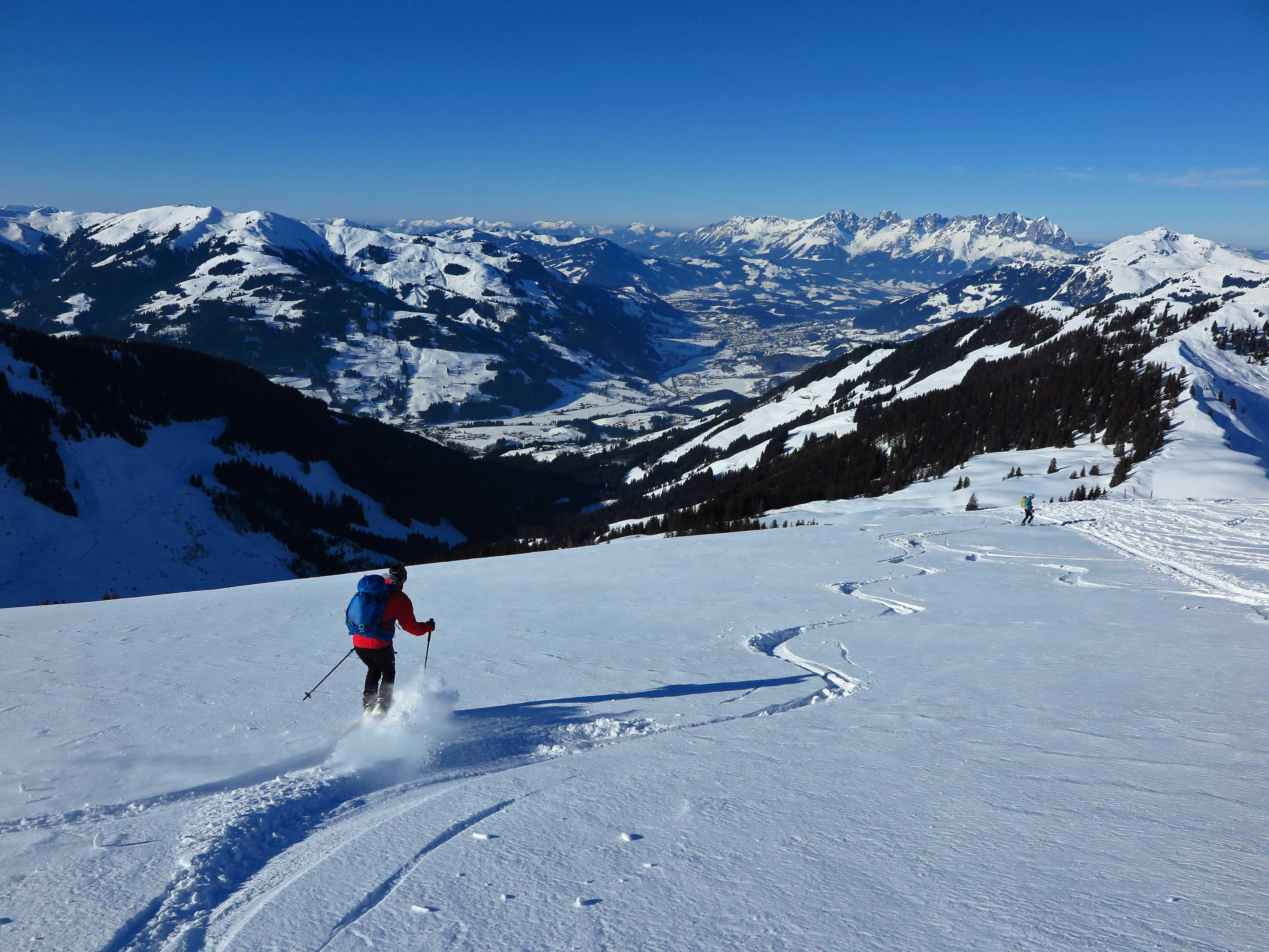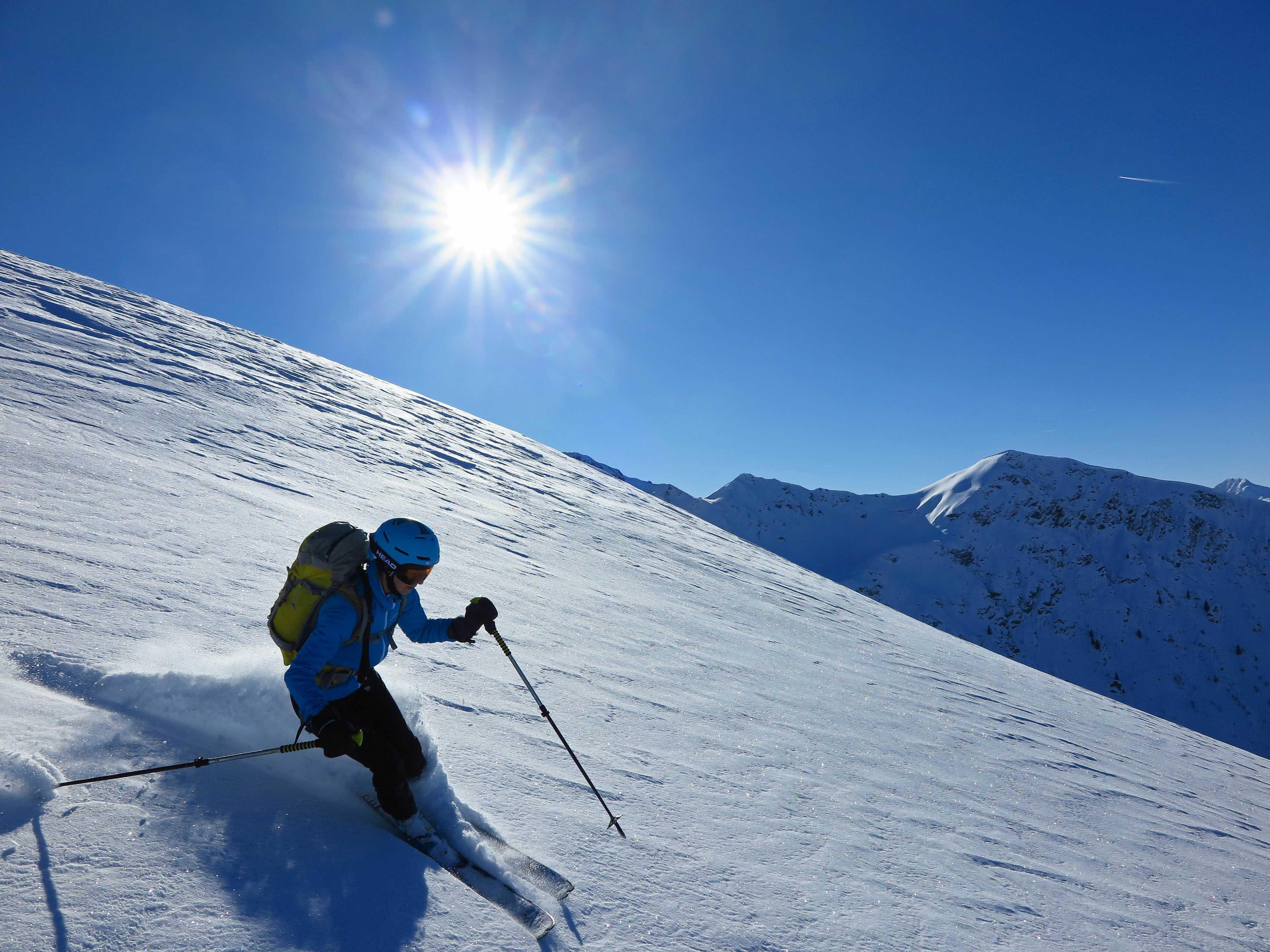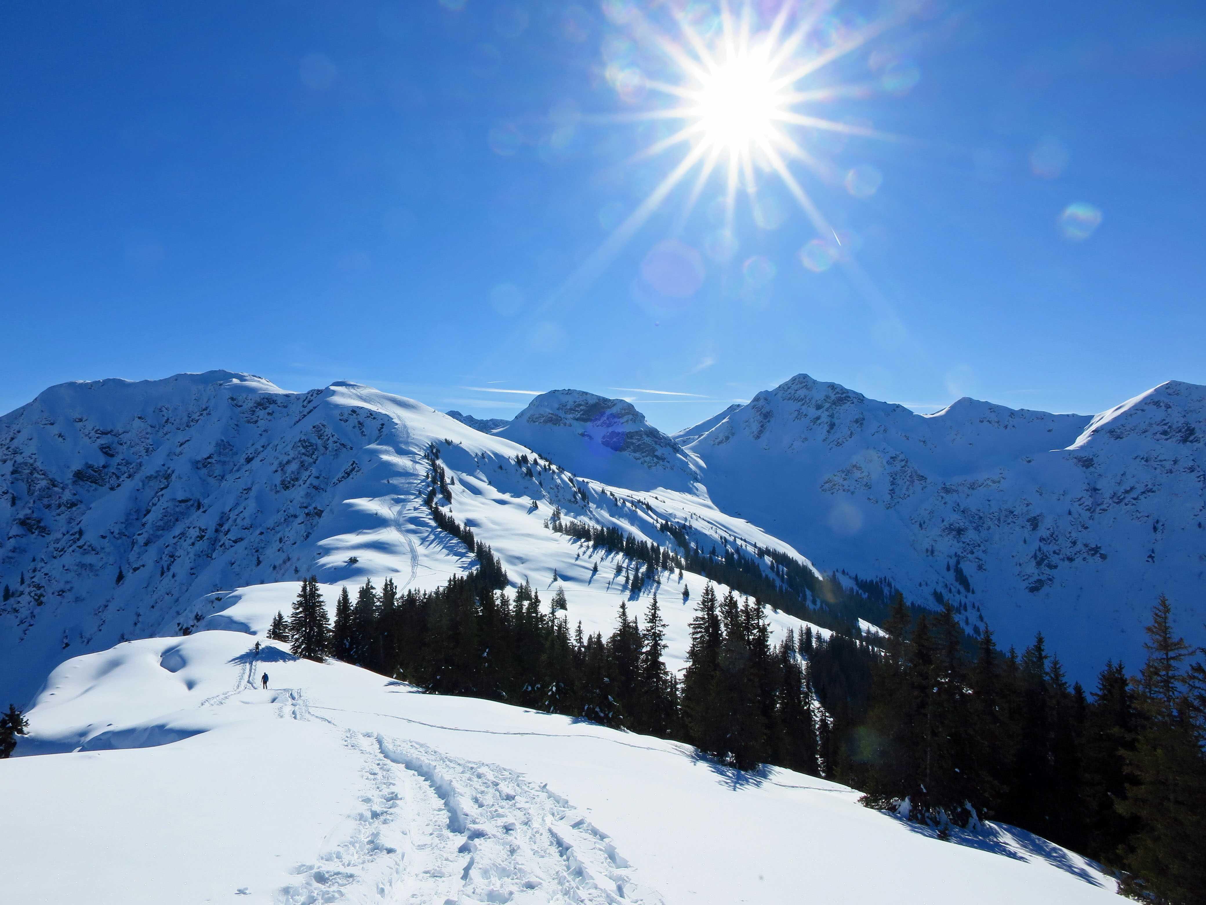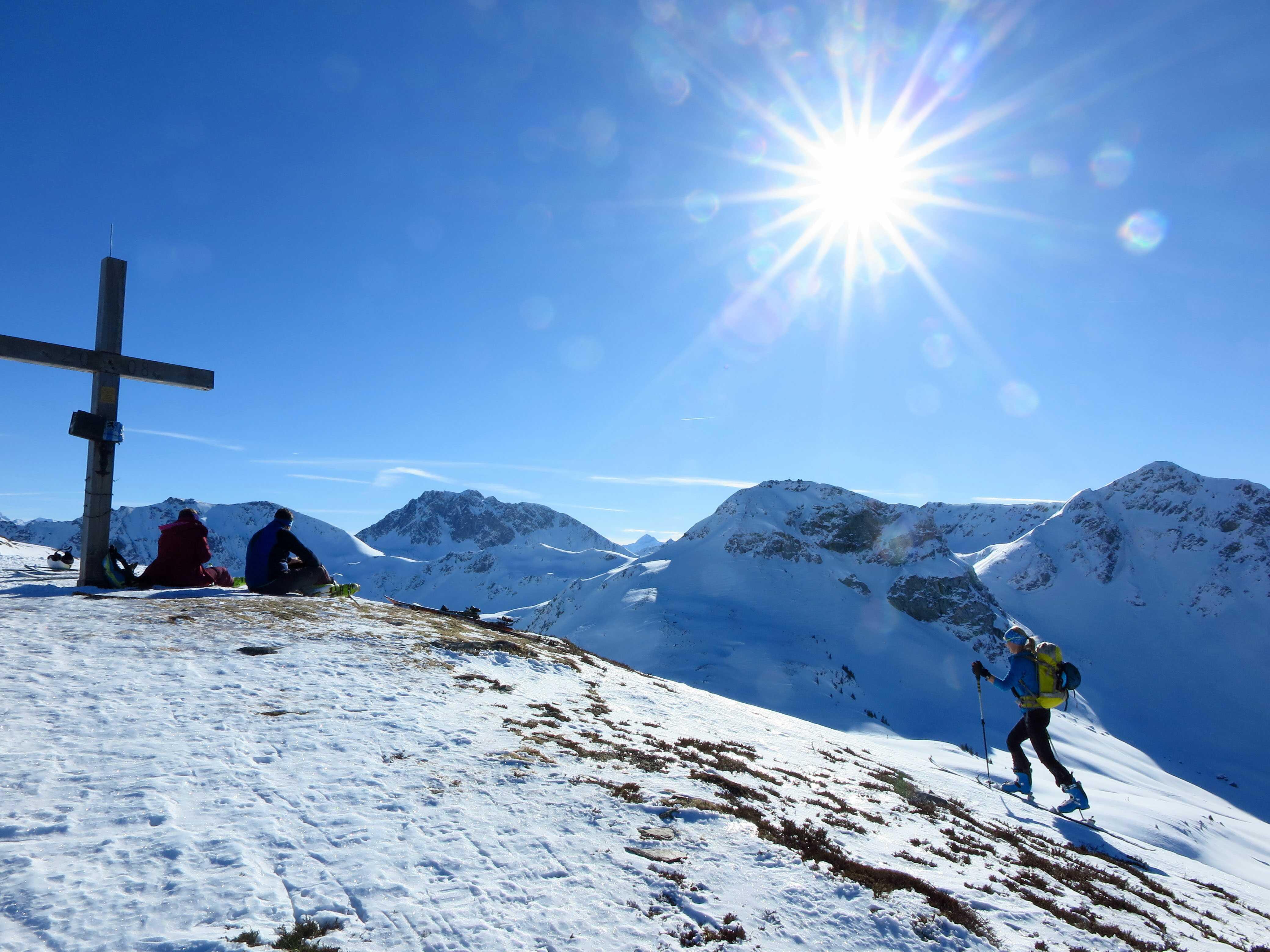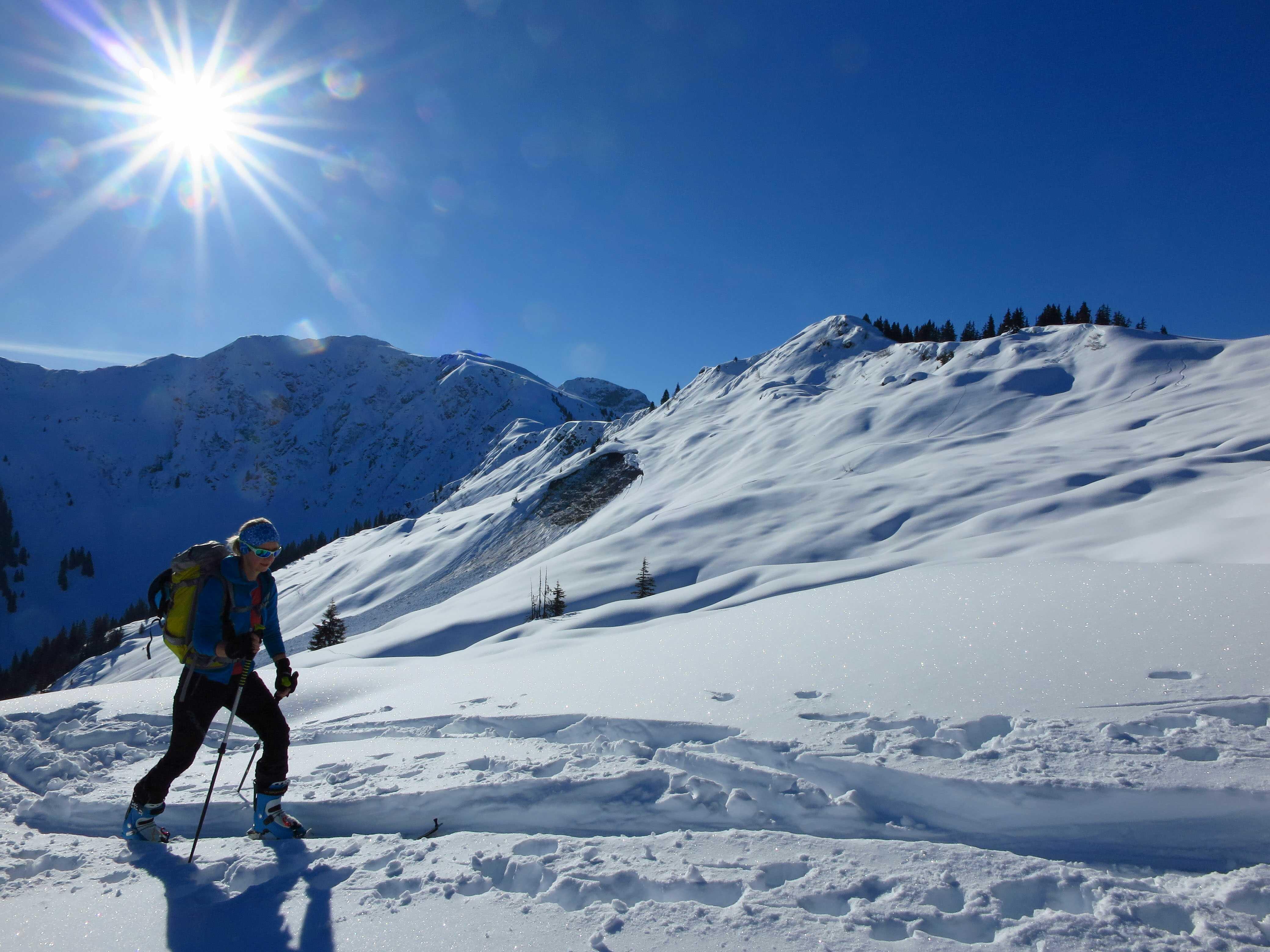 Lawinenbeobachtungen: Im steilen O-Hang unterm Hahnenkampl war eine große Gleitschneelawine vor kurzem abgegangen. Ansonsten stabile Verhältnisse.
