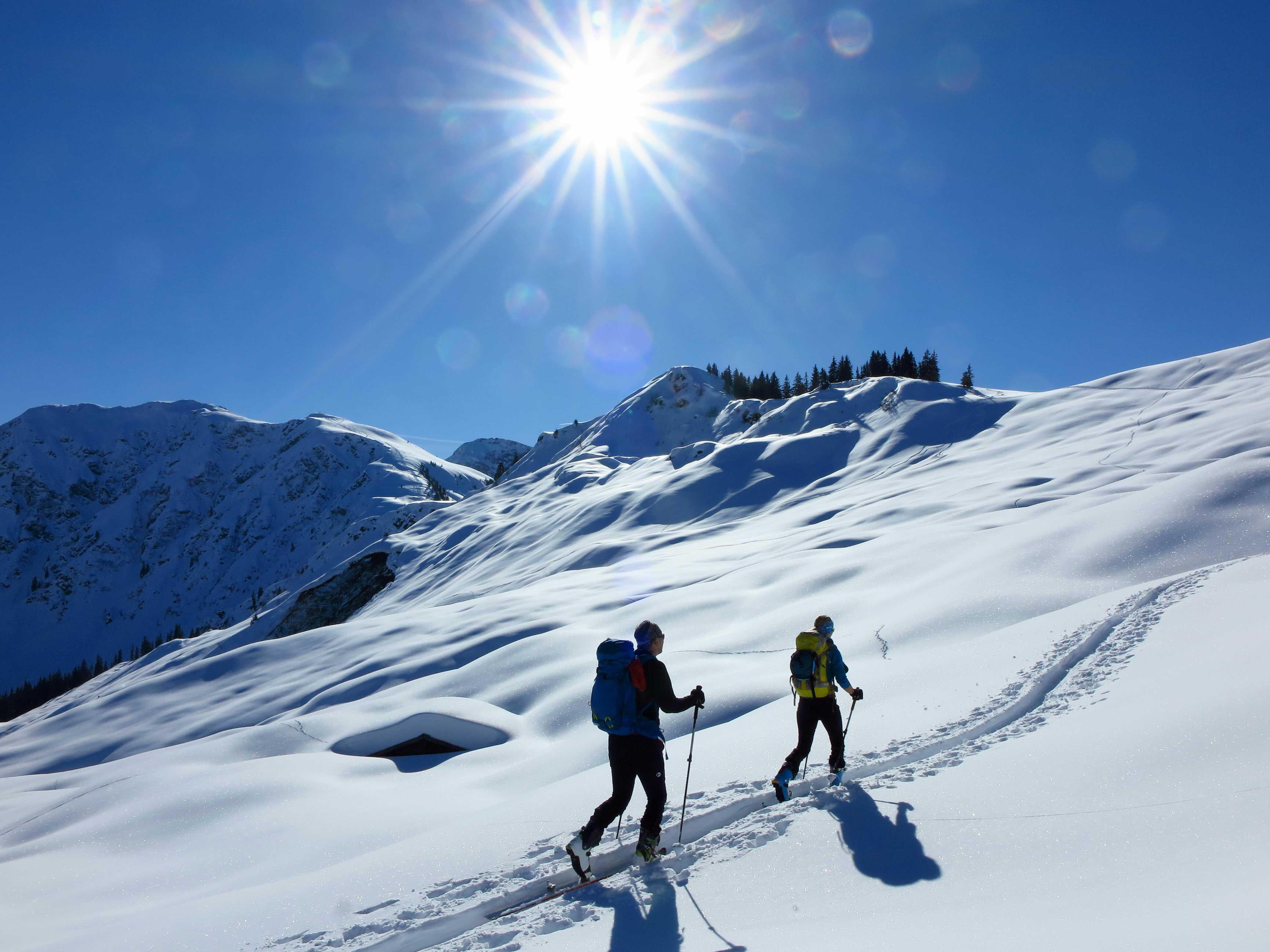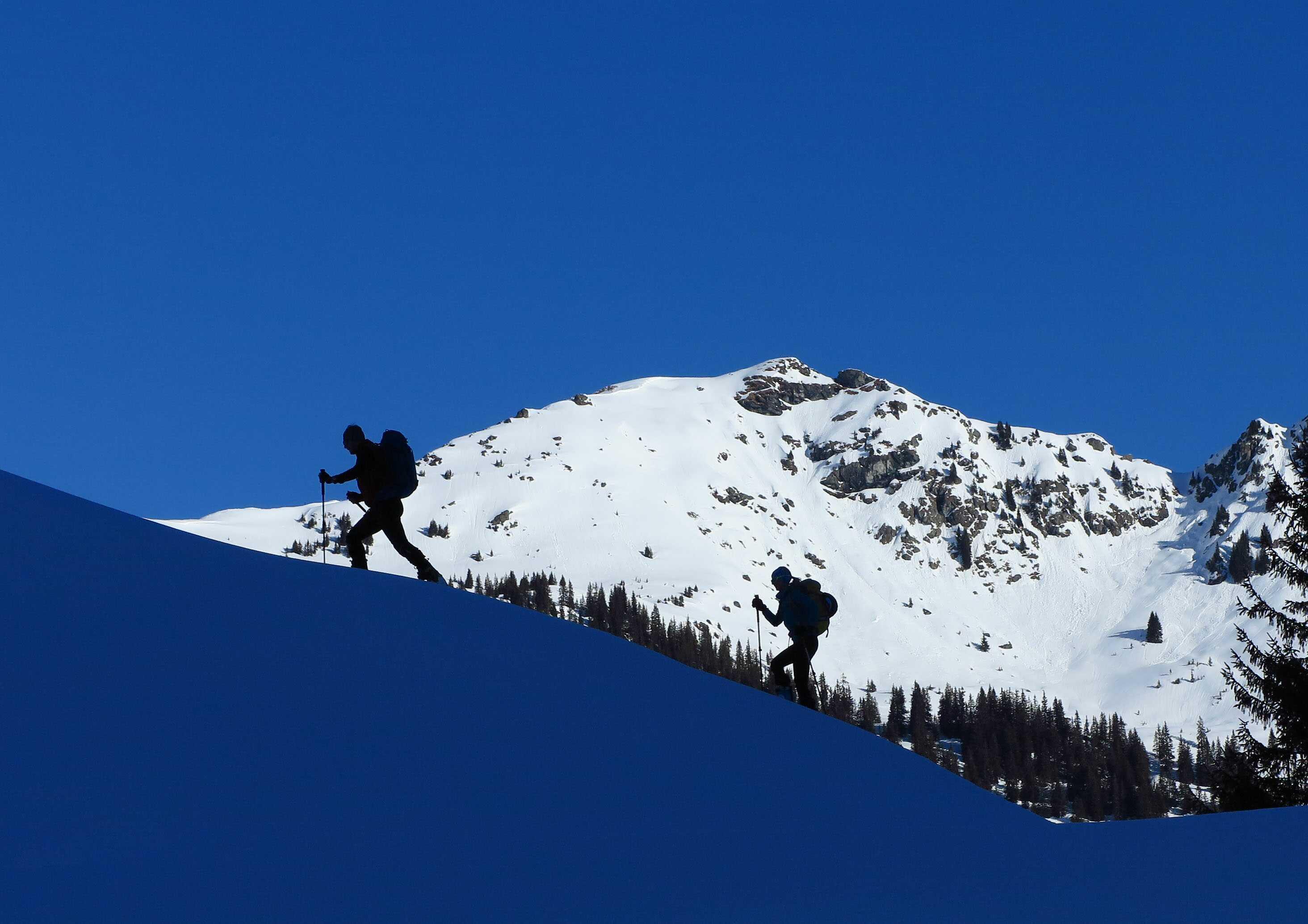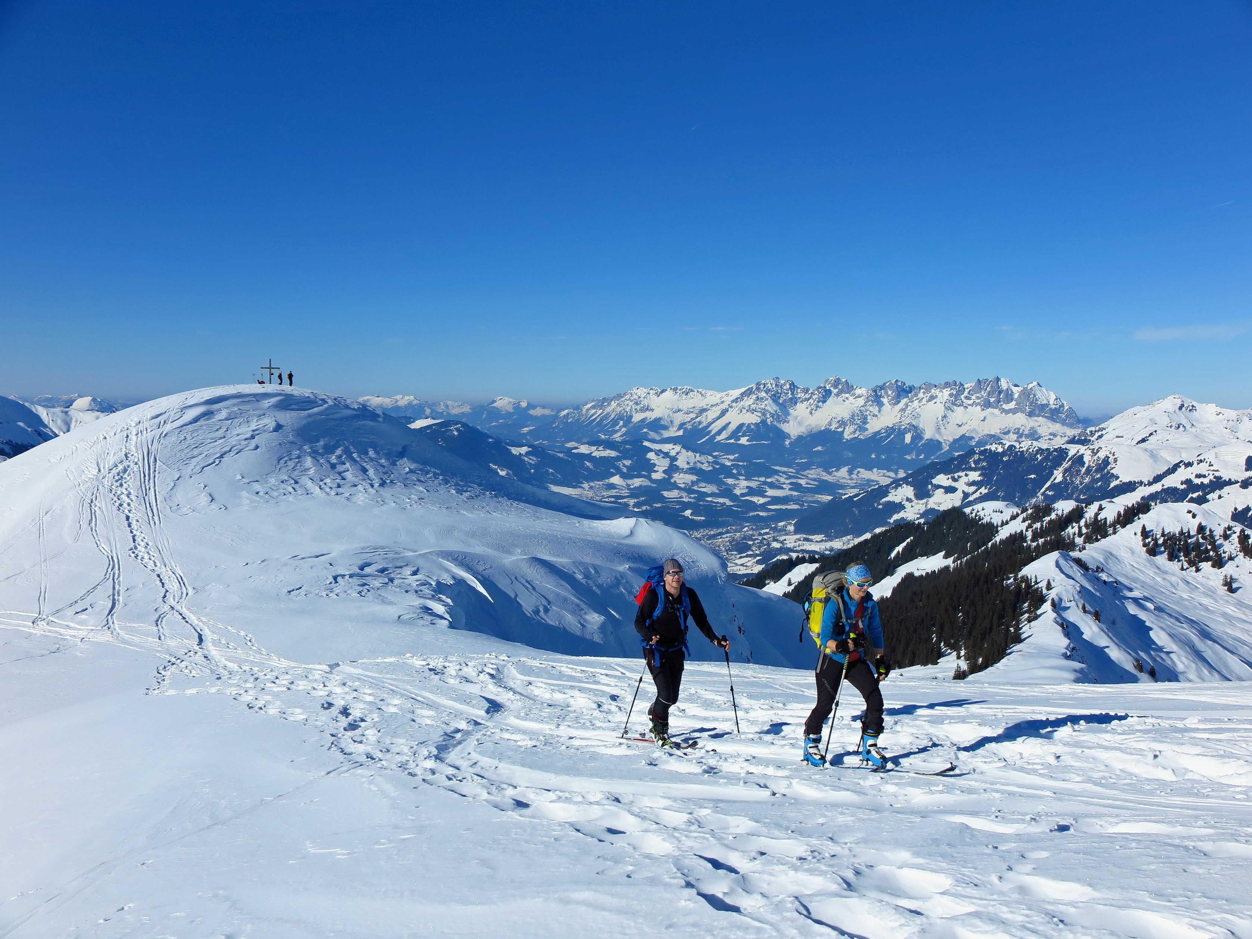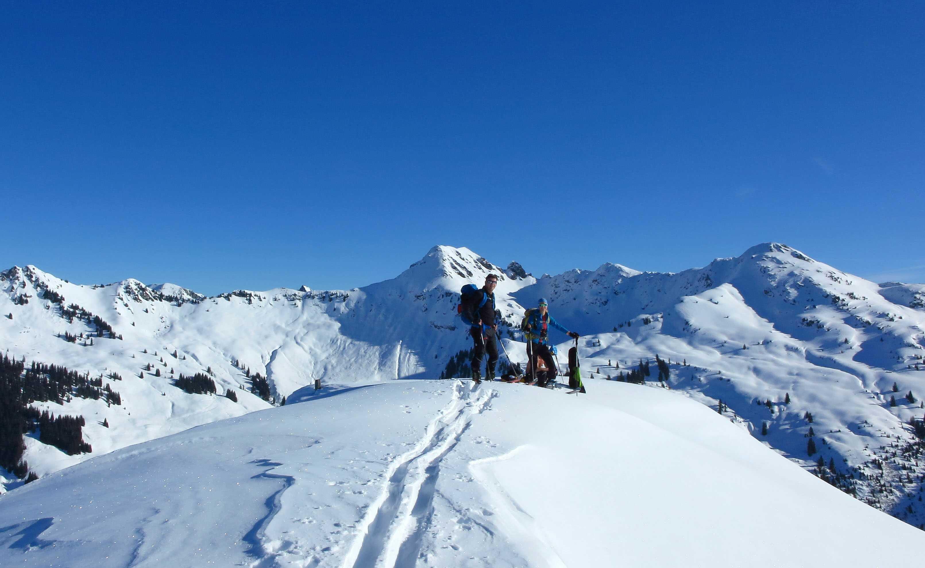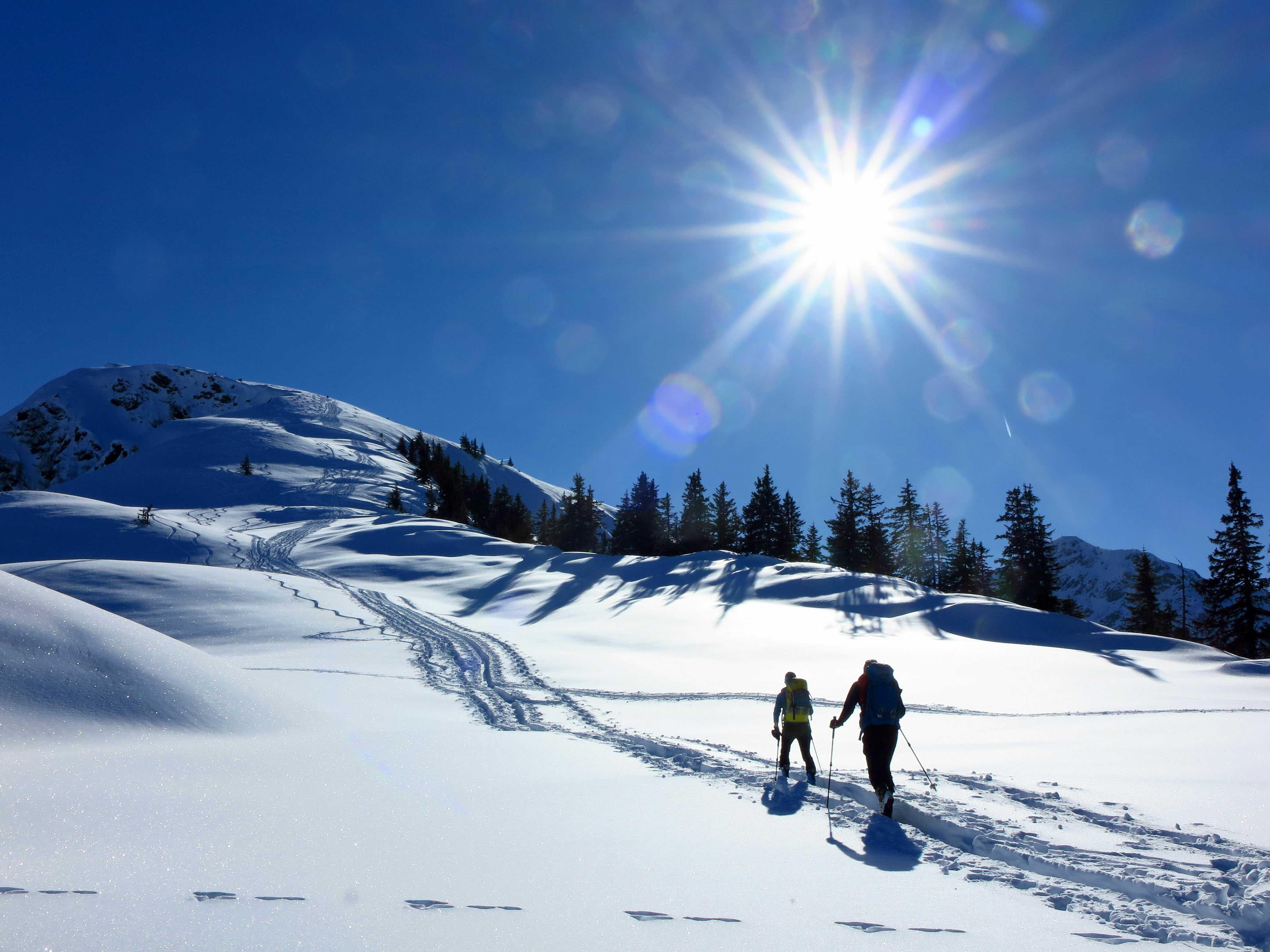 Lawinenbeobachtungen: Im steilen O-Hang unterm Hahnenkampl war eine große Gleitschneelawine vor kurzem abgegangen. Ansonsten stabile Verhältnisse.