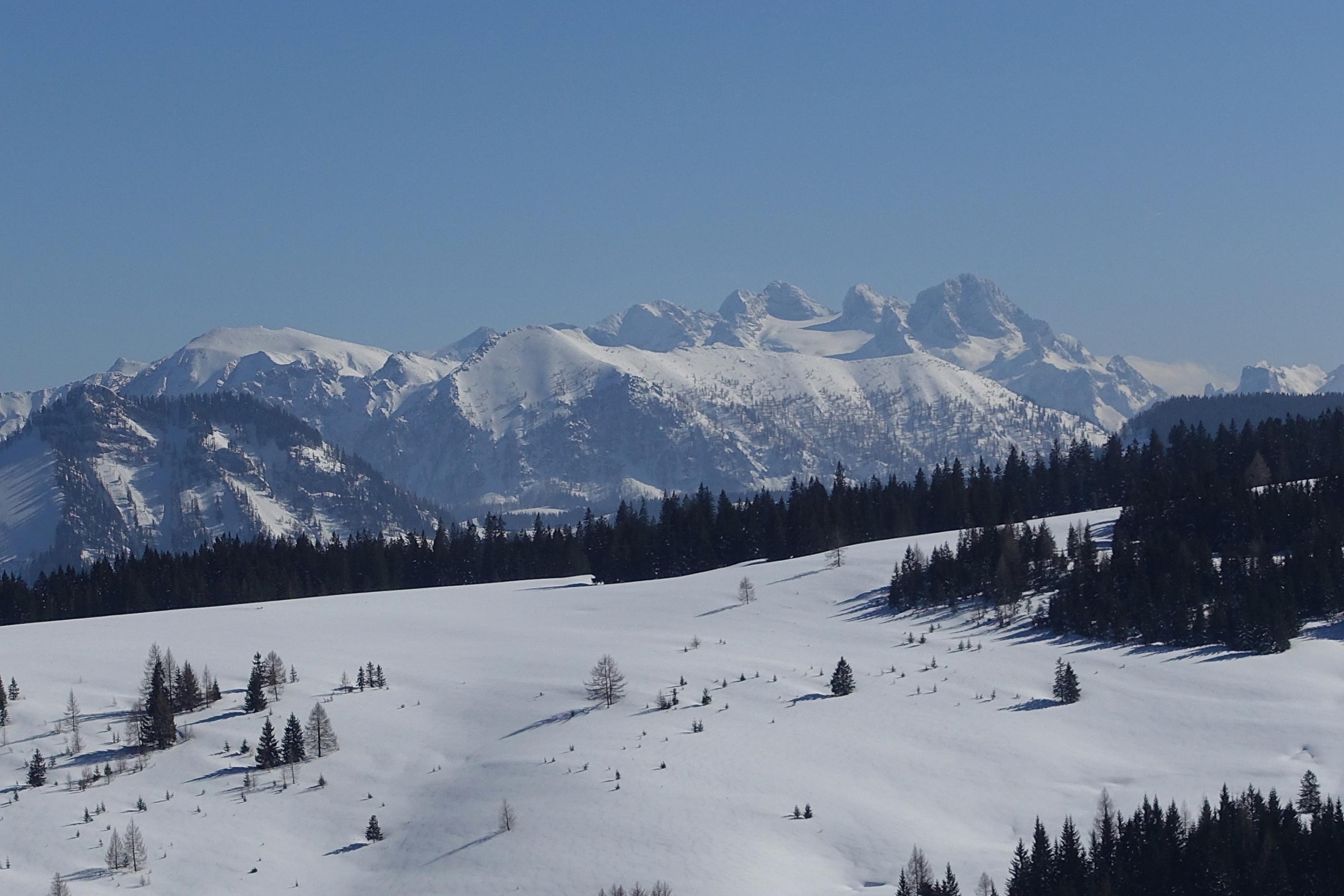 Bei Bilderbuchwetter einsame lange Forststraßenskiwanderung von Tiefbraunnau/Mitterholz über die Schafbachalm und Pillsteinalmen zum Illingerberg. Der Pulver war im obern Bereich schon etwas schnittig aber noch gut zu fahren, ab der Forststraße war nur ein langsames gleiten bzw. schieben entlang der Aufstiegsspur möglich - zumindest bis zur Schafbachalm.