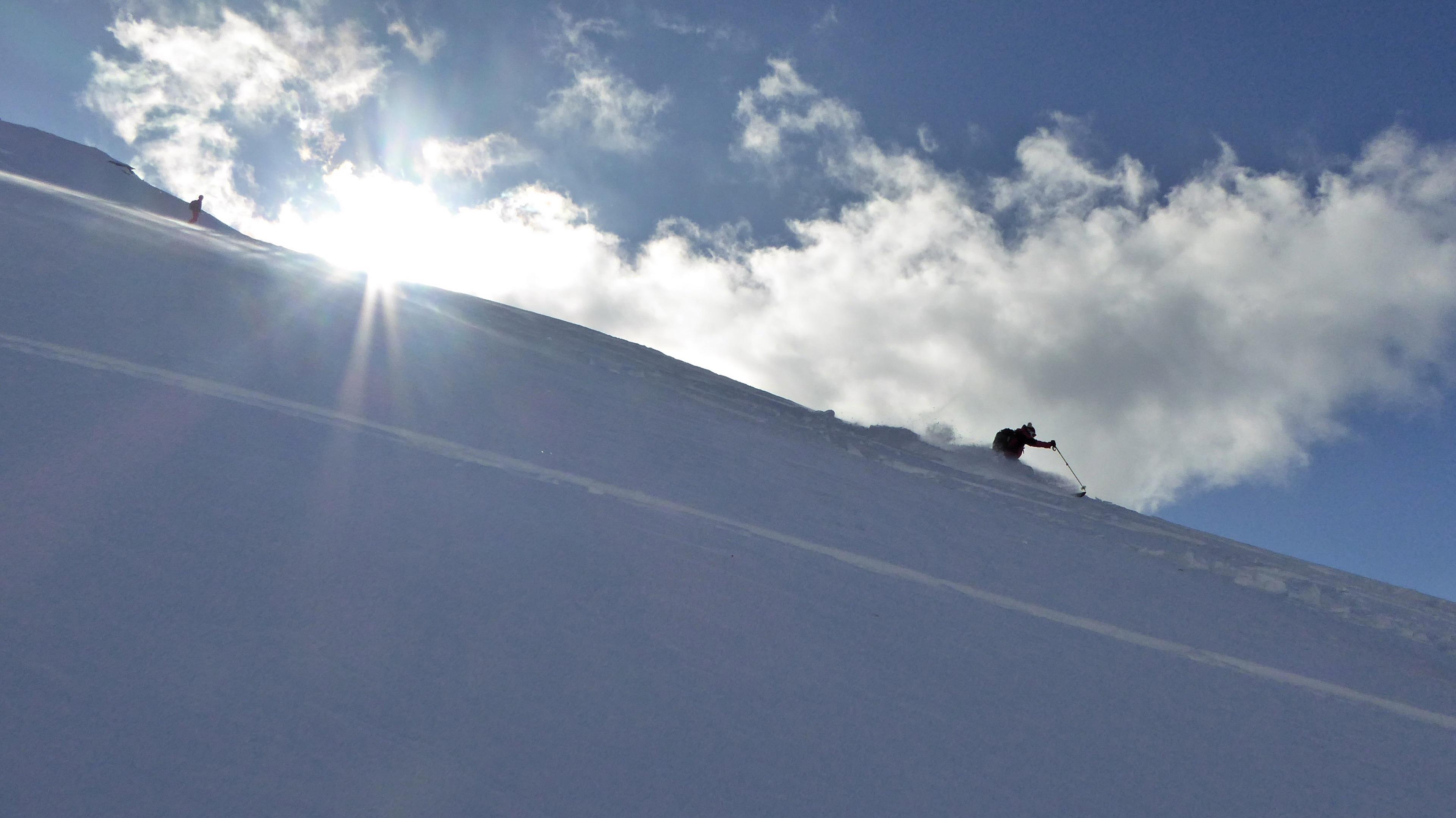 ...ja, die Seemannwand war im Gegensatz zu den letzten (gefühlt) 5 Jahren endlich wieder eine Reise wert! Neben dem ohnedies beeindruckenden Ambiente haben wir auch den Schneepoker für uns entschieden...in den schattseitigen Hängen (abgesehen von kurzen windexponierten Passagen war "old Powder" bis ins Tal angesagt!