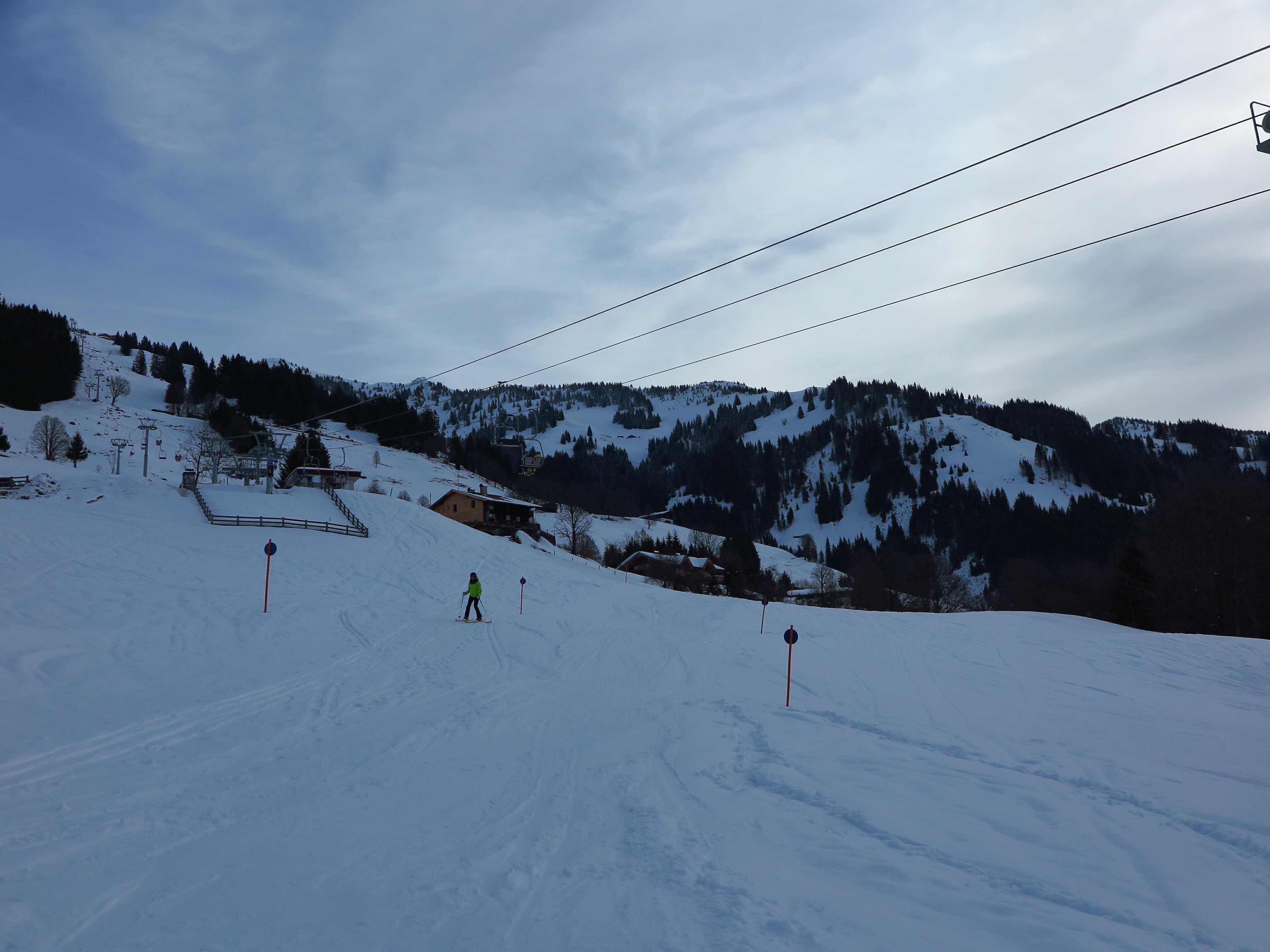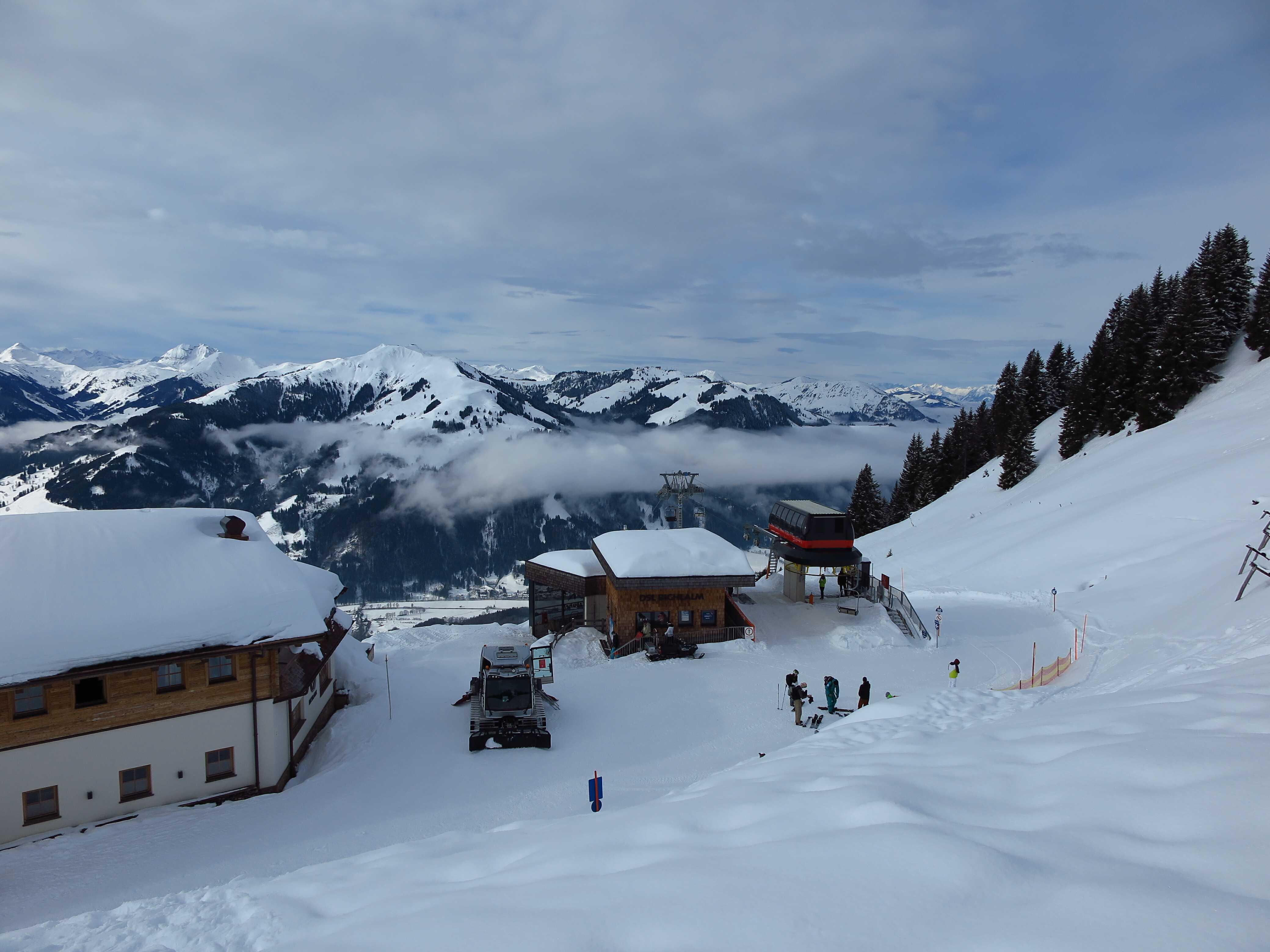 Schneelage: Bis zur Mittelstation (ca. 1150) noch ausreichend Schnee, aber ein paar Stellen beginnen schon auszuapern (keine Pistenpräparierung). Ab Mittelstation bis zum Gipfel auf der gewalzten Piste. Testabfahrt SO-Hang von Stuckkogel in recht schnittigem Schnee recht mühsam (obenauf ca. 2-5cm Pulver, dann brechender Harschdeckel mit ca. 20-30cm gesetztem Schnee vom Montag). Da freut man sich über eine schöne Pistenabfahrt zum PP zurück.