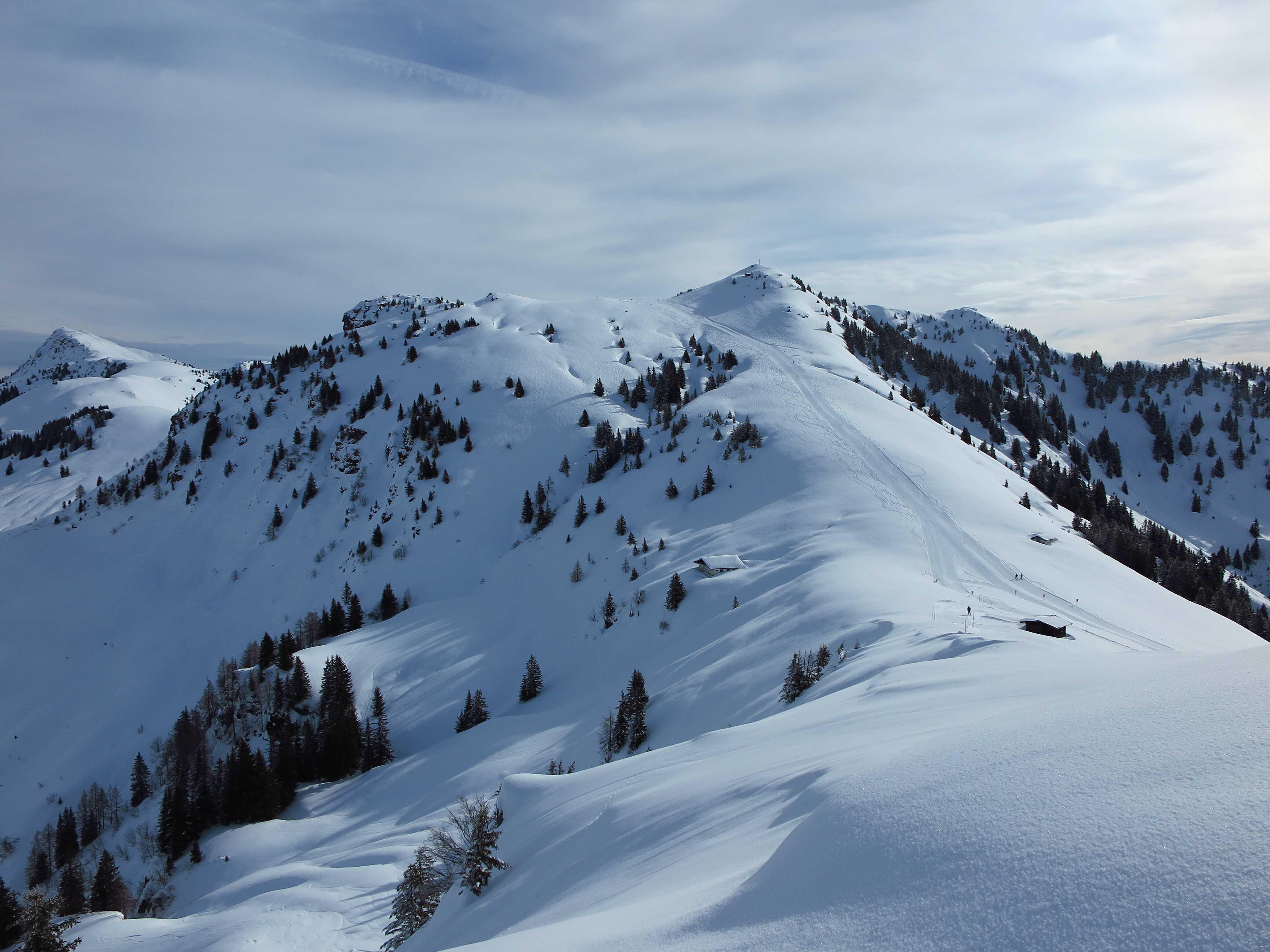 Vom PP des Bichlalmliftes (904) auf der gewalzten Abfahrt zur Bichlalm und weiter zum Hochetzkogel (1739) und zum Stuckkogel (1888). Abfahrt wie Aufstieg.