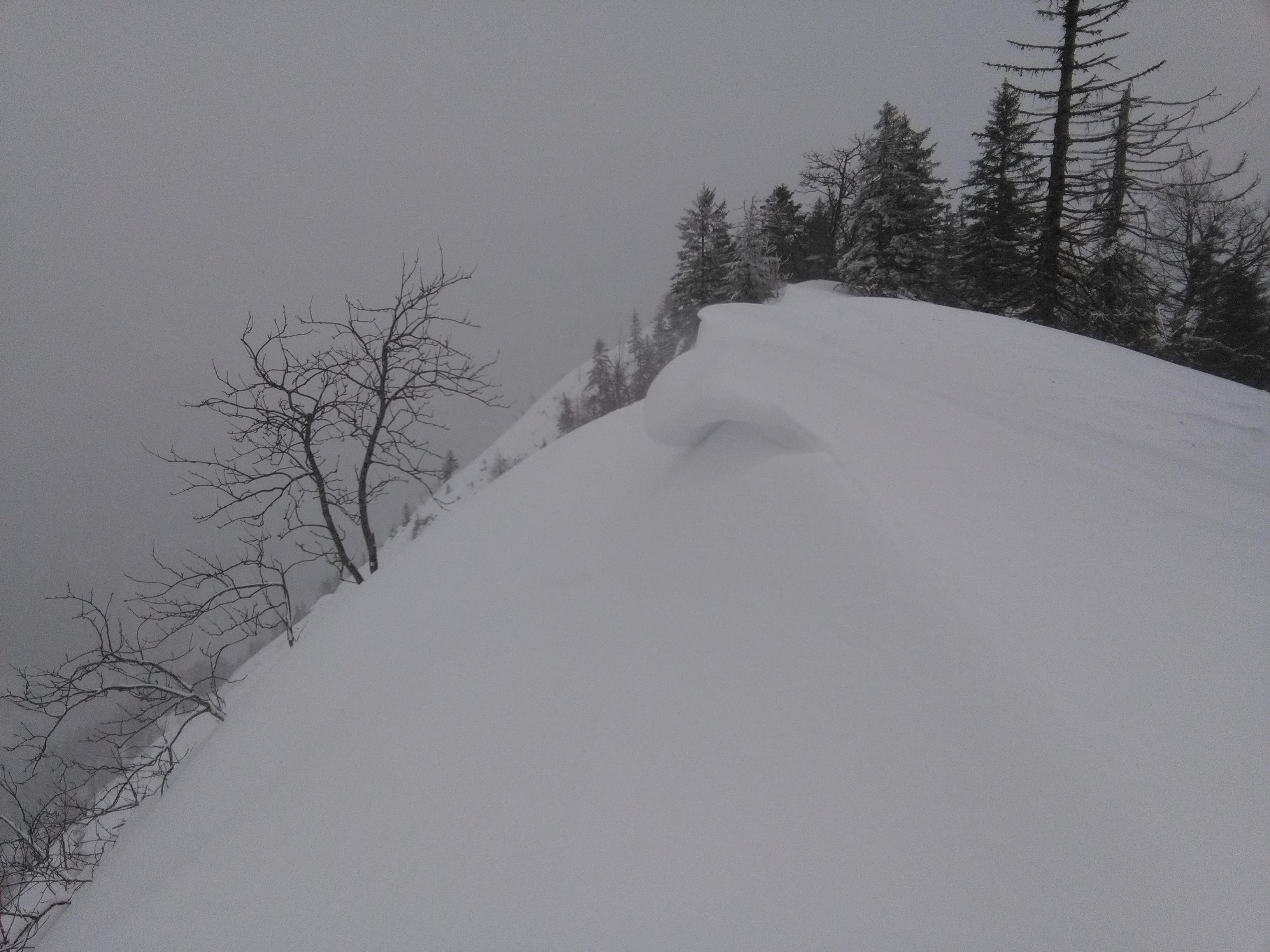 mit feierbedingter verspätung noch zu mittag pp spielbergstrasse aufs eibleck (850 hm). ab 13.00 ziehen erste leichte schneeschauer herein. sicht bleibt gut. der wind hat den pulver am kamm schon "behandelt" . im wald aber noch lockerer pulver etwa 30 cm auf hartem grund. bei etwas orientierungssinn kann man im steileren wald bis höhe kreuzung wegweiser ochsenberg-spielberg/grünaualm abfahren. die steileren hänge lasse ich dabei aus...