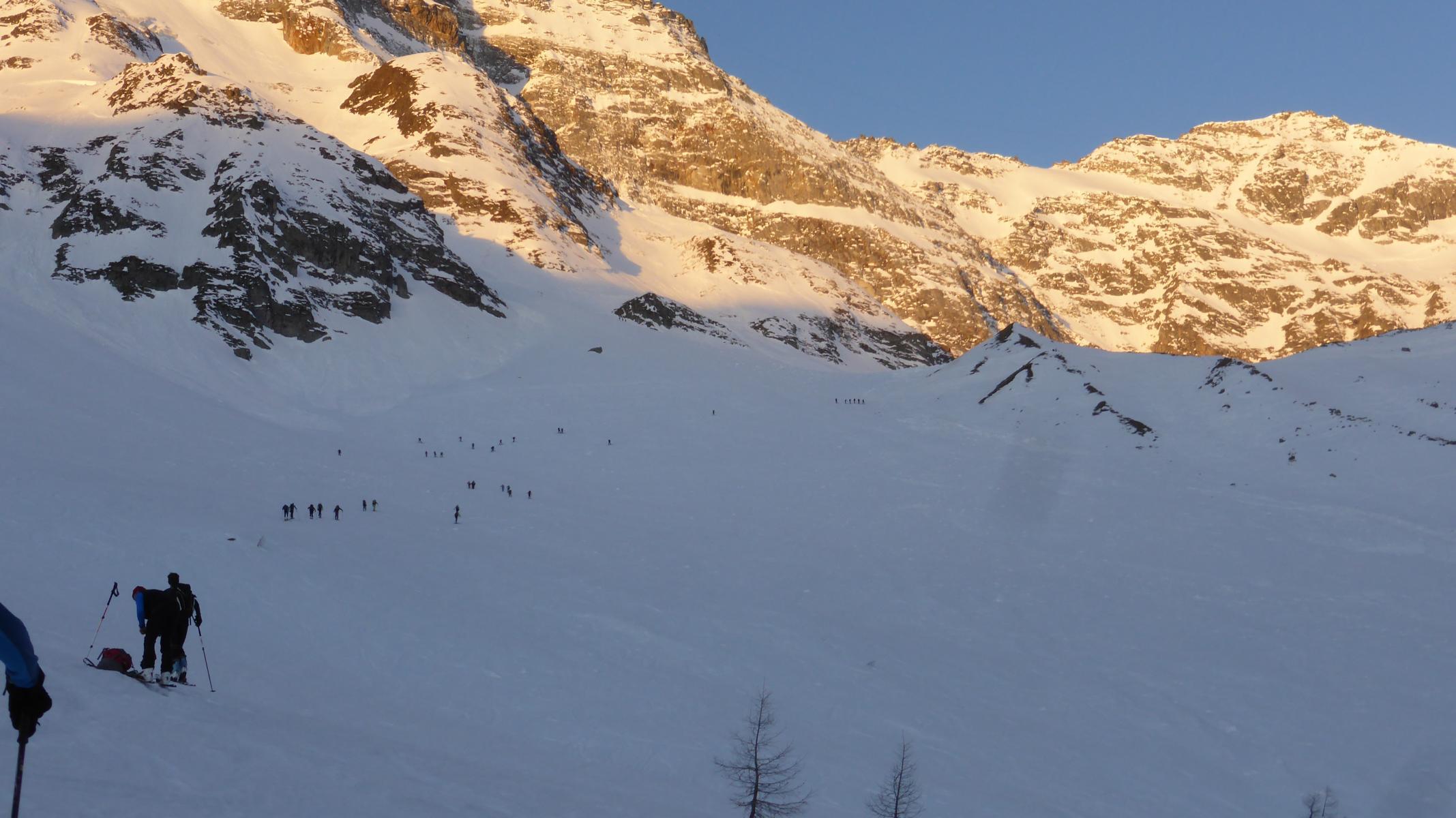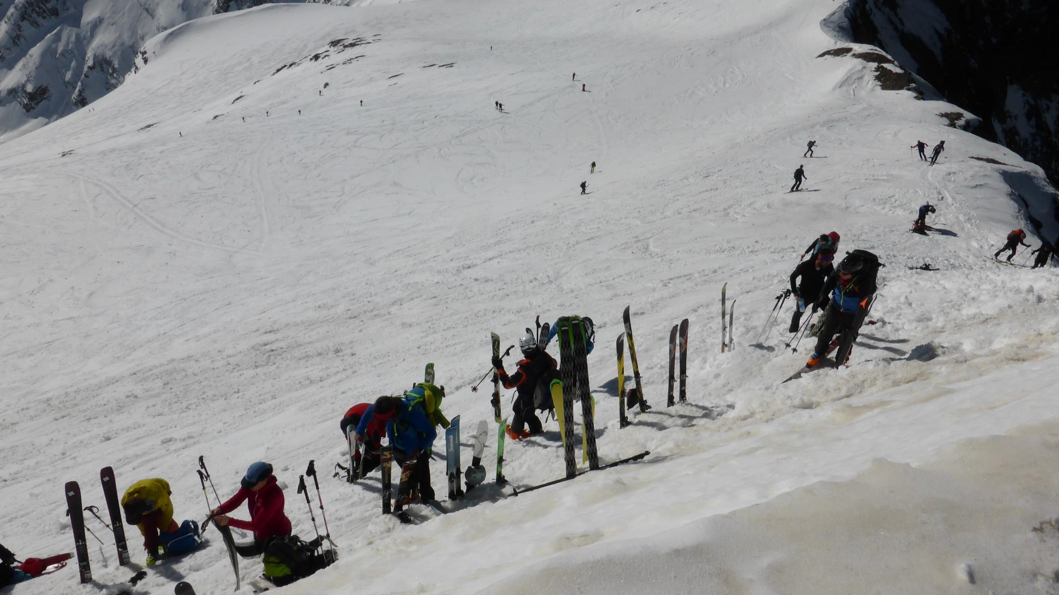 Völkerwanderung auf den Hocharn schon am Freitag!. Wohl an die 100 Gipfelstürmer bei optimalem Wetter unterwegs. Wiederum sehr warmes Wetter schon in der Nacht. Im Flachstück zum Parkplatz noch fast bis zur Brücke Schnee. Auf Grund der hohen Temperaturen war die Abfahrt um 10:15 Uhr fast ein bisschen zu spät, manche Expositionen schon arg aufgeweicht, aber über weite Strecken auch noch optimaler Firn.