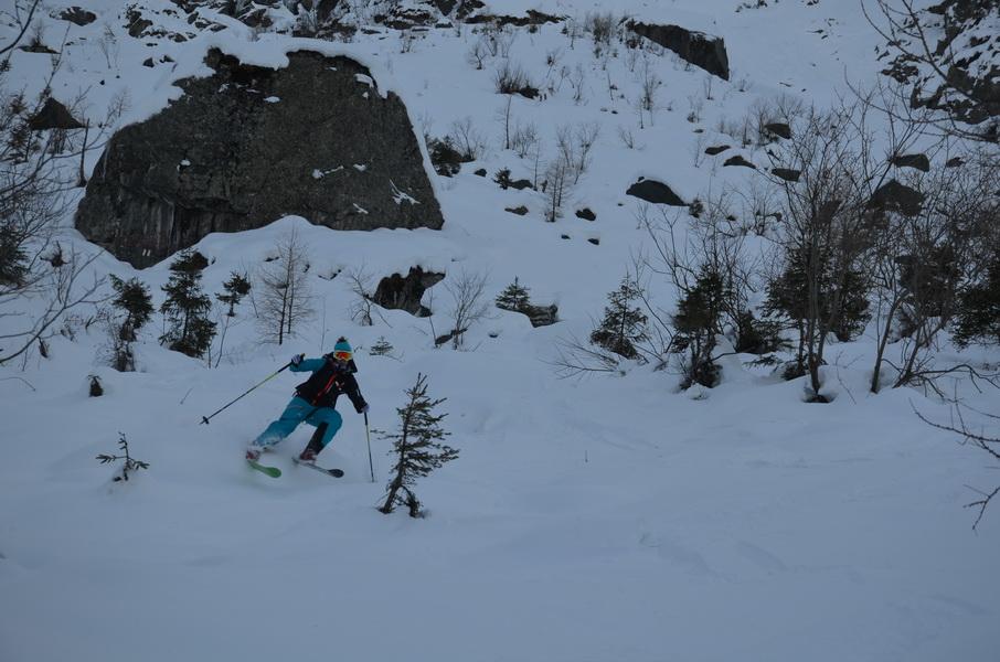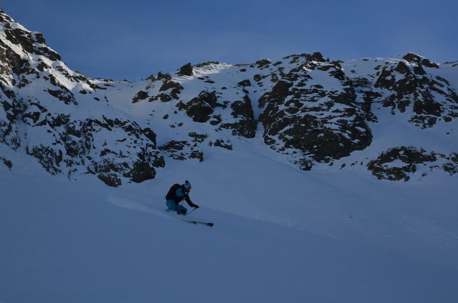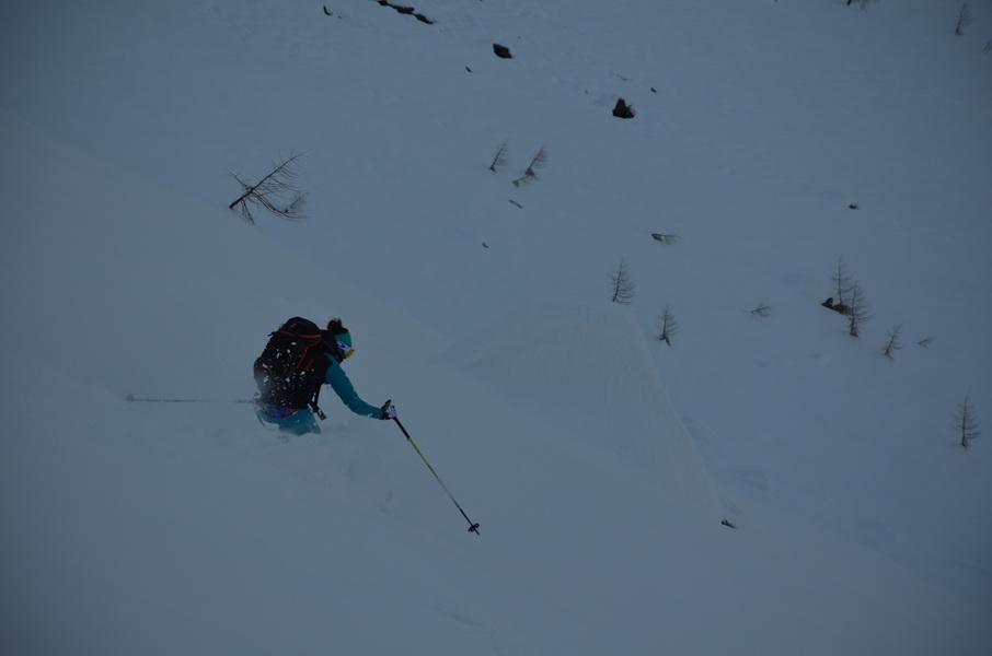 Tolle Tourenbedingungen im Lesachtal. Die Schneedecke hat sich in der Zwischenzeit schon etwas gesetzt, war aber immer noch recht gut fahrbar. Am sonnigen Gipfelhang konnte man einige kleinere Lockerschneerutscher von den letzten Tagen sehen. Gegenüber im Schatten dann ein Schneebrett, welches aus steilem felsdurchsetztem Gelände abgegangen ist. Bedingt dass die Tour zum Großteil durch schattseitiges Gelände führt haben wir immer noch ganz brauchbare Abfahrtsbedingungen vorgefunden. Lediglich der Weg im unteren Abschnitt war aufgrund der Reifenspuren etwas mühsam zu fahren.