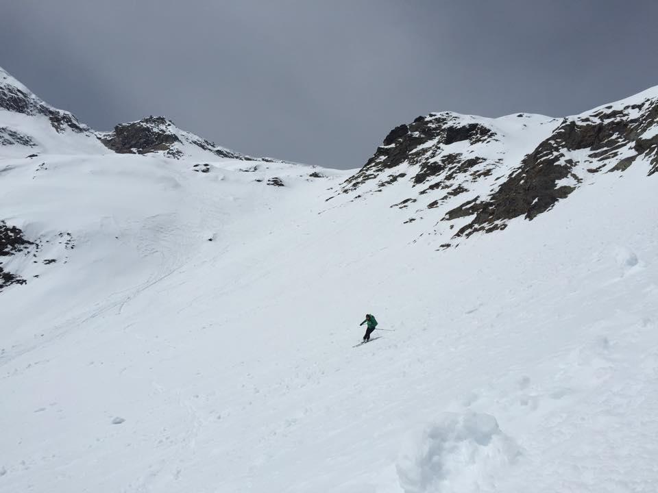 Verhältnisse: Durchgehende Schneedecke ab 1600 mSh. Oben windgepresst dann schöner Firn. Unten weich.