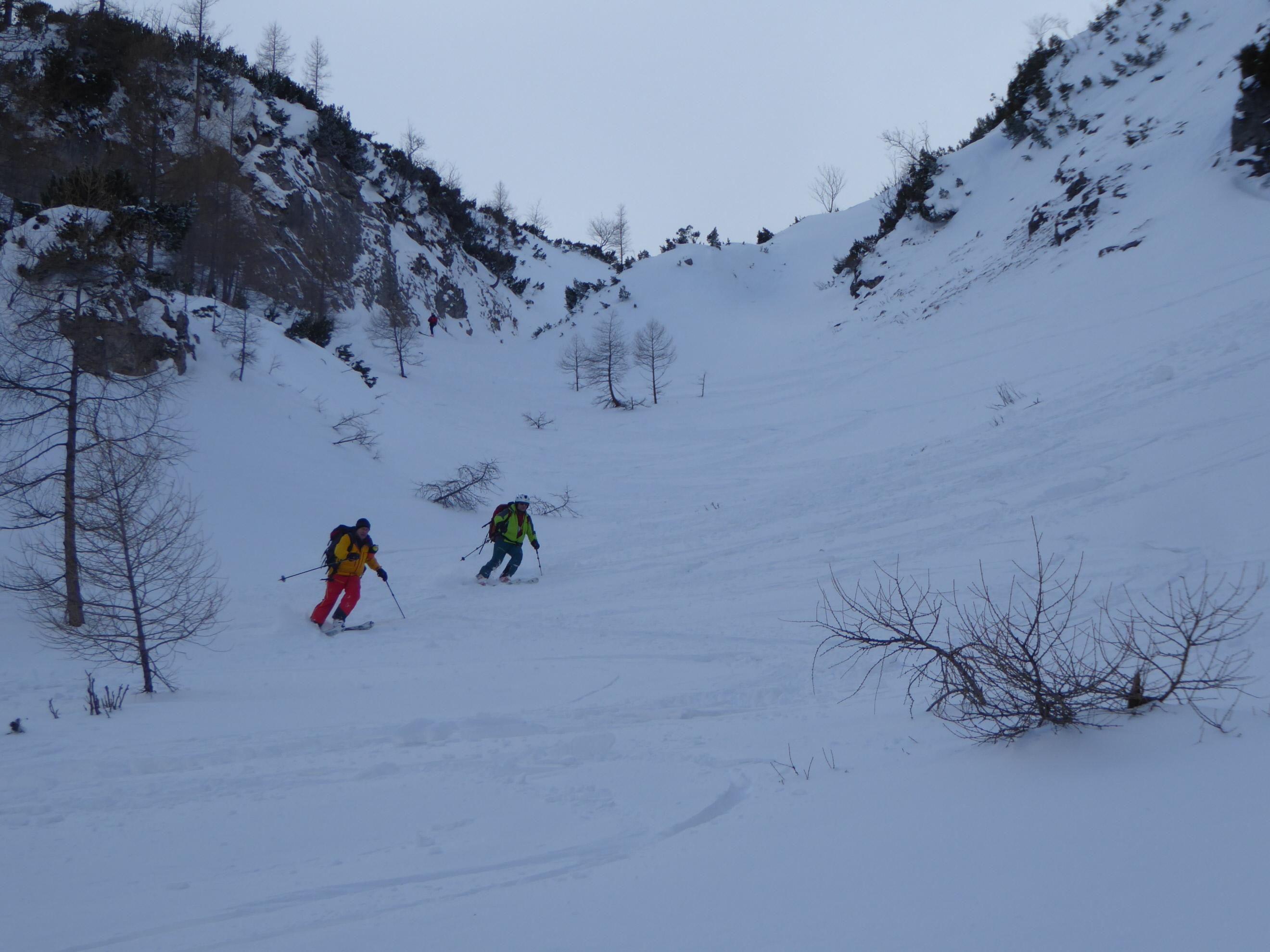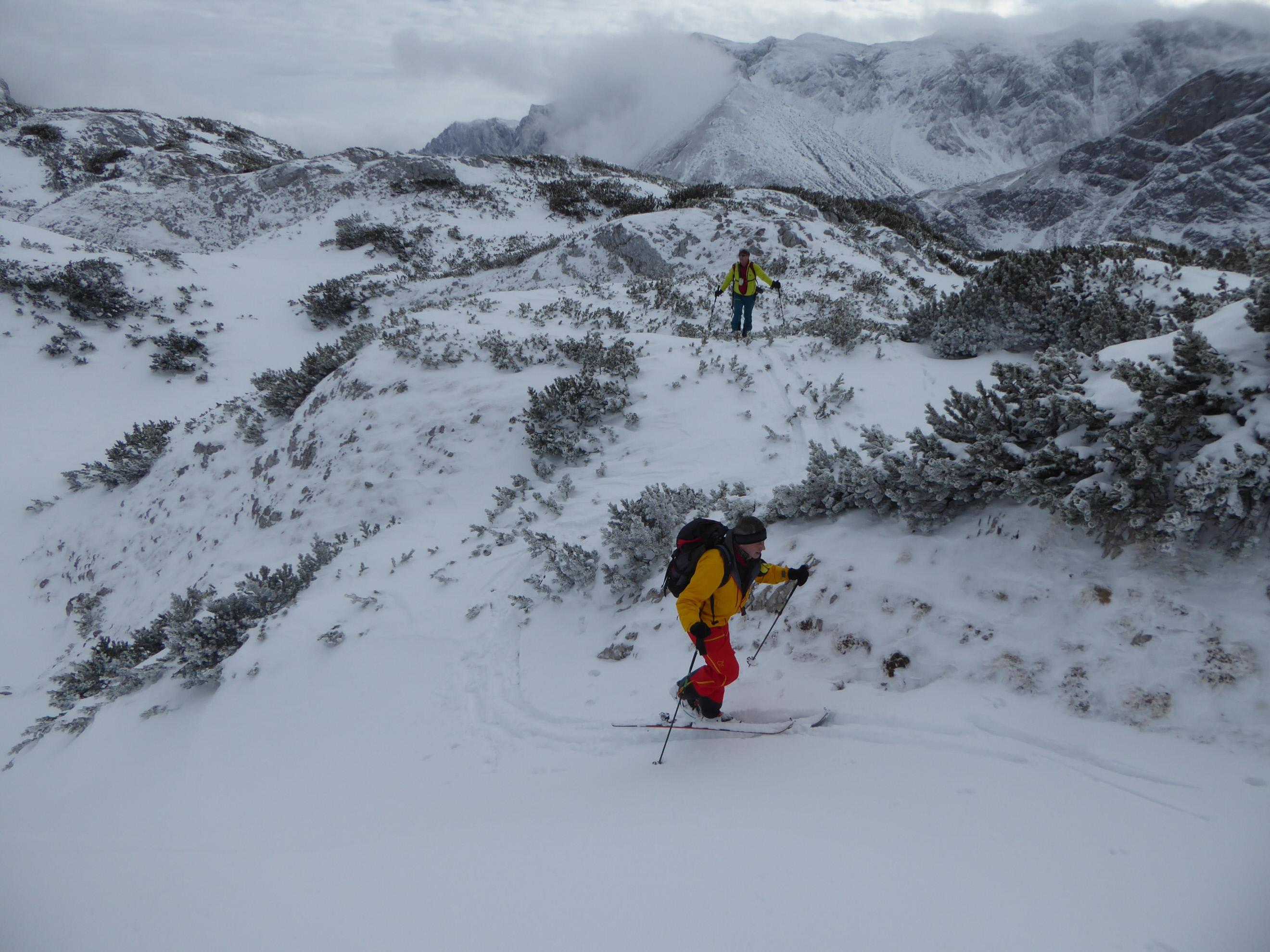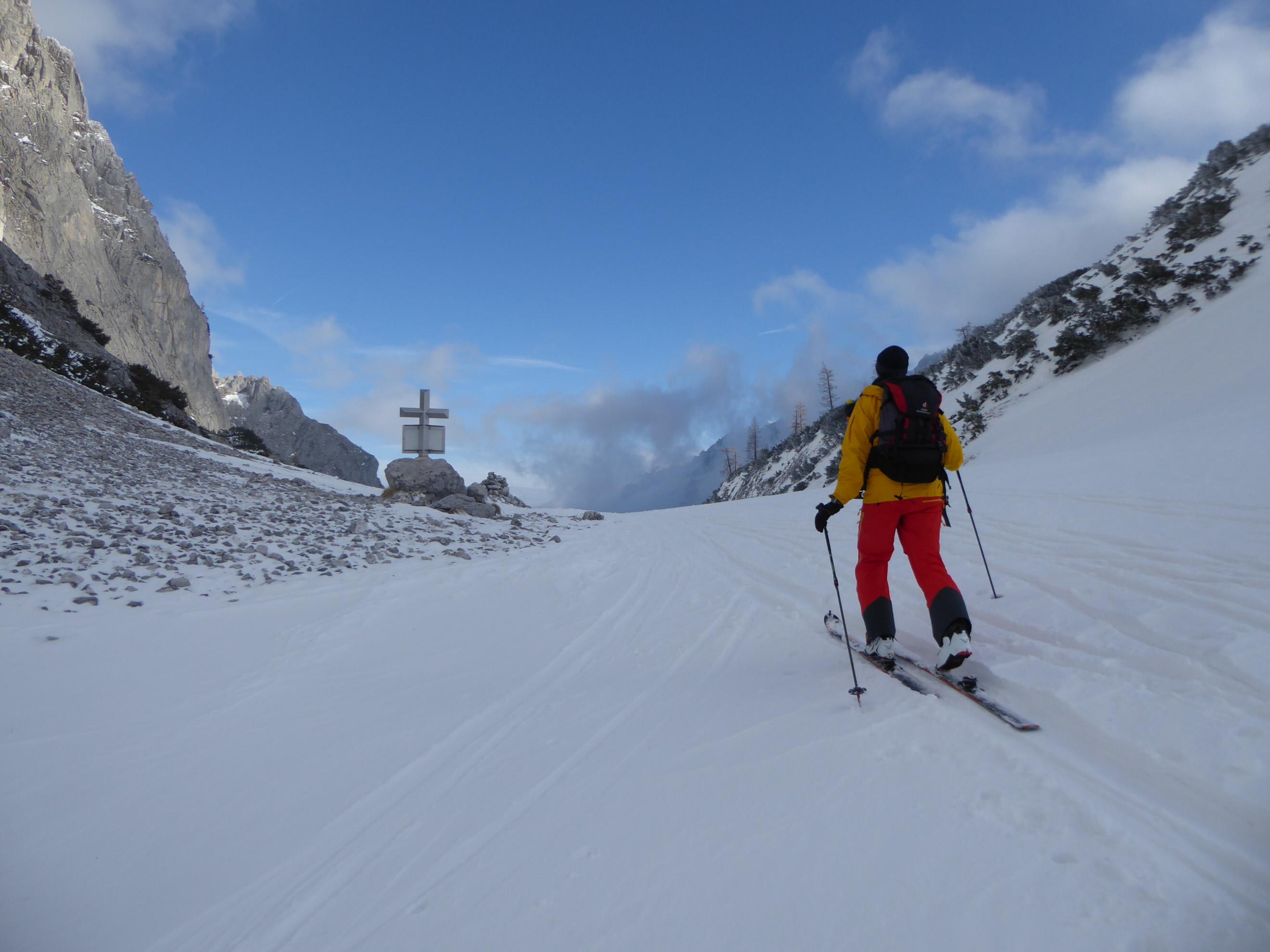 Lange und im Zustiegsbereich flache Tour mit Ausgangspunkt in Seewiesen und der obligaten Gegensteigung beim Franzosenkreuz ; im Kühreichkar stetiges Auf und Ab, wo es gilt, bei der heurigen geringen Schneelage, den besten Weg zwischen den Latschen und den Dolinen zu finden