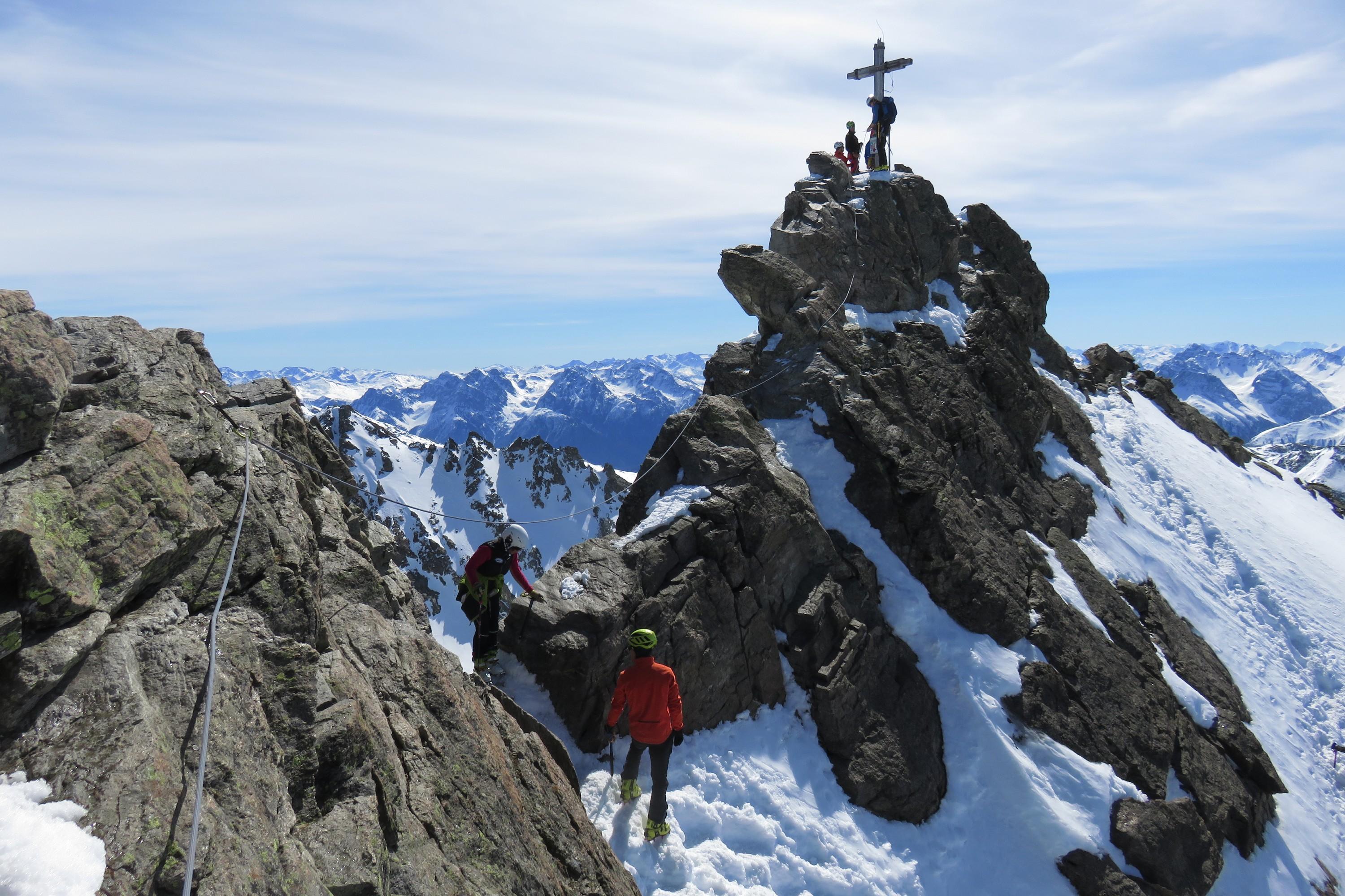 Wenn bei uns der Frühling schon nicht mehr aufzuhalten ist, hier eine kurze Info zu den Tourenverhältnissen im Engadin, Bereich Chamonna Tuoi: Hüttenzustieg von Guarda aus nur noch etwa zur Hälfte mit Ski möglich, der Schnee beginnt erst bei ca. 1900 m. In der Runde um die Hütte sind alle Gipfelziele bestens mit Schnee versorgt, am Morgen hart und je nach Ausrichtung und Tageszeit Firnschmier, auch am Nachmittag kein Sulz. Für die 2 Gruppen des DAV Tittmoning war alles möglich: Fil da Tuoi beim Hüttenzustieg, dann Dreiländerspitze, Hintere Jamspitze, Piz Urezzas, Piz Buin, Silvrettahorn, Silvretta Egghorn, Piz Champatsch. Weiter Infos und Bilder später wieder auf gps-tour.info.
