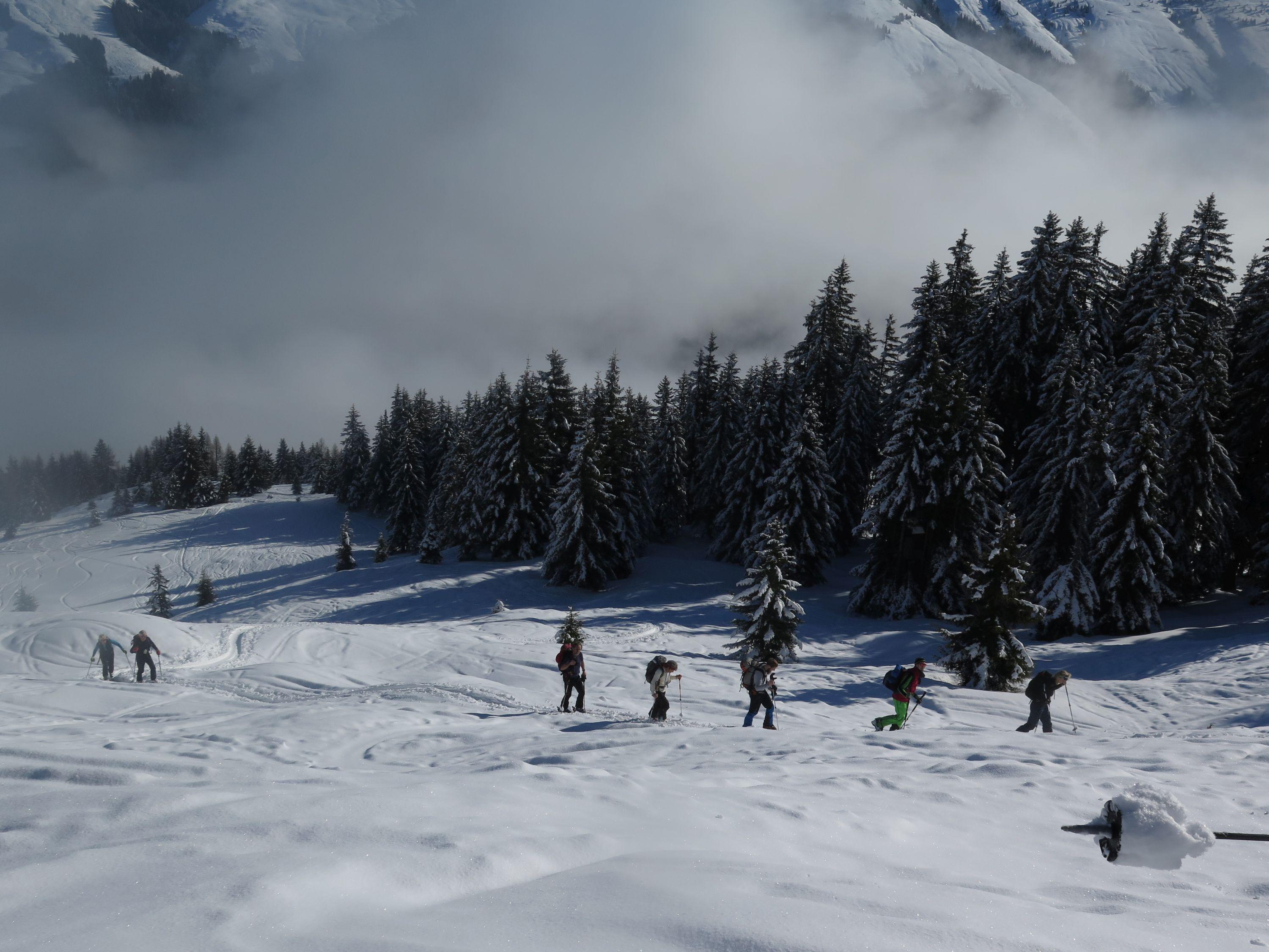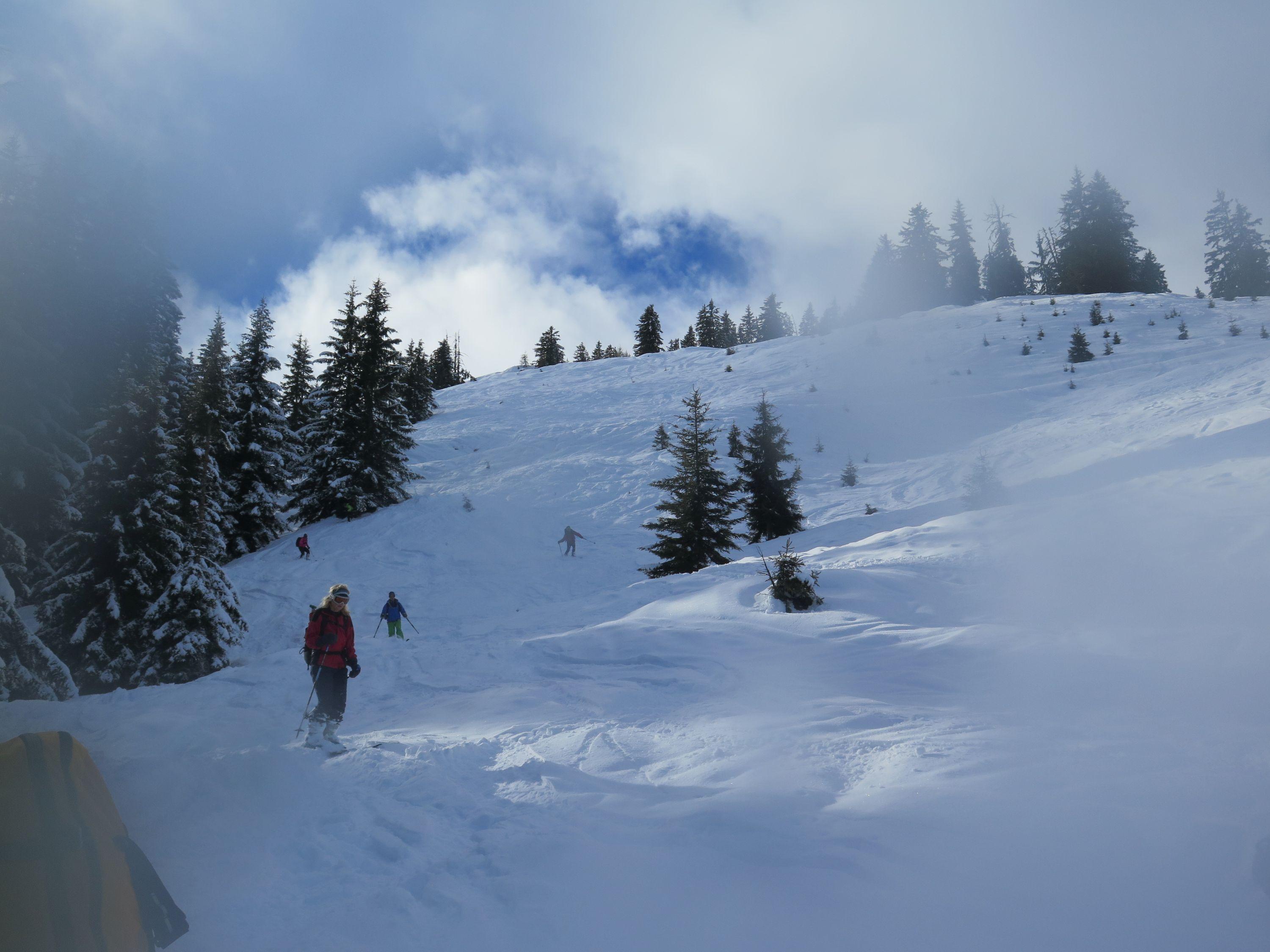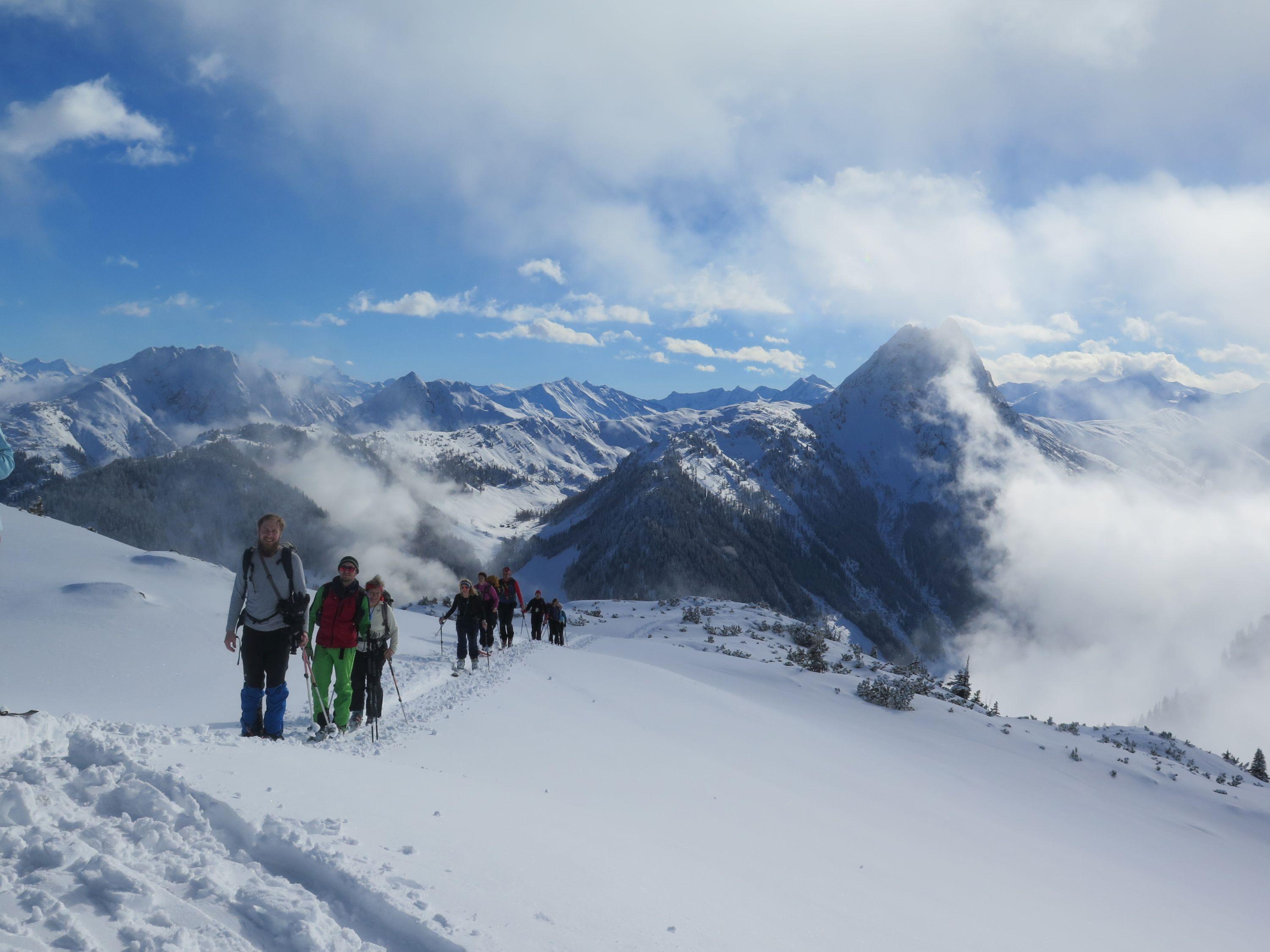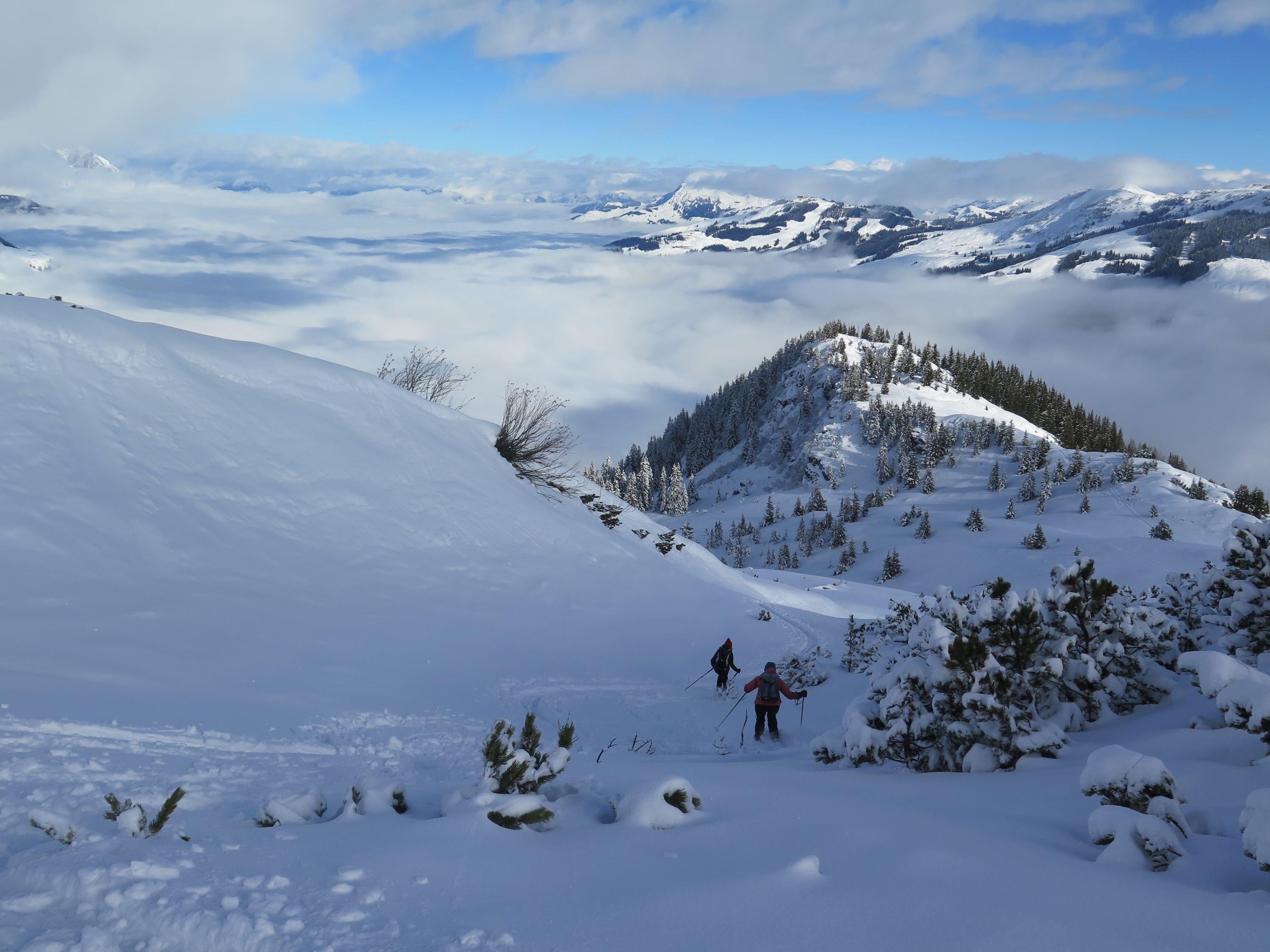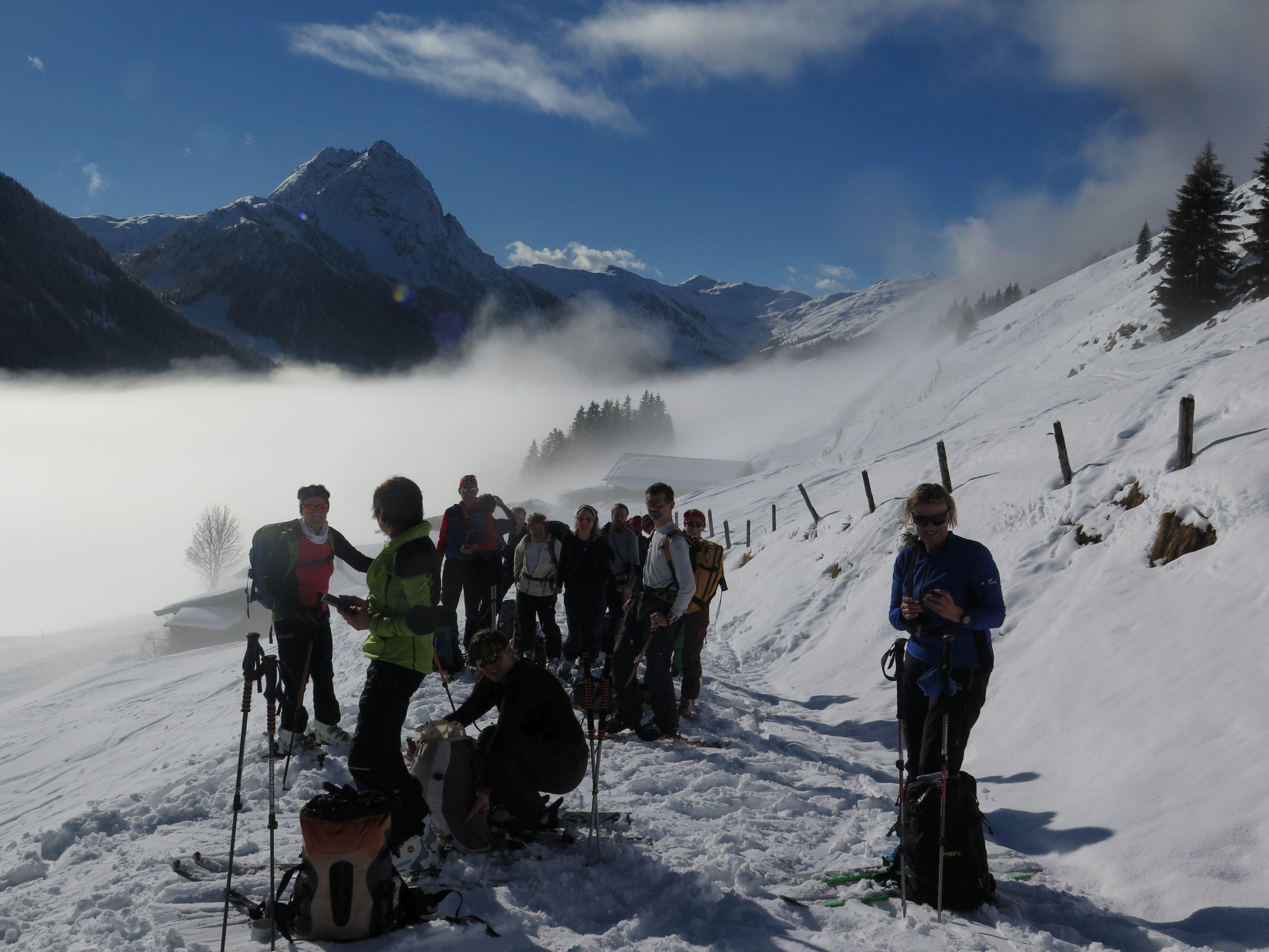Nach den gestrigen Niederschlägen, vorwiegend Regen und morgentlichem Nebelmeer steigen wir zur Durach-Hochalm. Überraschend strahlt die Sonne, die uns bis zum Breitlabkopf begleitet. Neuschnee ab 1500m ca. 20cm, ab 2000m dichter Nebeleinfall. Abfahrt: Großteils gut, schwerer Schnee nur ganz herunten.( zenzi)