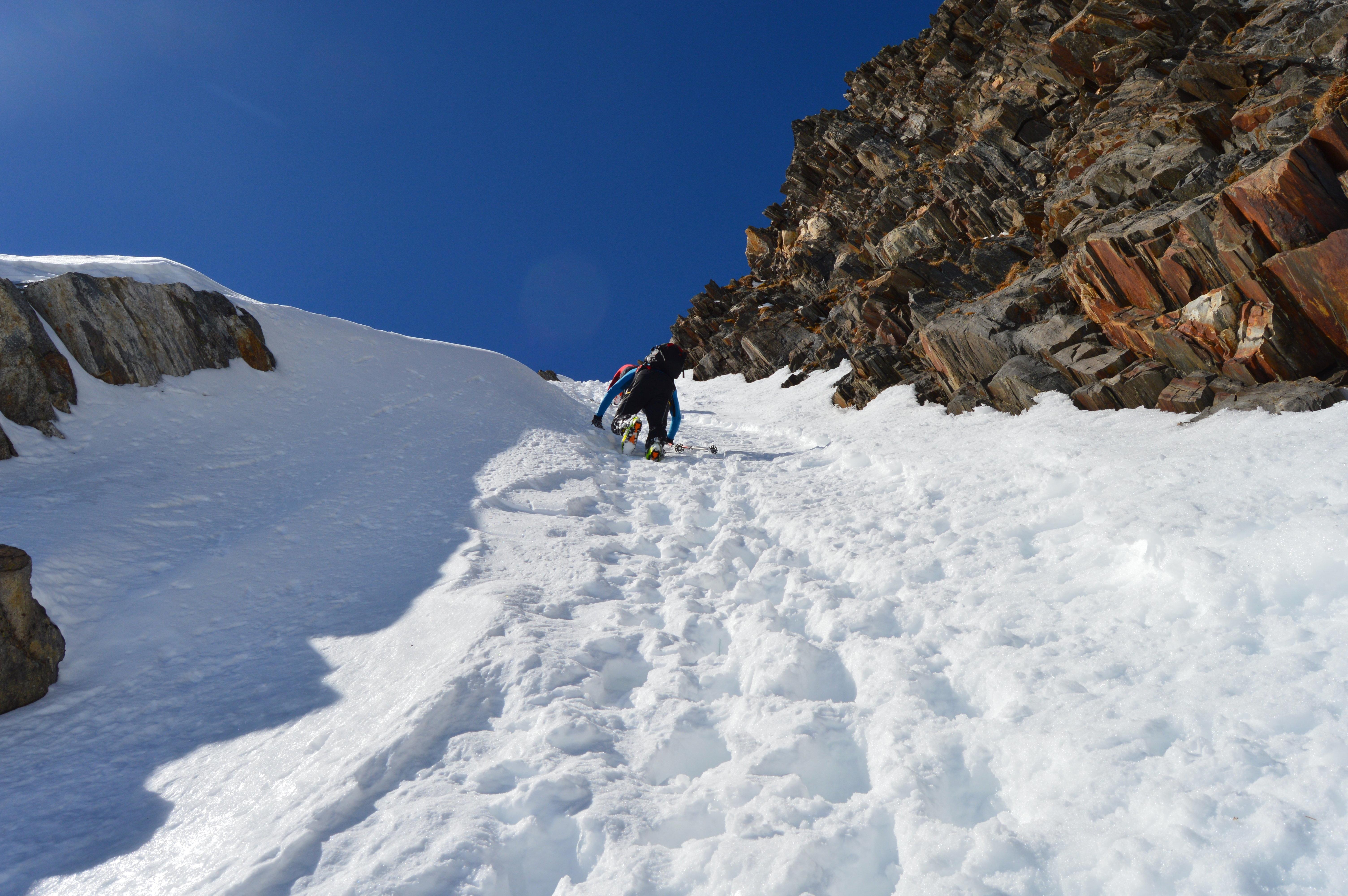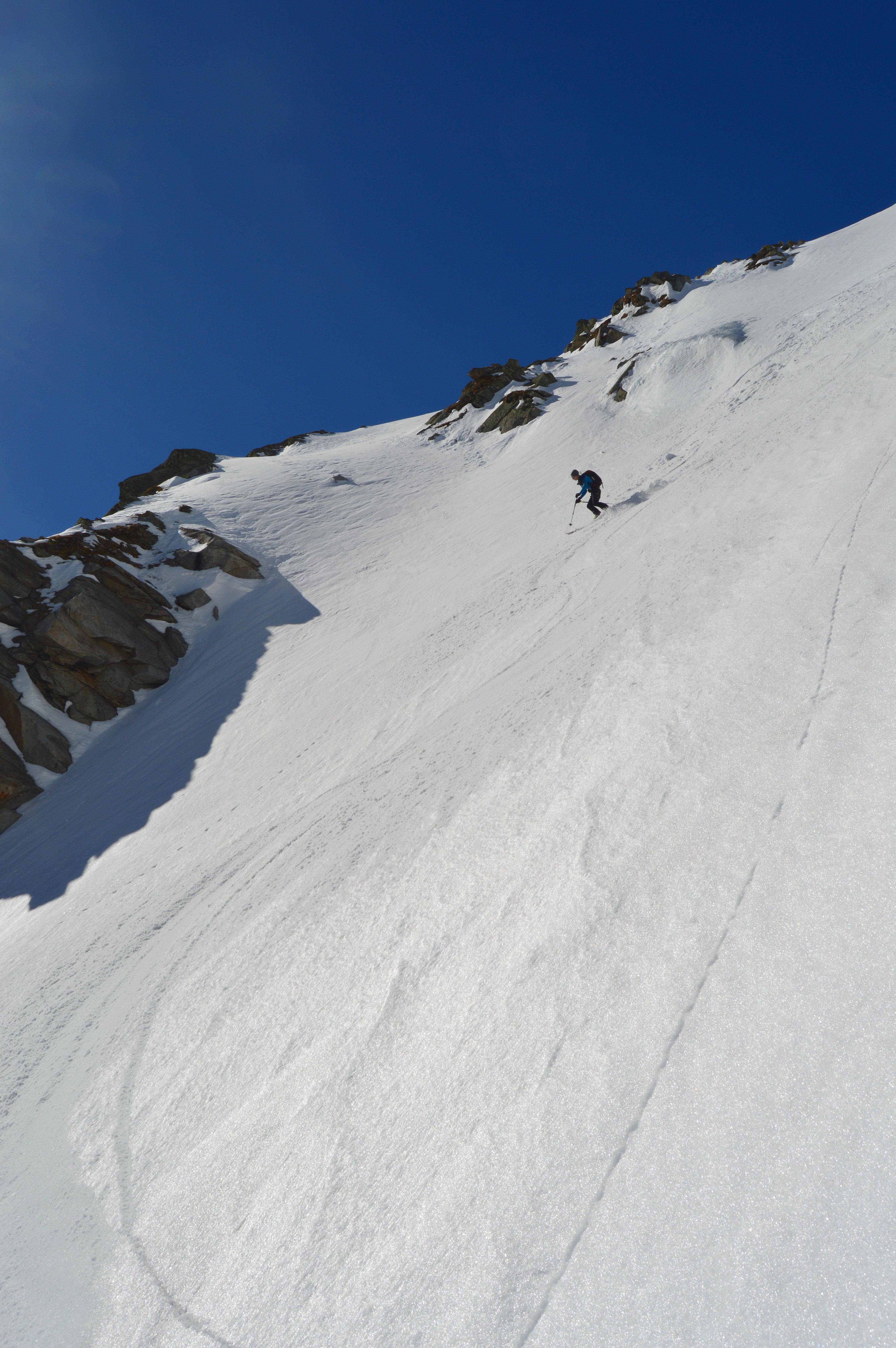 Abfahrt durch die steile Rin…