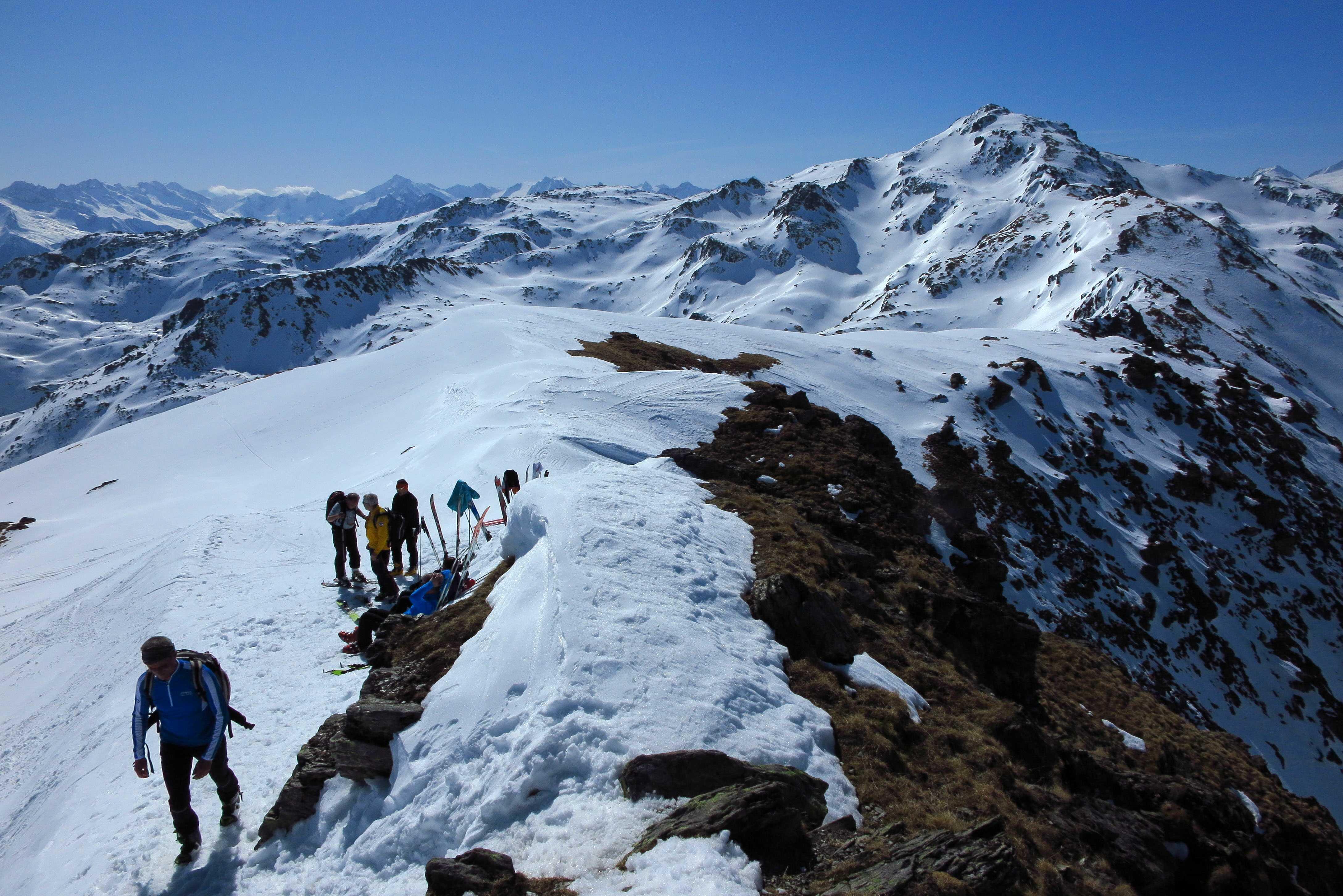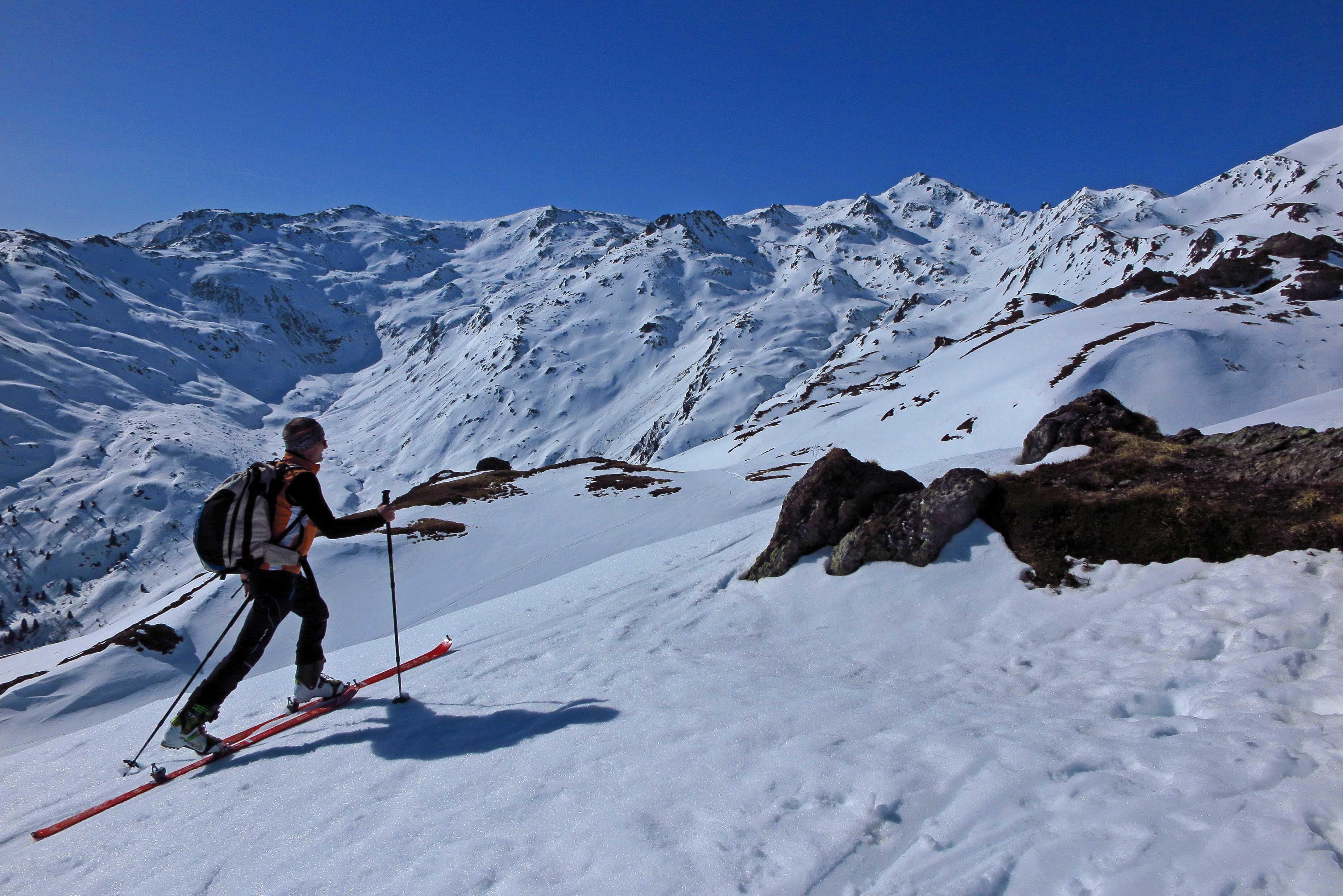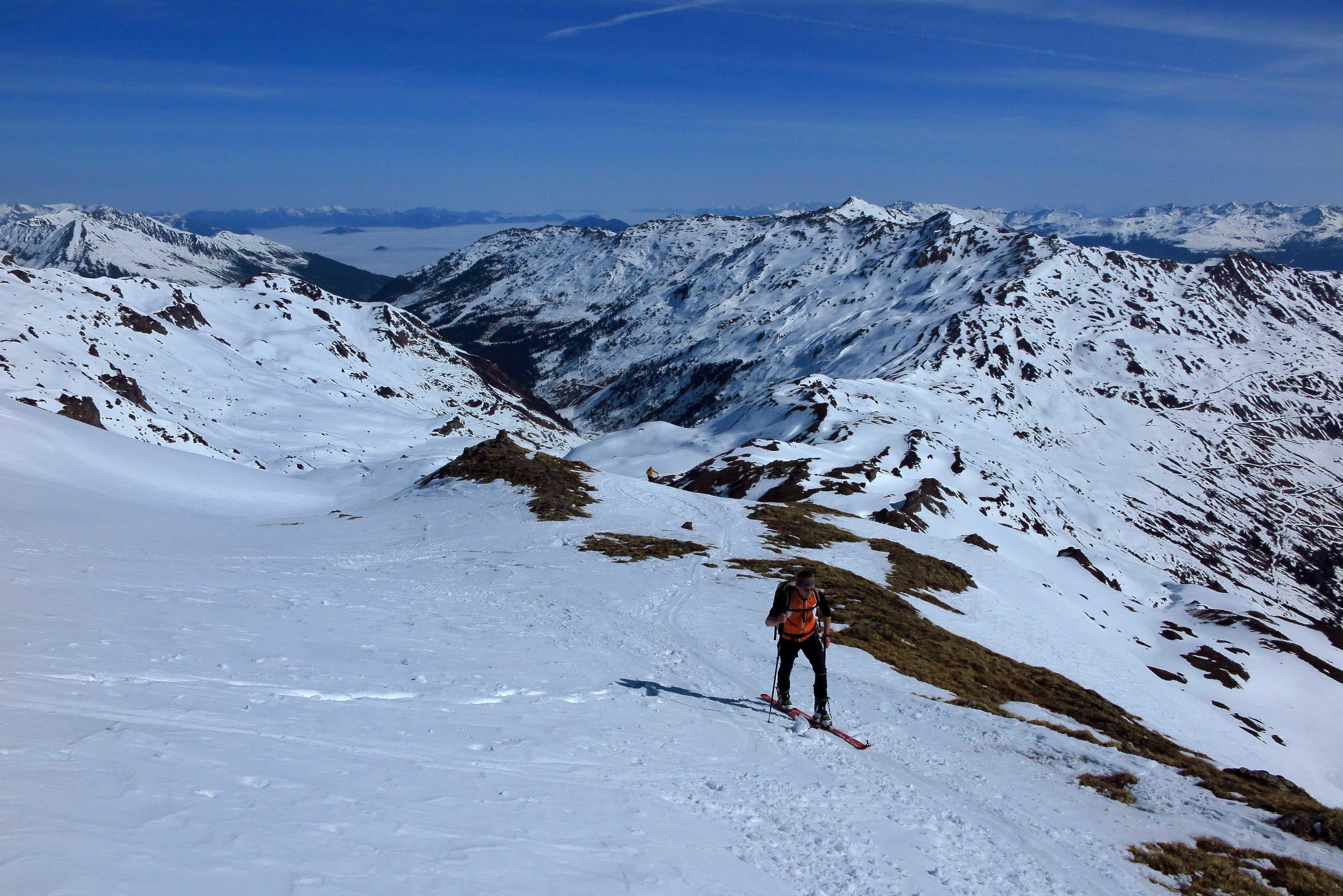 Von Hochfügen (1490) über die Pfundsalm und das Sidanjoch zum Roßkopf (2576). Abfahrt über NO-Seite zurück.