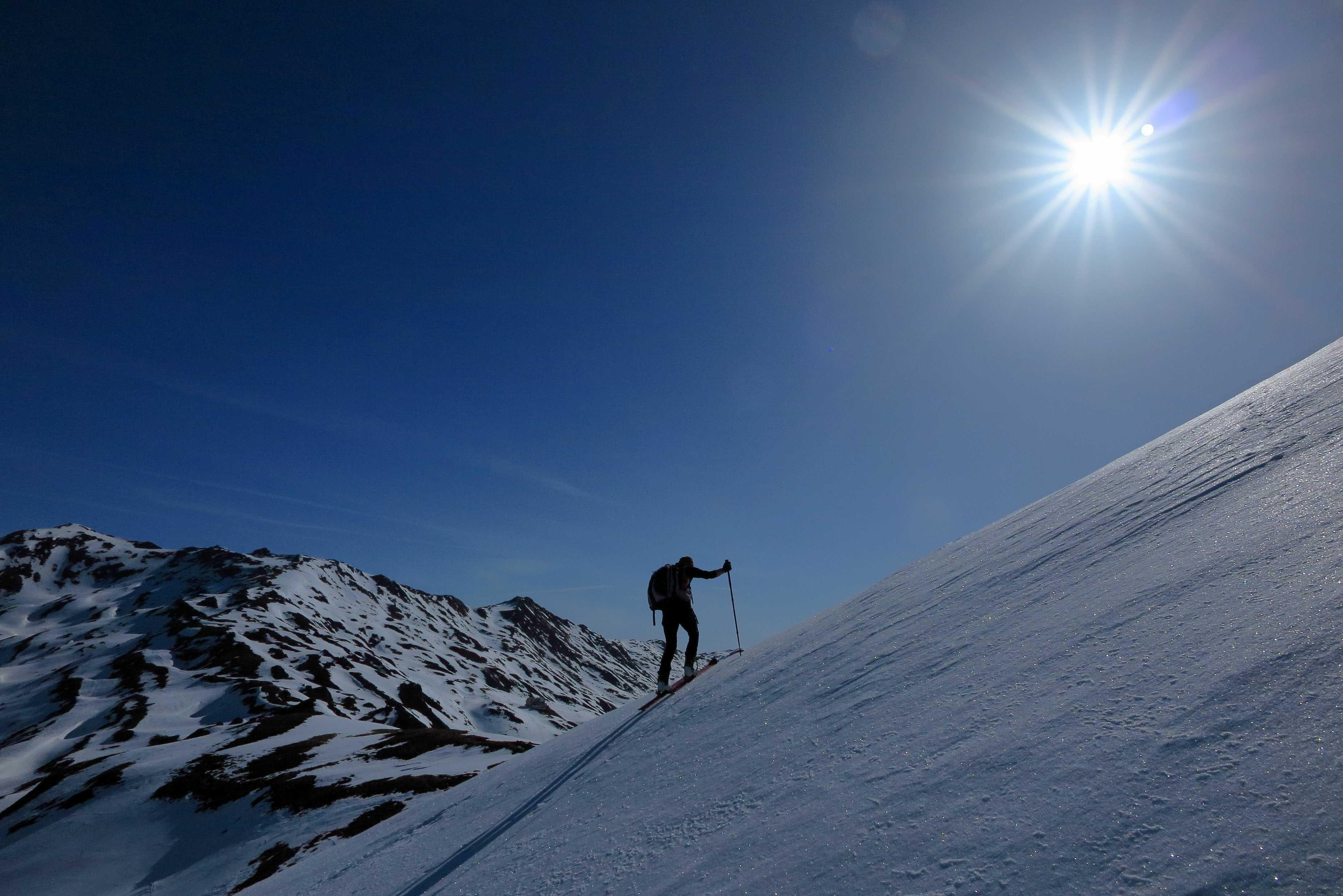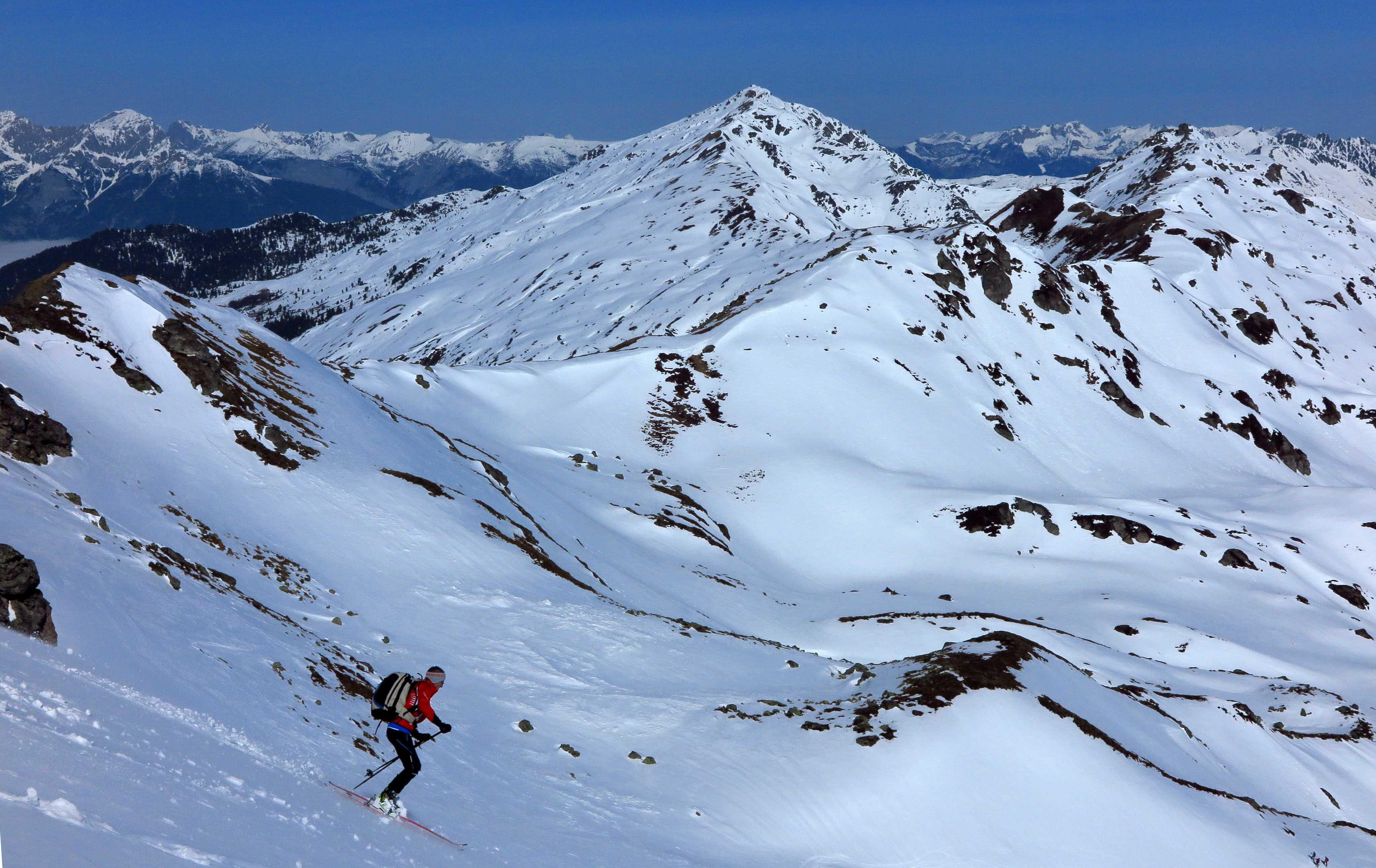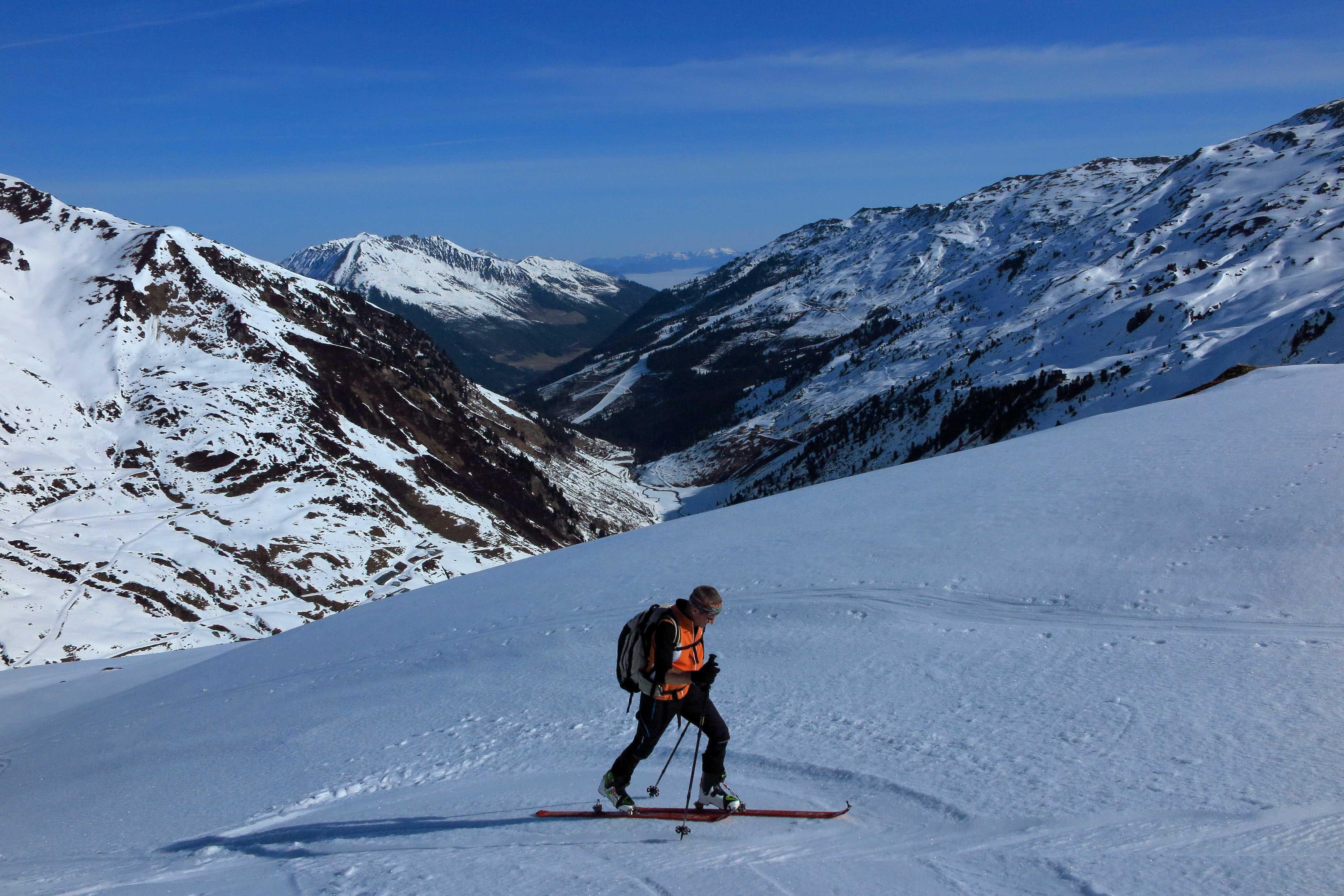 Von Hochfügen (1490) über die Pfundsalm und das Sidanjoch zum Roßkopf (2576). Abfahrt über NO-Seite zurück.