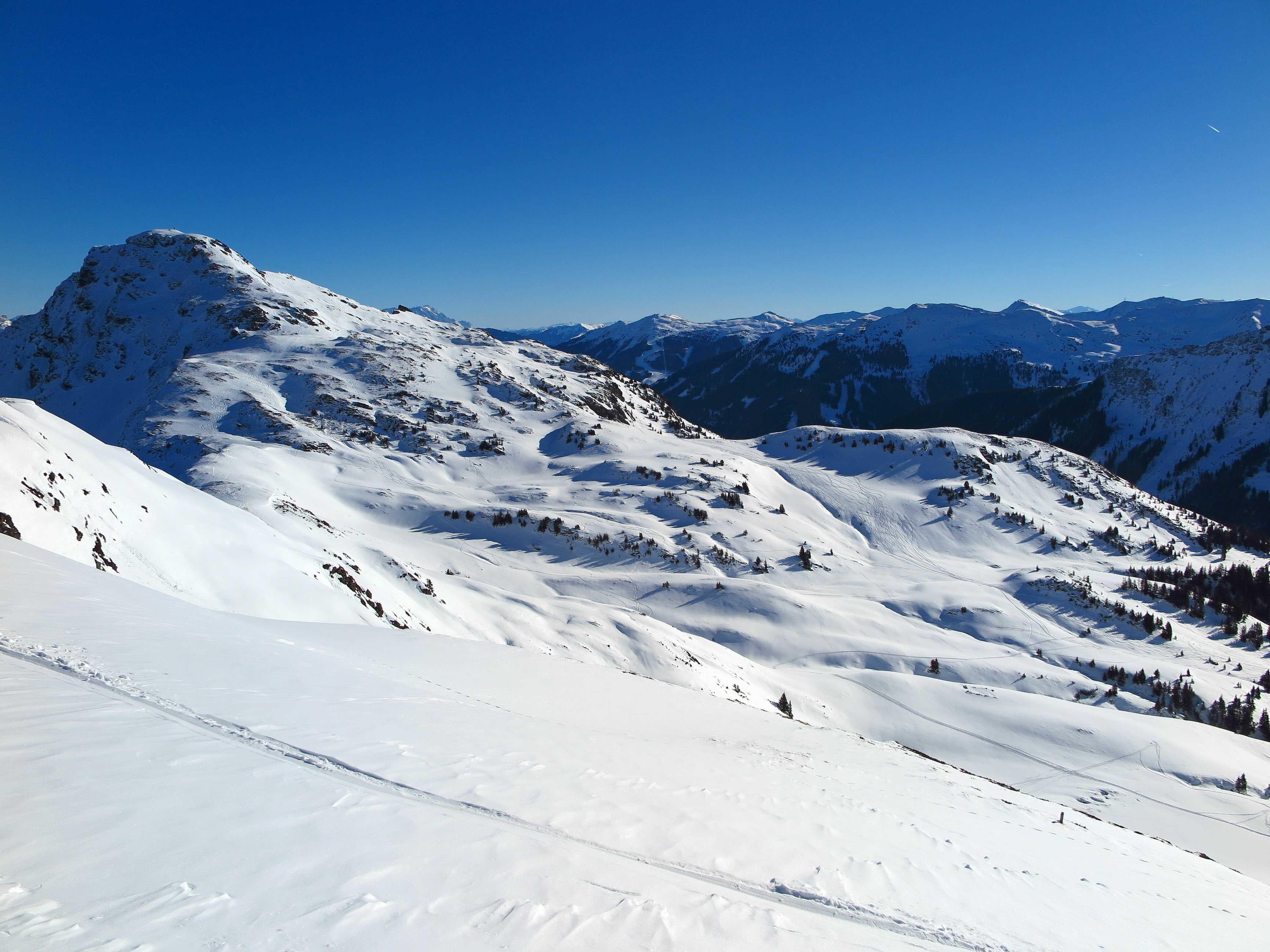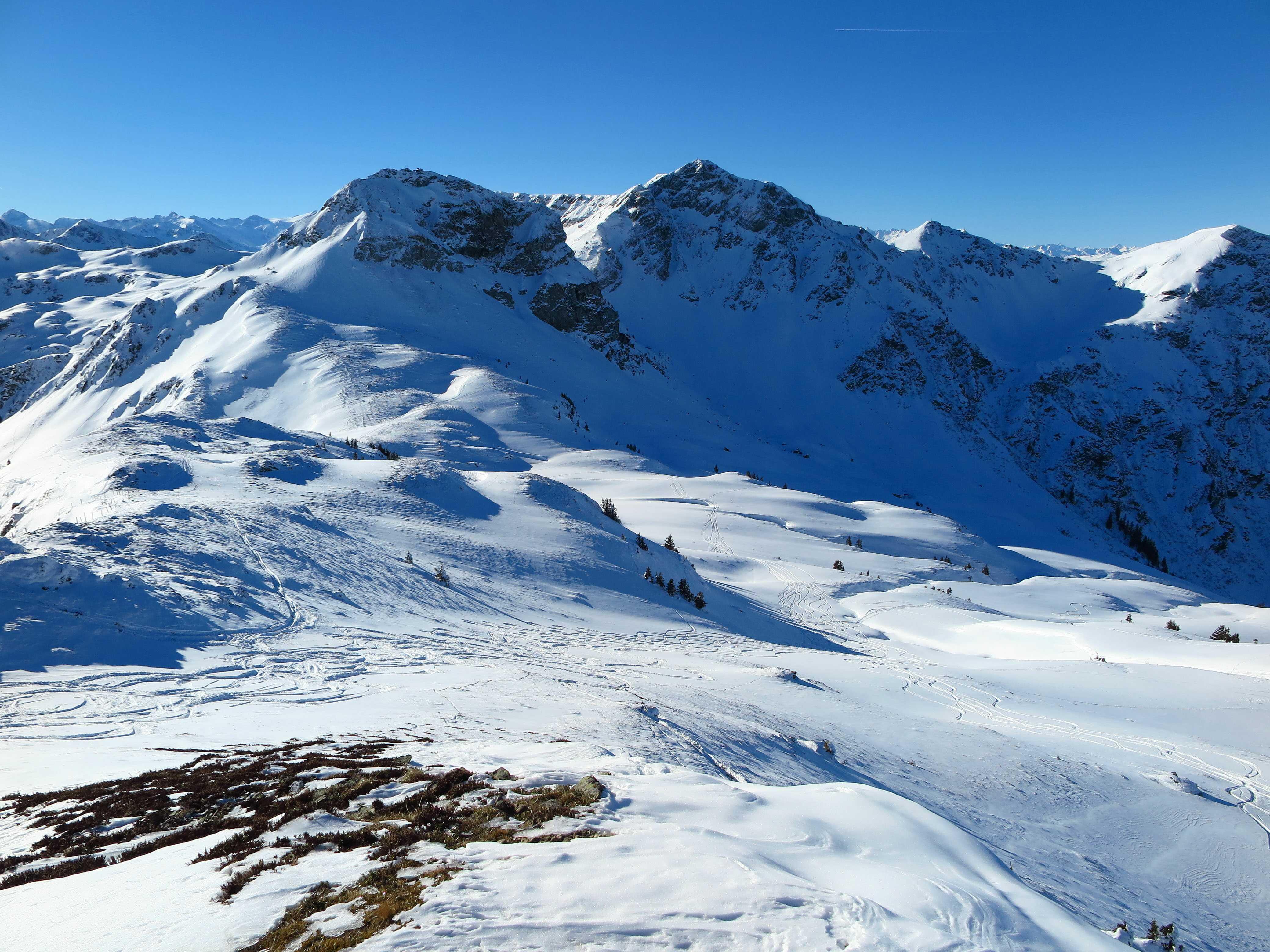 Vom Wildpark-PP (1045) über die Brachofenbachalm zum Hahnenkampl (1812) und weiter über den Rücken nach Süden auf den Rauber (1972) und Saalkogel (2006). Abfahrt direkt in den Talschluss des Wildalmgrabens (1450) und Wiederanstieg über Staffalm zum Oberreiter Joch (1910). Abfahrt über die N-Hänge wieder in den Talschluss. Weils so schön war Wiederanstieg Richtung Kornbichl bis unter die Felsen des Staffkogels (ca. 1960).