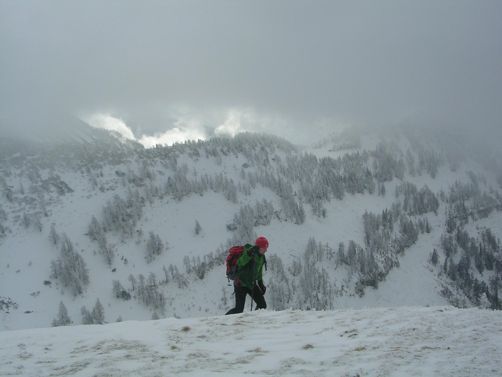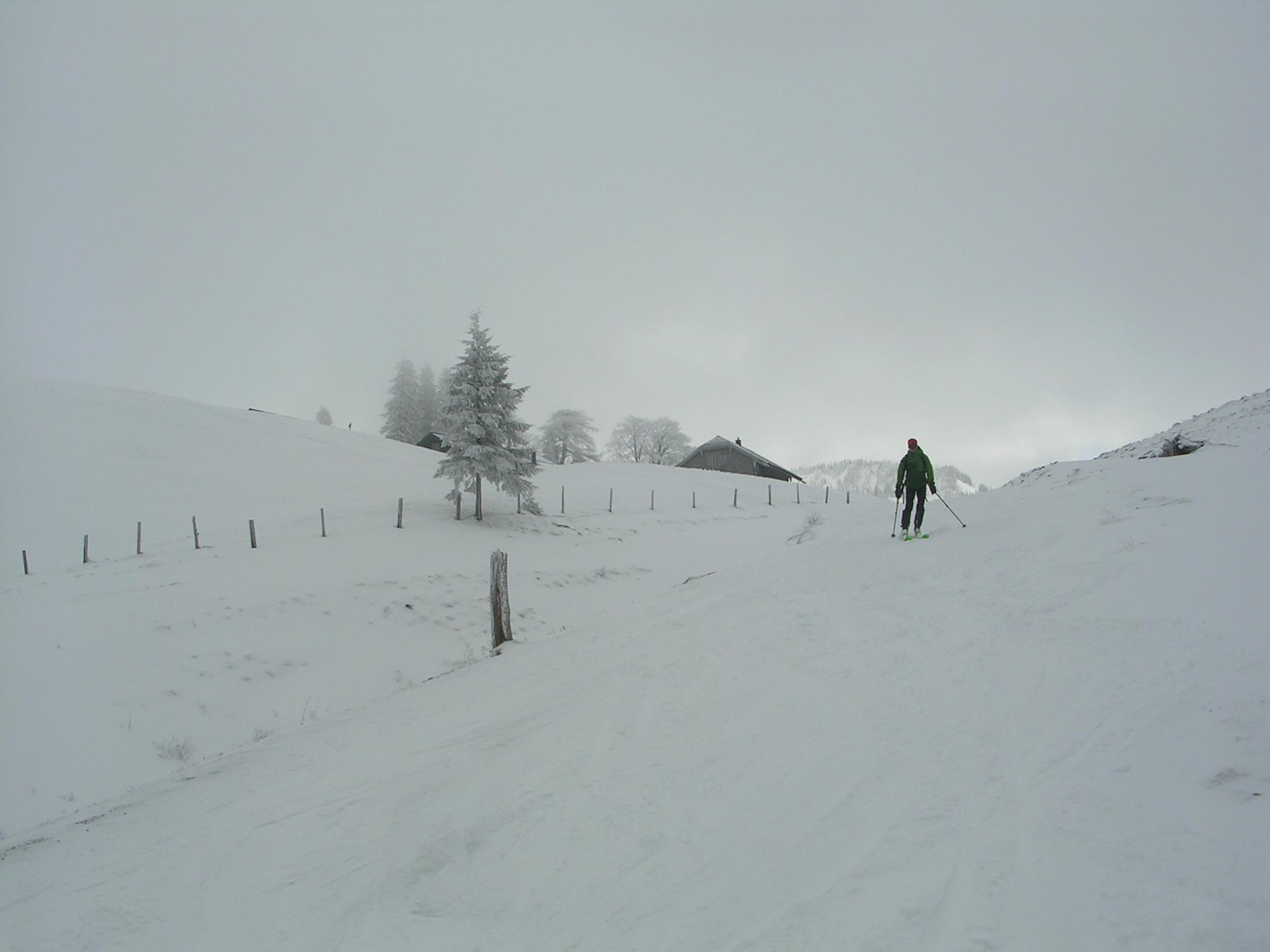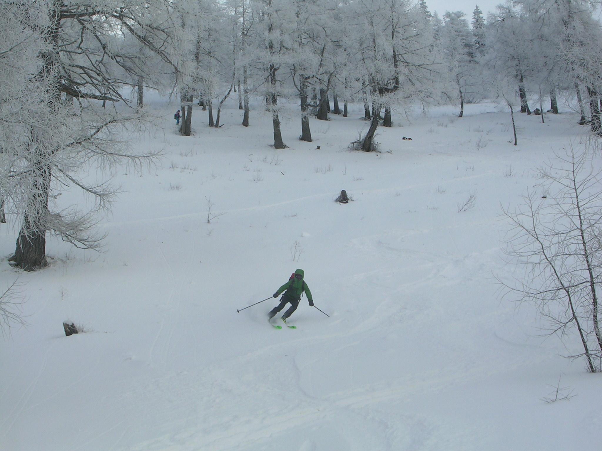 Interessant, mit wie wenig Schnee man eine schöne Tour machen kann. Wenn man ein wenig auf versteckte Äste und Steine aufpasste, konnte man eine durchgehende Pulverabfahrt genießen.