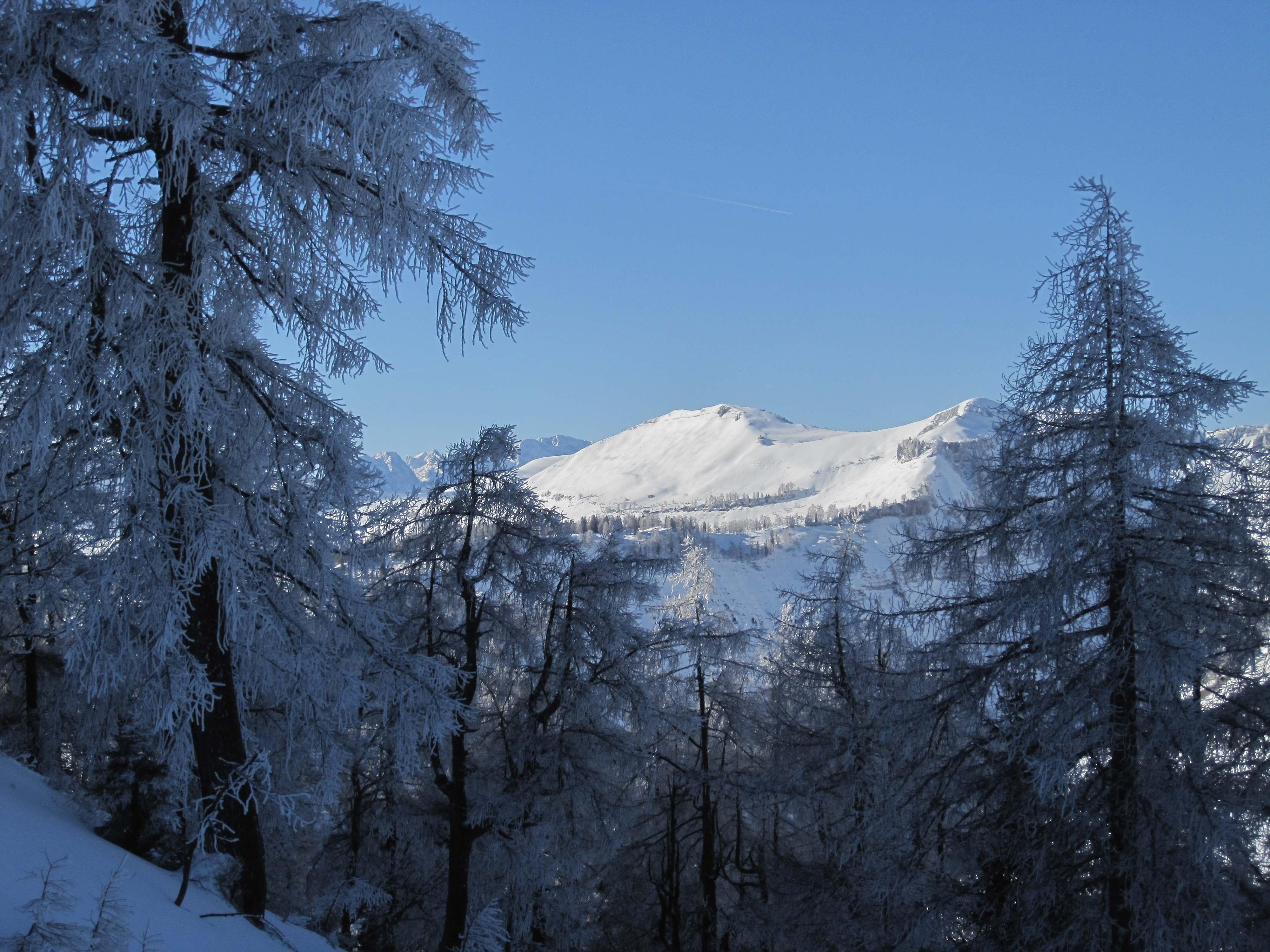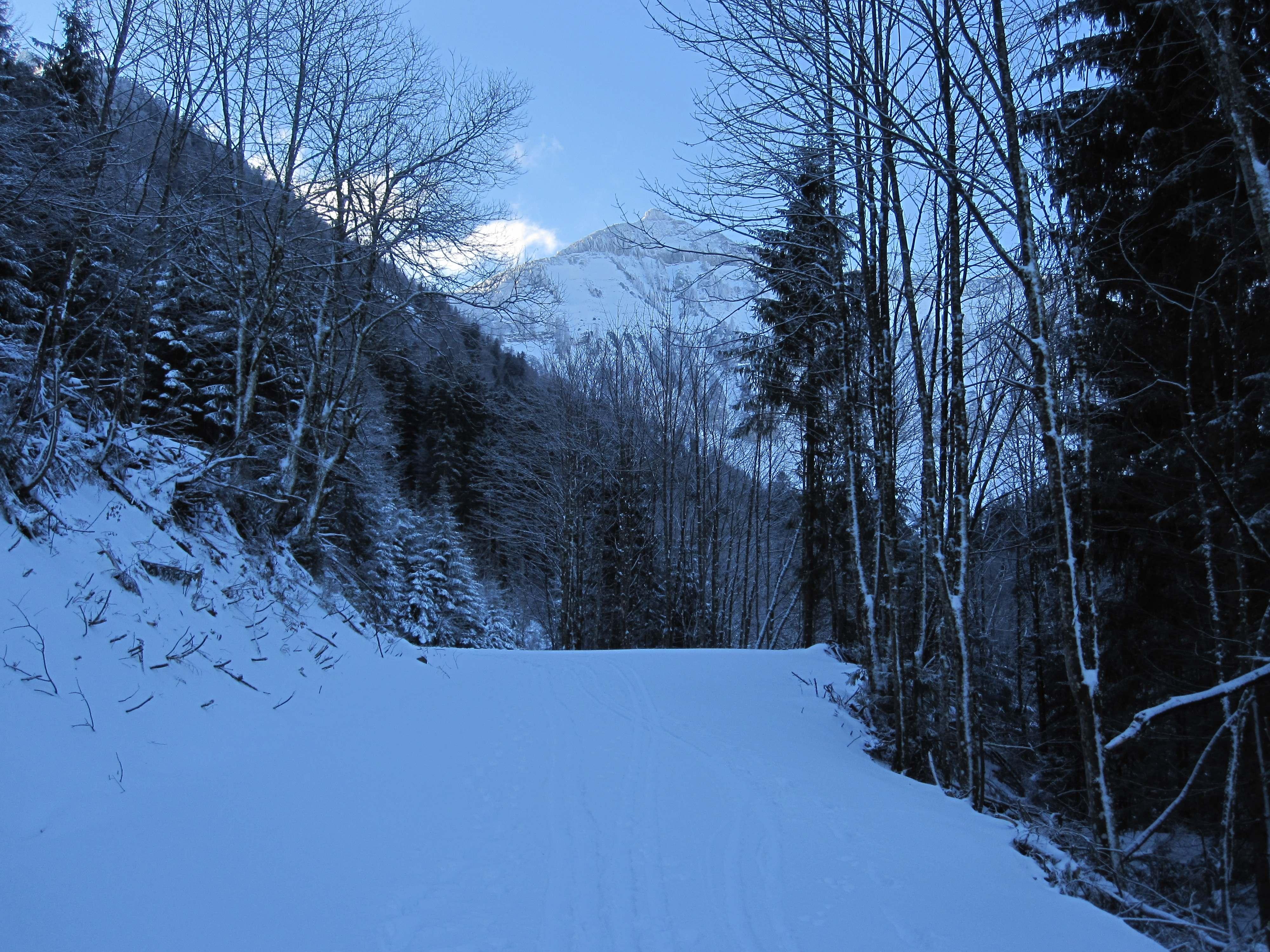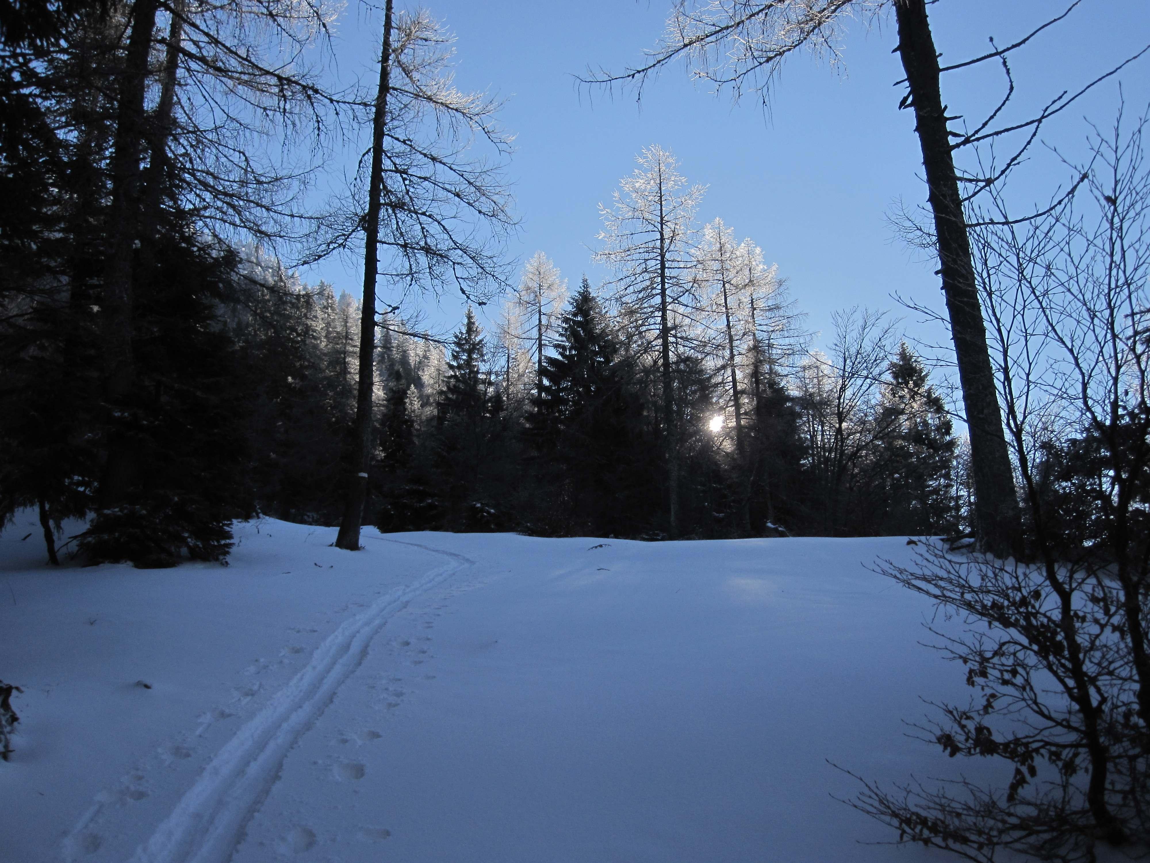 Ganz passabel sind die Verhältnisse am Hohen Zinken. Die Forststraße ist mit 20 cm gut eingeschneit u. ein hinunter Schwingen gut möglich.