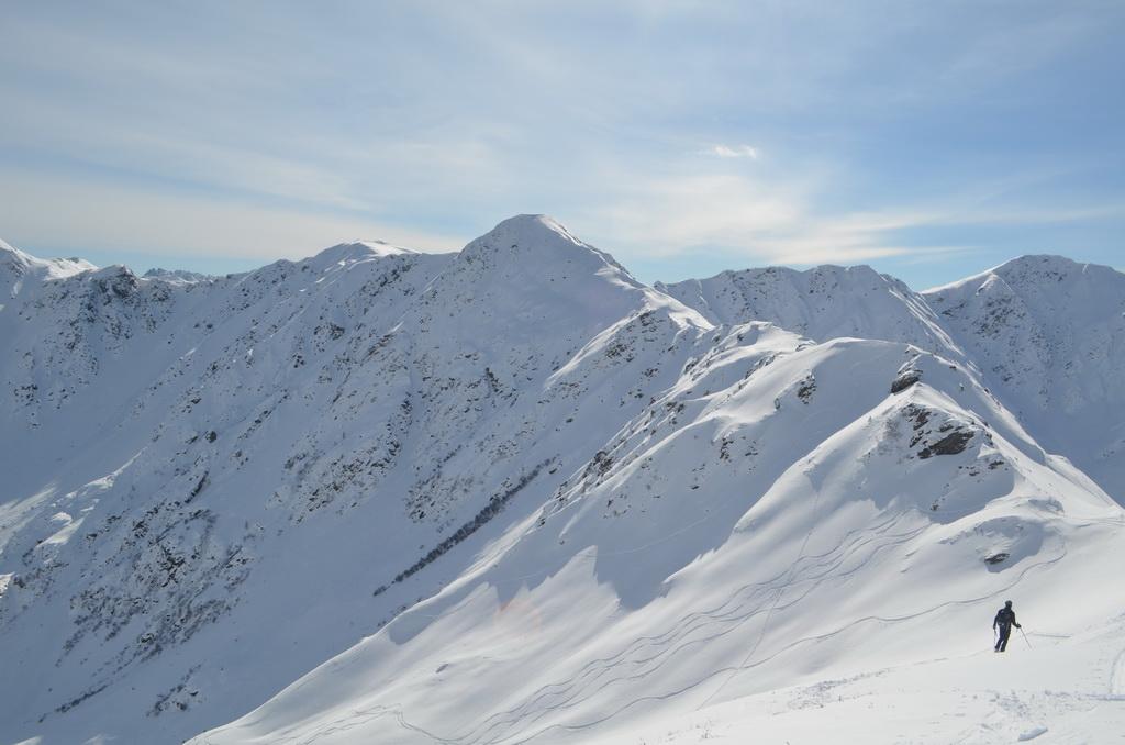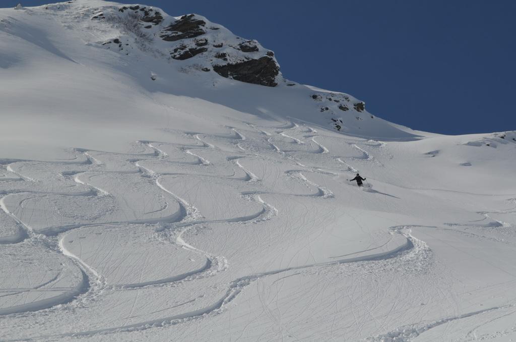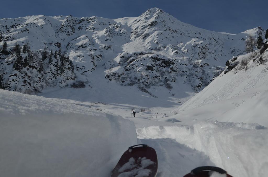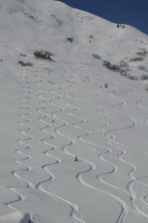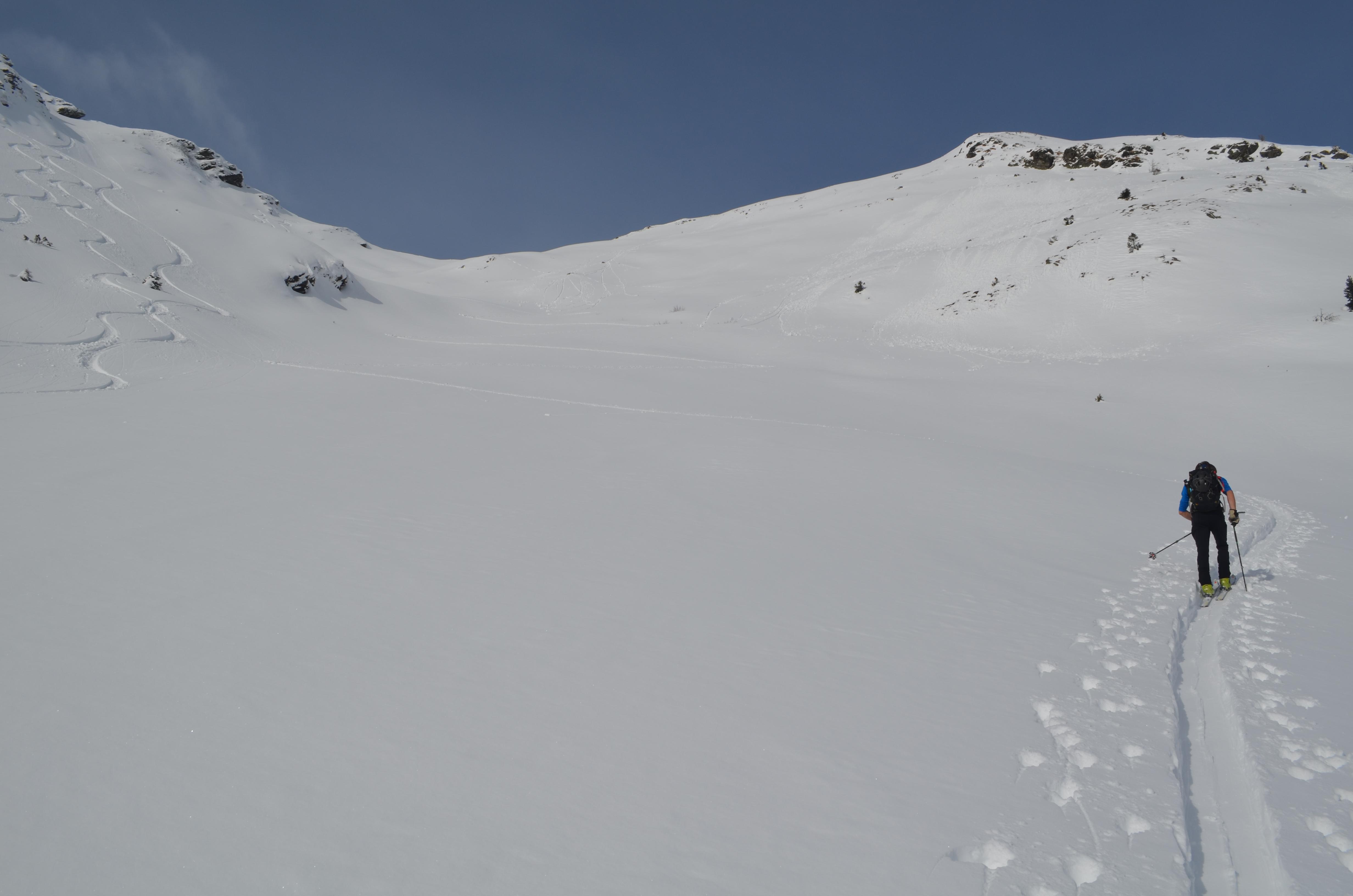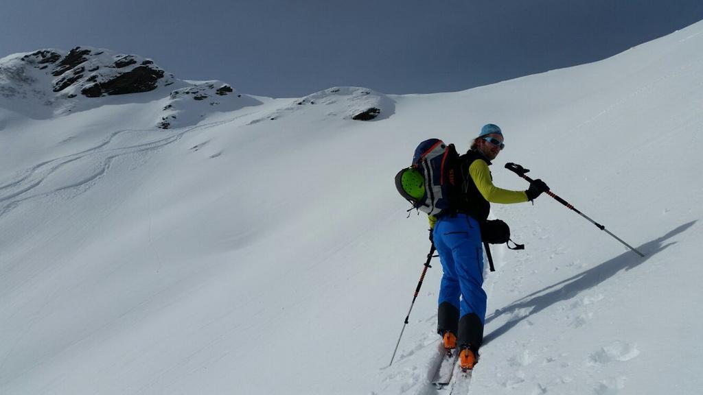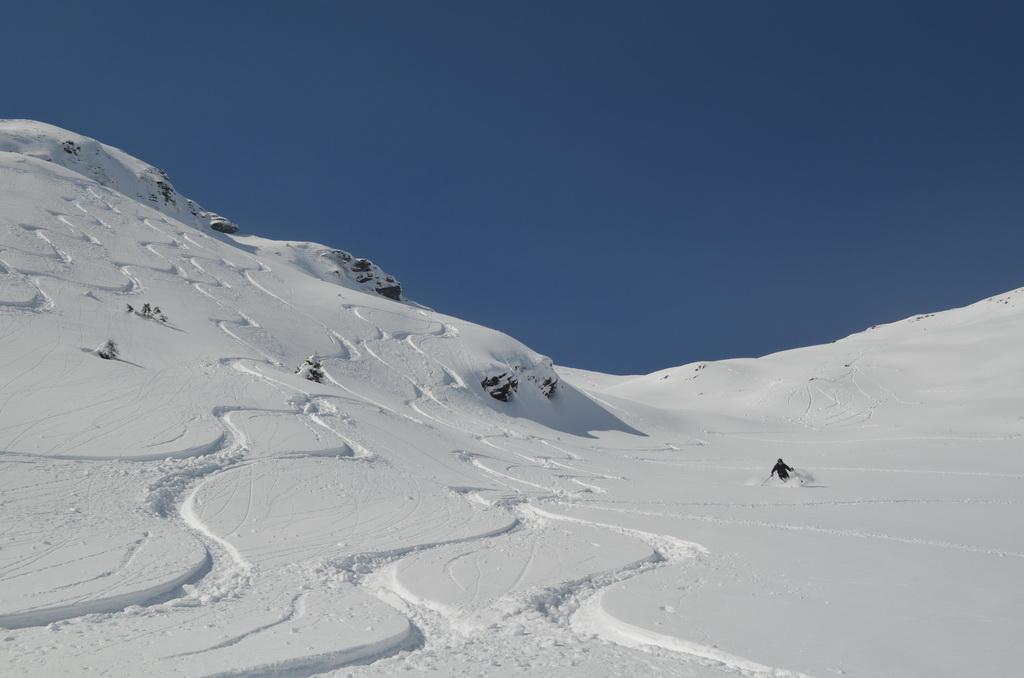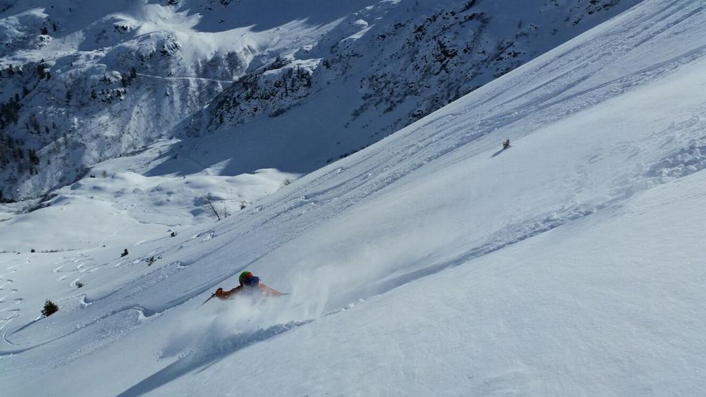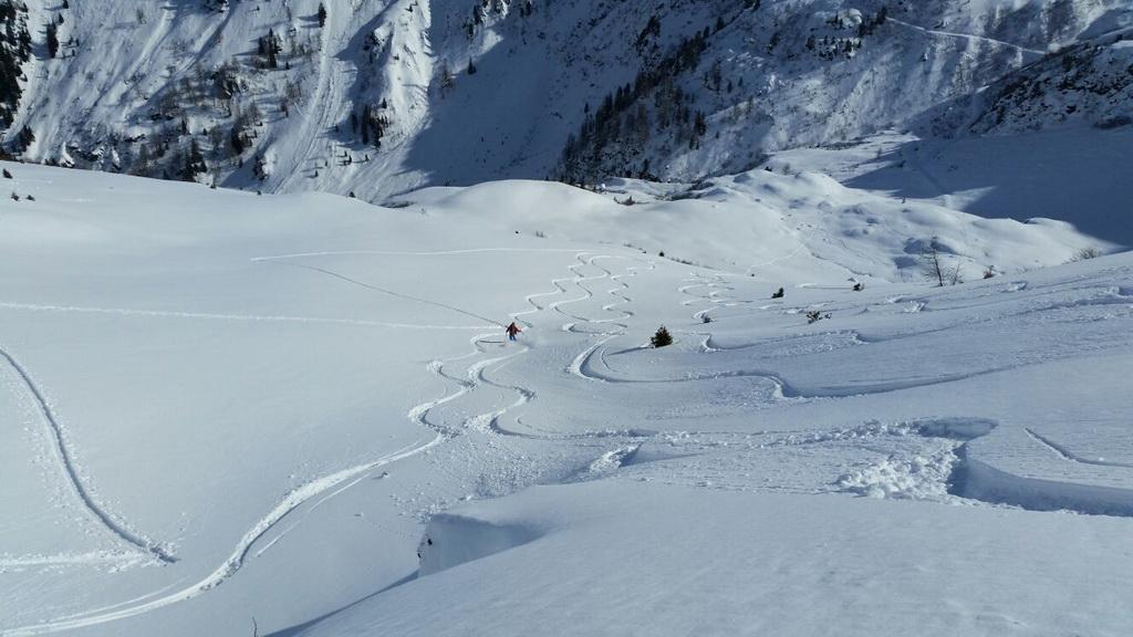 Vom Tal bis zum Gipfel je nach Ausrichtung perfekter leicht gesetzter Pulver, bzw in der Sonne bereits ein leichter Harschdeckel. In steilen W- NW ausgerichteten Hängen konnte man einige kleine Rutscher erkennen. Mit dem morgigen Wärmeeinbruch wird sich die Lage voraussichtlich aber wieder komplett ändern.