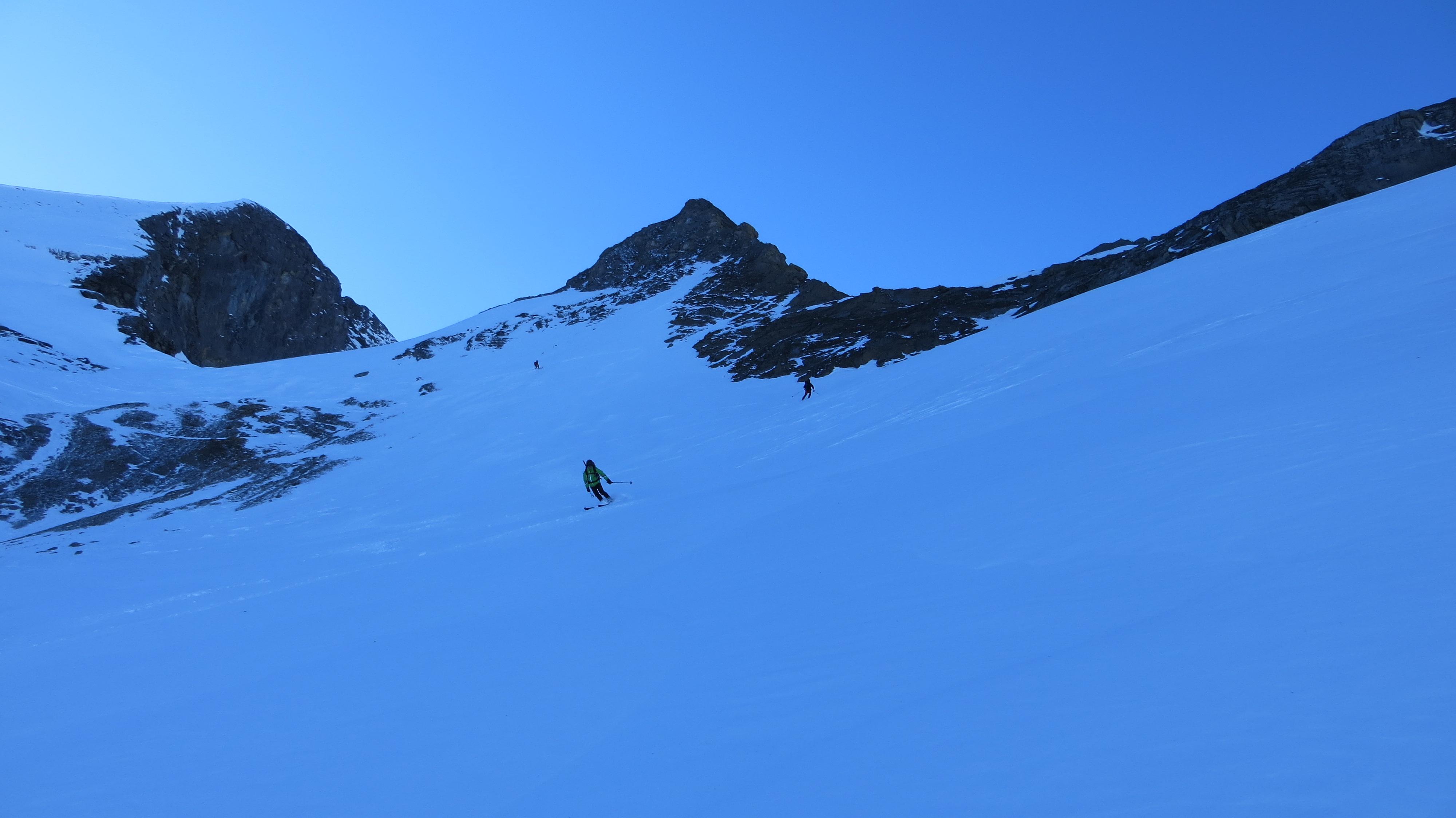 Von Fusch weg geht's mit Ski, es ist pickelhart bis zum Zwingkopf. Am Grat sind Steigeisen ratsam. Auch in der Abfahrt ist noch alles hart, auch ganz links findet sich kein Firn, die Sonne kann noch nicht lange genug einwirken. Trotzdem eine grandiose Tour [mehr]