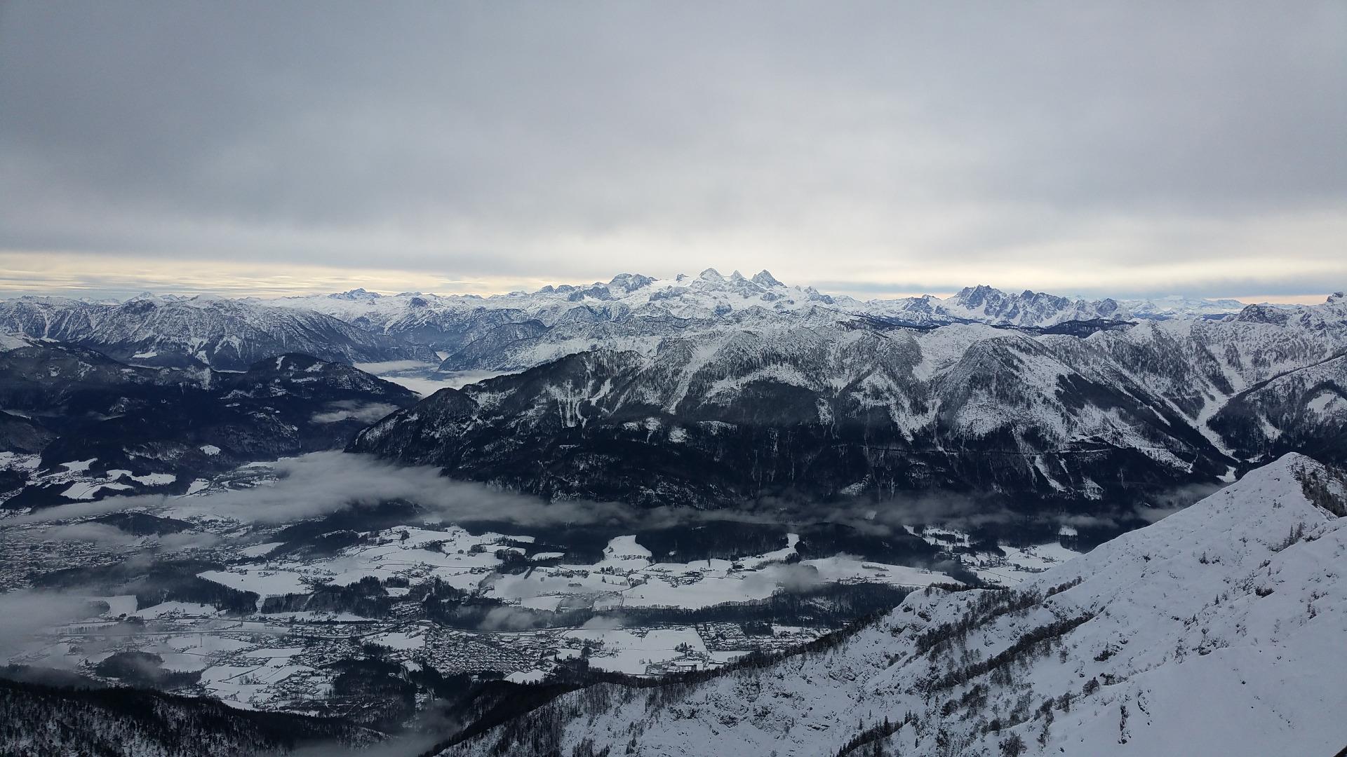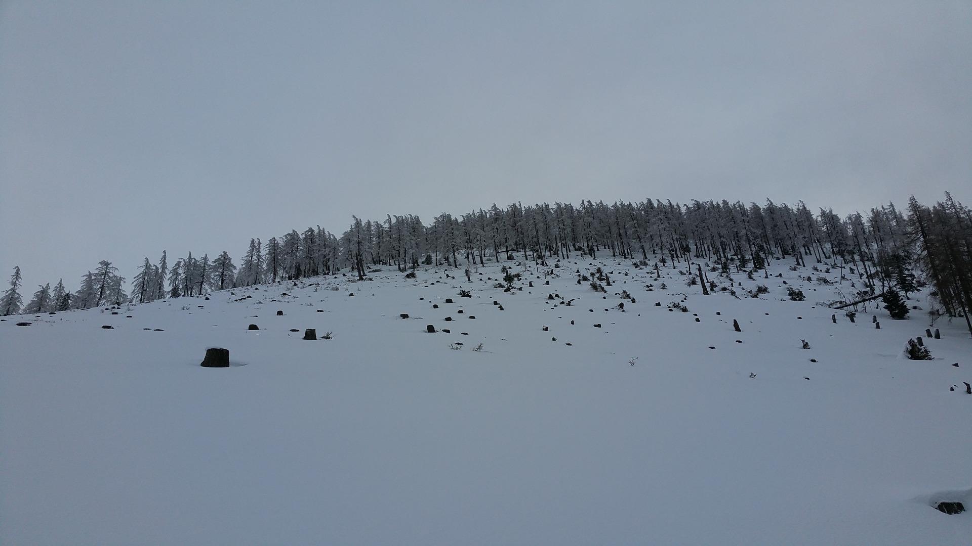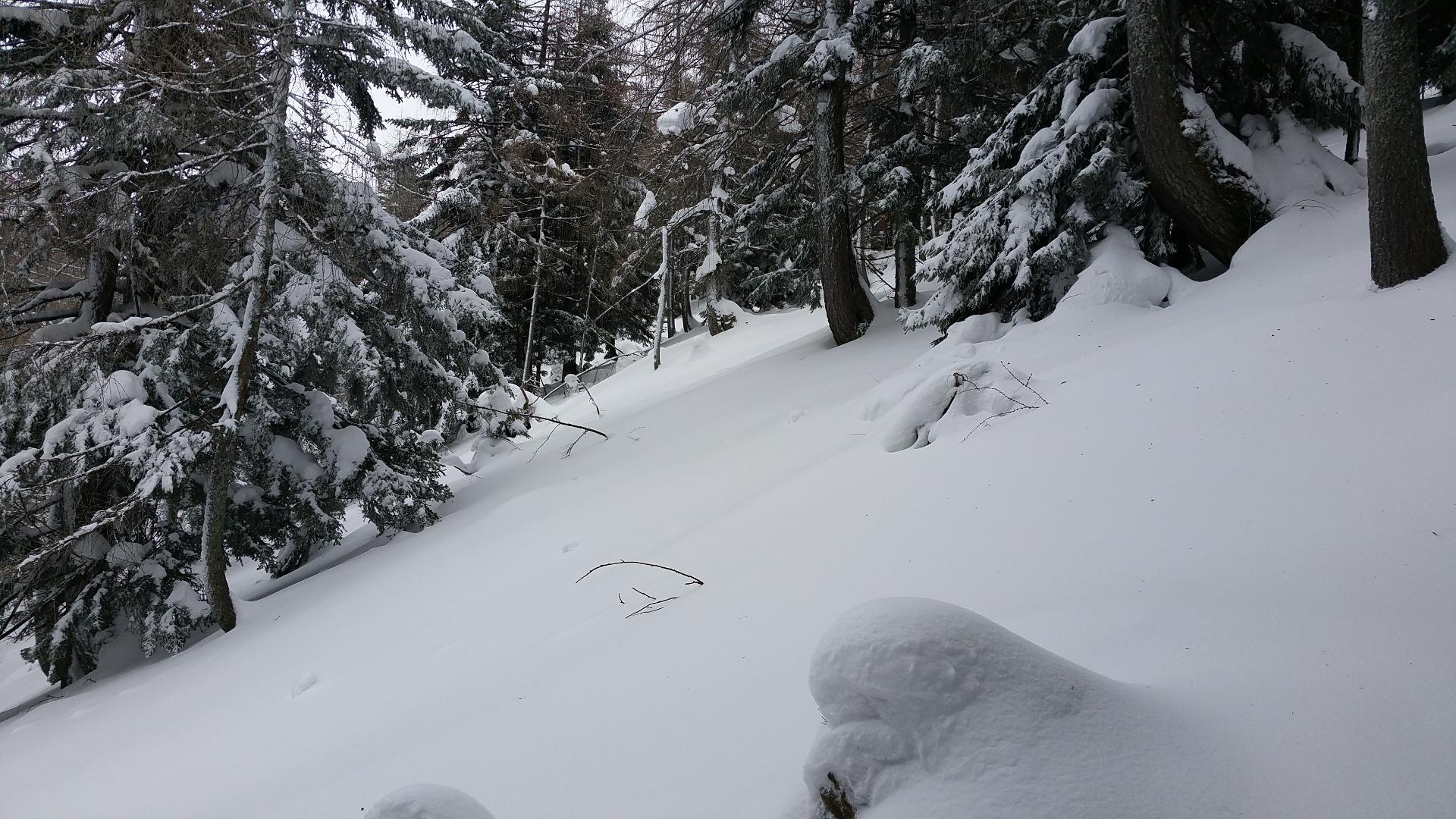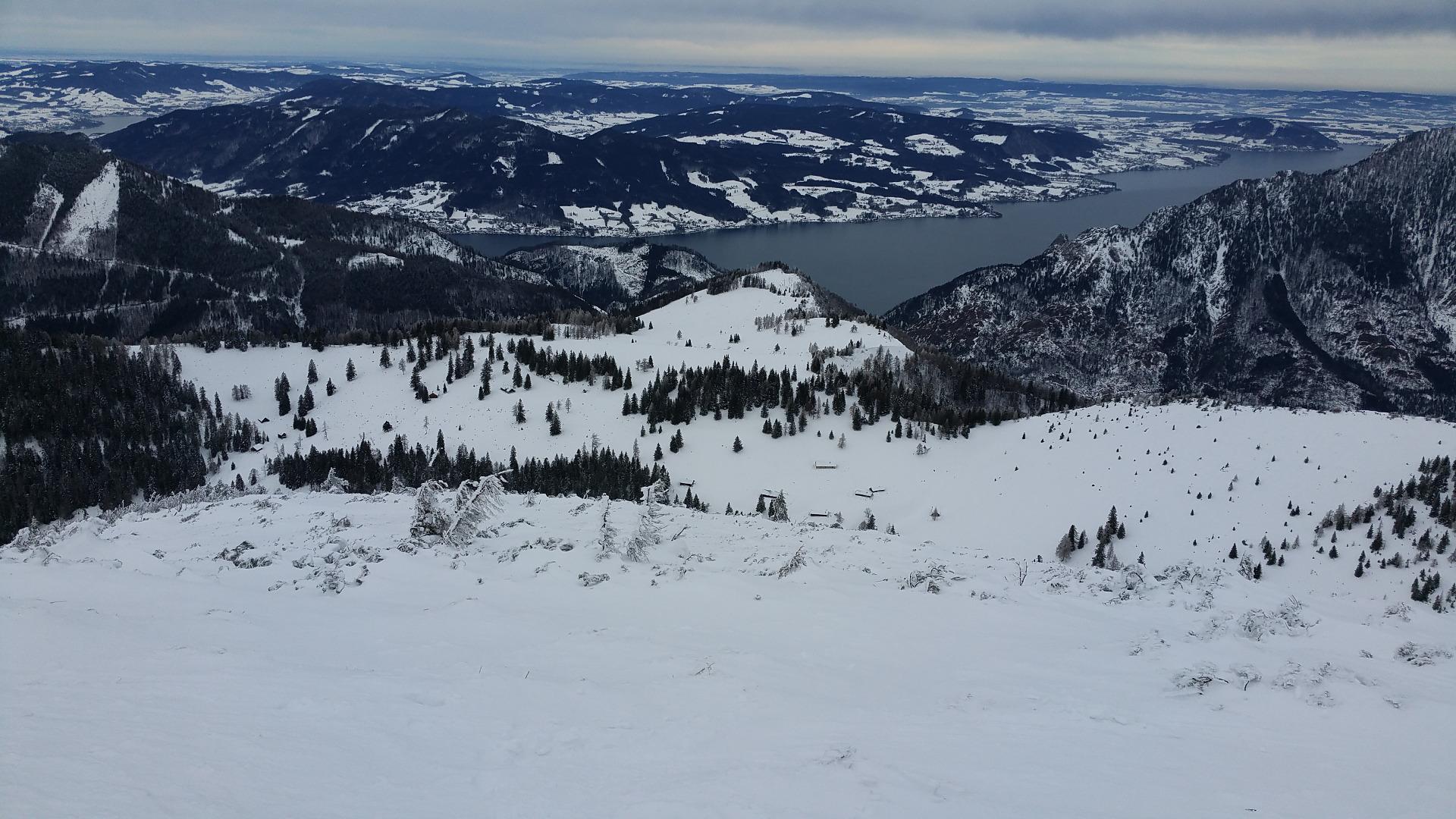 Vom Branntweinhäusl über den Kienbachgraben und vorbei an der Leonsbergalm auf den Gipfel. Abfahrt über Bergeralm und der Forststraße folgend über Lippenalm bis nach Rußbach. Schnee recht bescheiden. Im oberen Teil des Gipfelhangs viele Latschen. Durchgehend Bruchharsch.