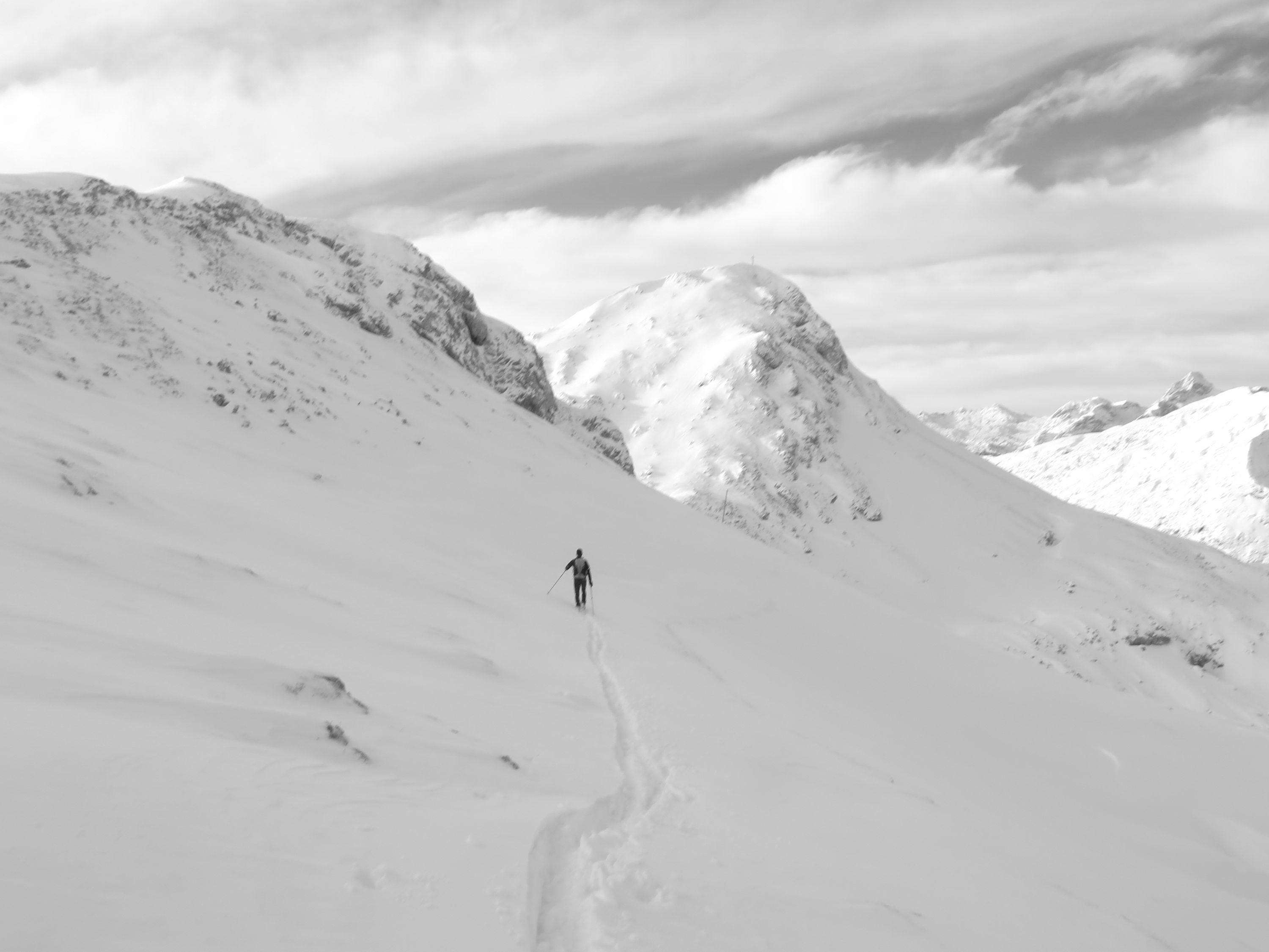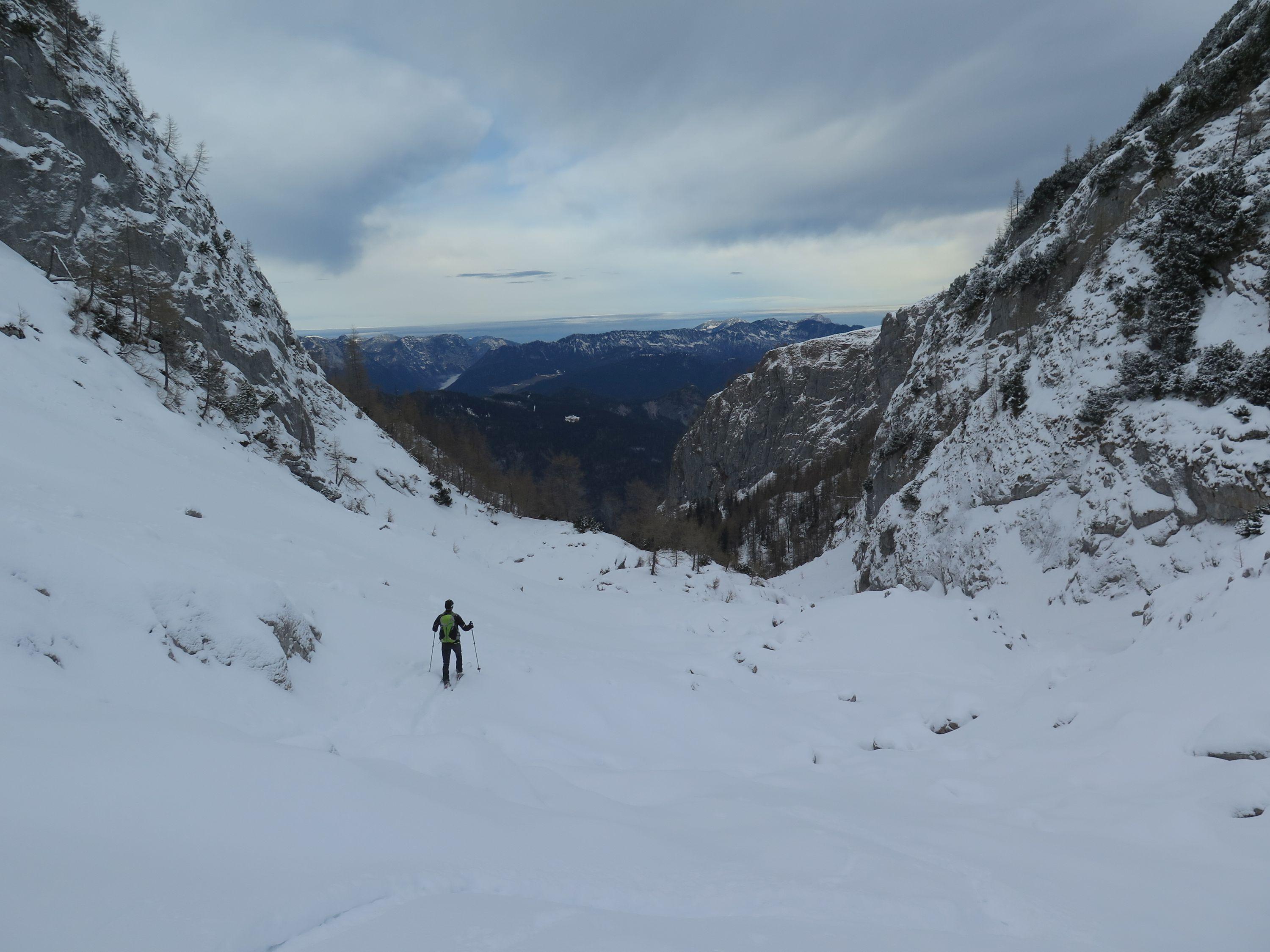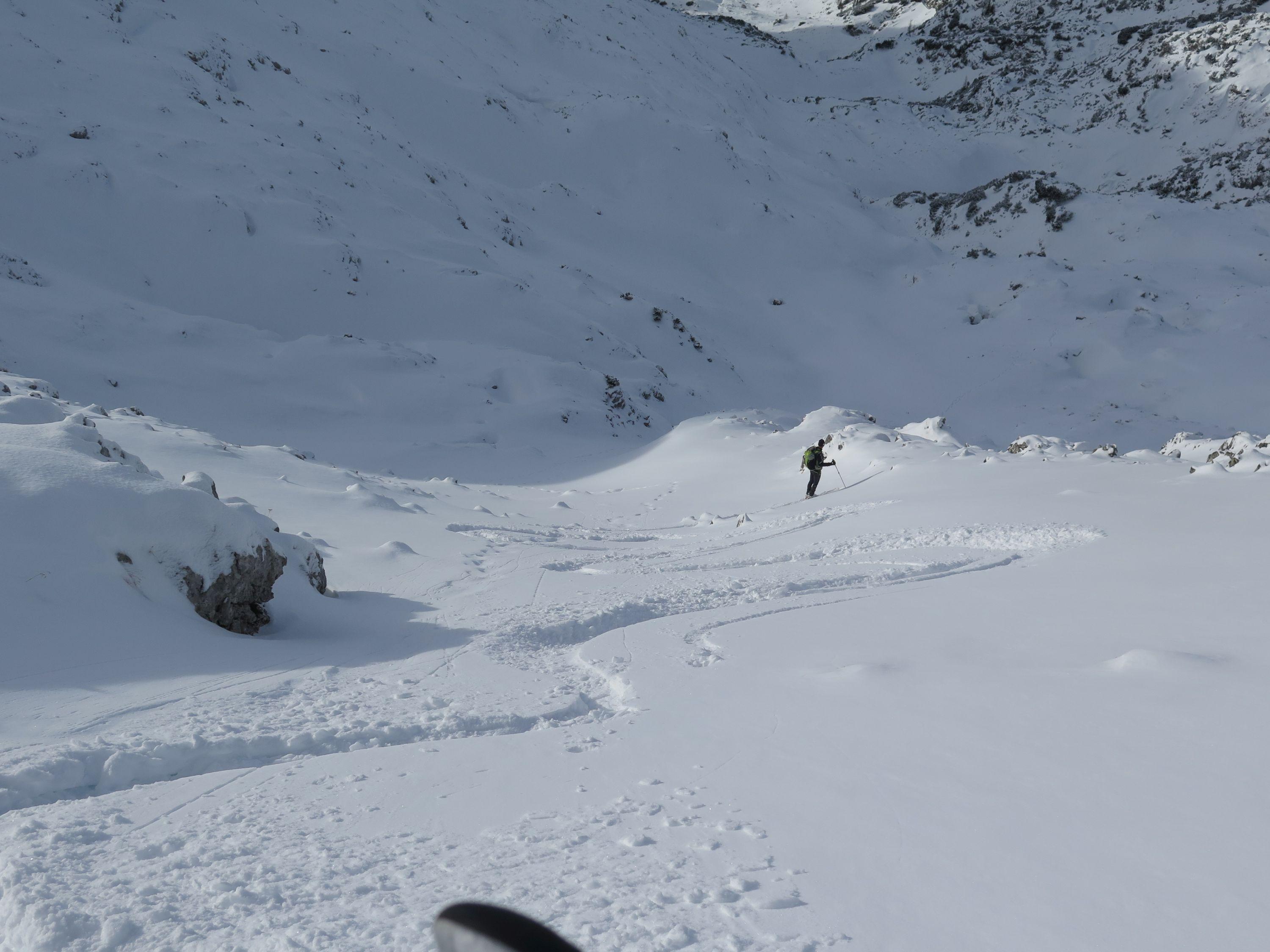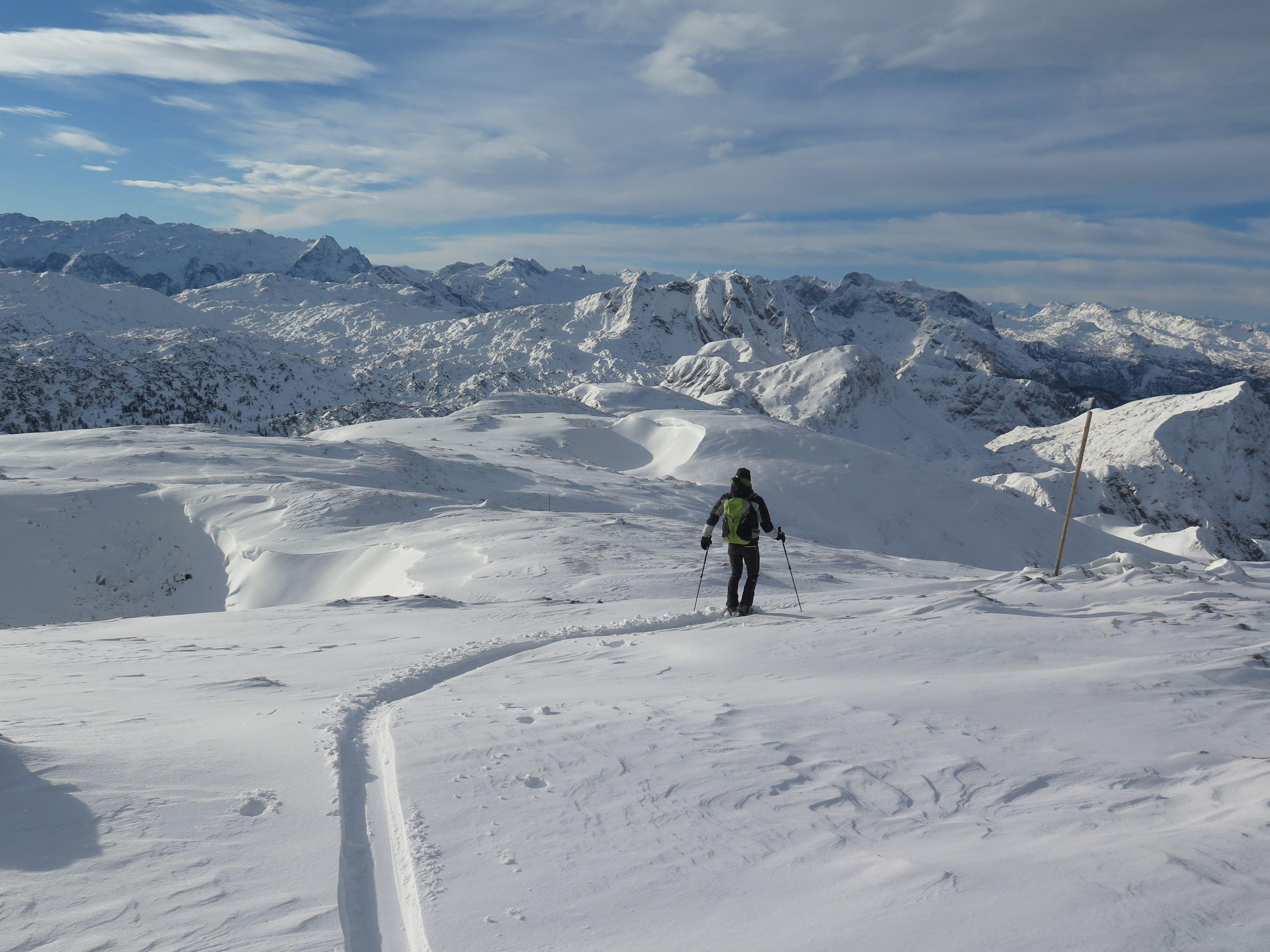 Aufstieg über Königsbergalm-Schneibstein-Windschartenkopf-Seeleinsee-Stiergraben-Priesbergalmem. Ab Abzweigung Königsbachalmen bis zum Schneibsteingipfel bis auf kurze Skitragestelle mit Fellen aufgestiegen.Im Kammbereich bis zum Windschartenkopf teilweise lebhafter Wind und Einwehungen,ab Abfahrt Windschartenkopf bis mitte Stiergraben noch Pulverschnee und keine Windspuren sichtbar,der Rest bis zum Wiederanstieg Jennermittelstation(Jennerpiste zur Zeit unbefahrbar) war bruchharschtig,durch sehr vorsichtige Fahrweise waren keine größeren Schäden am Belag feststellbar.Rudi danke für den schönen Tag!