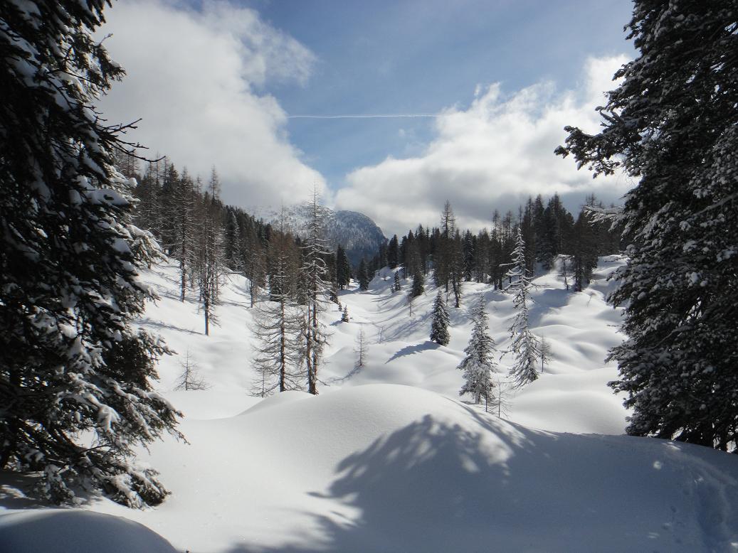 von Gröbming 'Lend' bei der ehemaligen Kneippanlage durch die Öfen (derzeit eher eisig) in Richtung Viehbergalmen. Nach den Öfen beginnt derzeit ein Winterwunderland mit schönem 15 - 40 cm tiefem lockeren Pulverschnee auf harter Unterlage. An den Viehbergalmen arbeitet man sich durch praktisch unverspurtes Gelände nach Nordosten durch die Gräben und Hügel immer durch lichten Wald. Der Gipfel ist schwer zu finden aber die Tour lohnt sich alleine wegen der Landschaft.