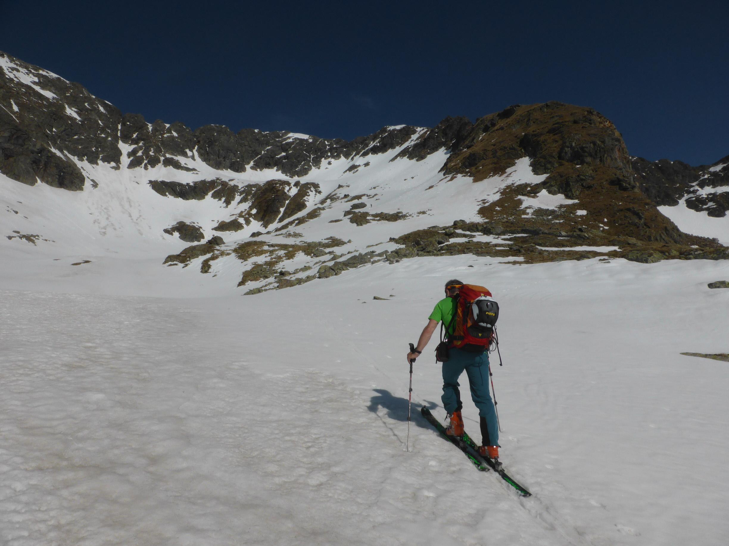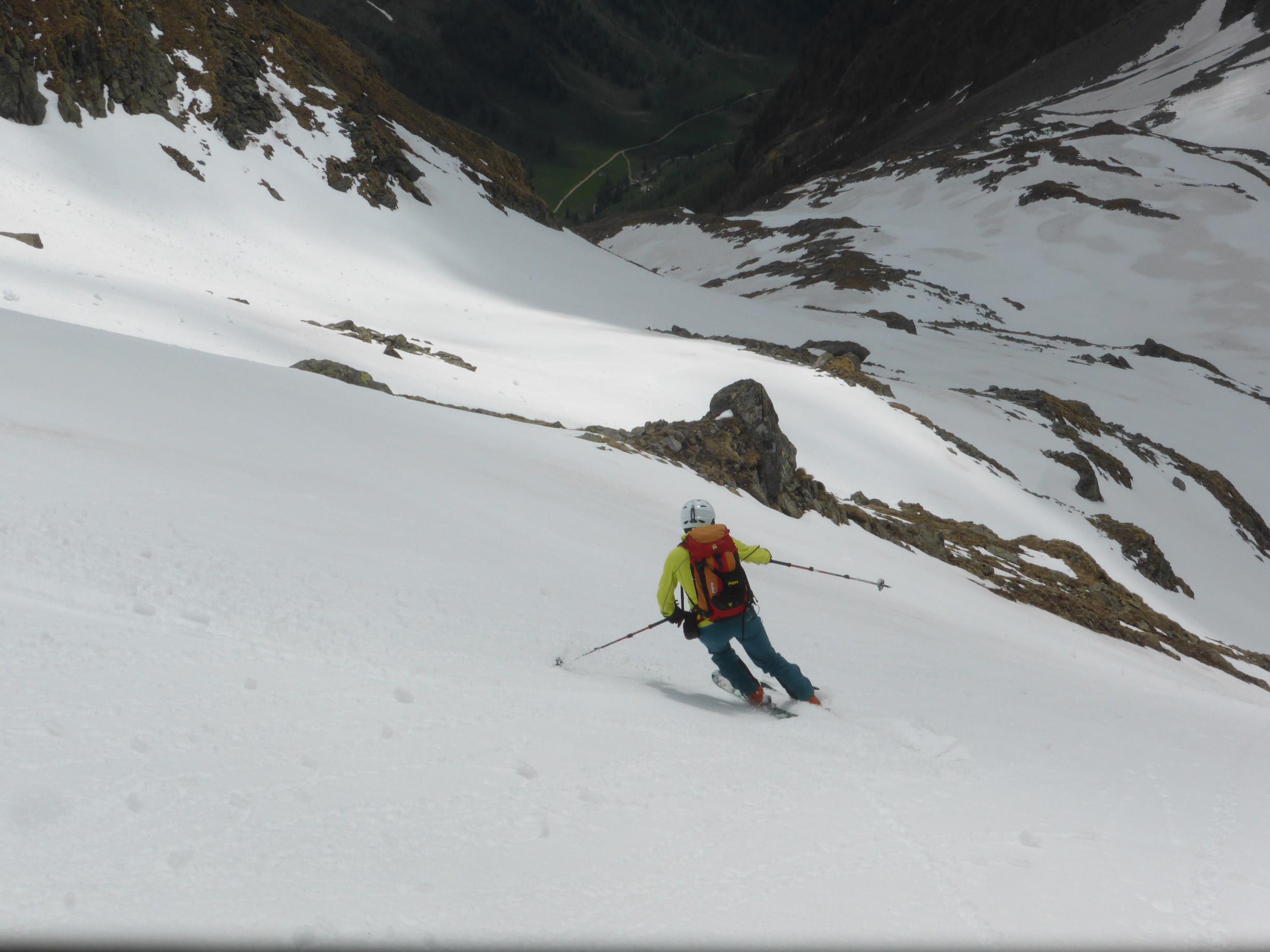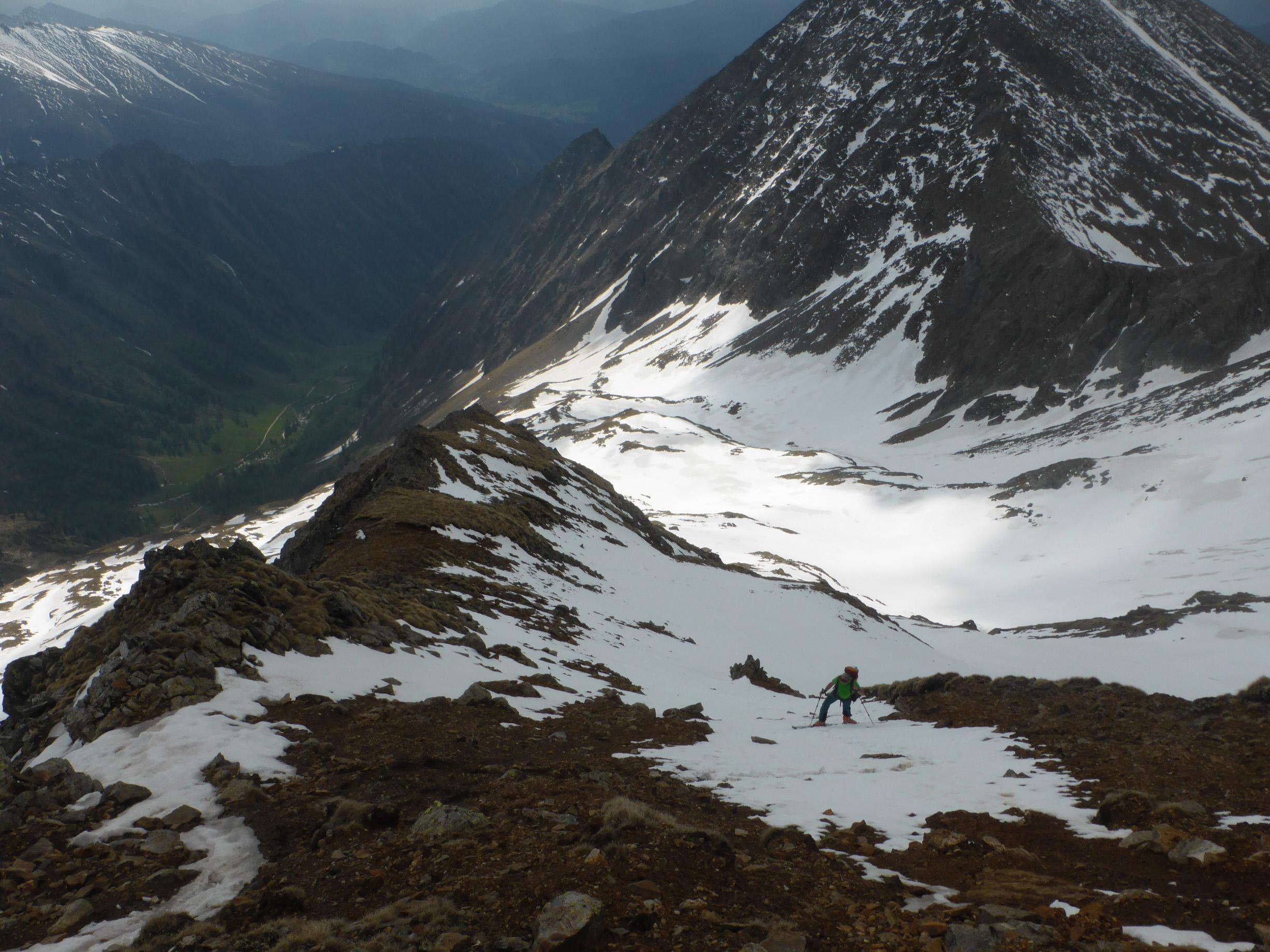 Immer noch beste Tourenbedingungen ausgehend vom Talschluss im Krakauer Prebertal; der Neuschneezuwachs vom Pfingstwochenende ist bestens umgewandelt und hat zusammen mit dem Sonnenschein der Vortage, dem Regen in der ersten Nachthälfte vor der Tour und anschließender Aufklarung mit damit verbundener Abstrahlung für beste Verhältnisse gesorgt