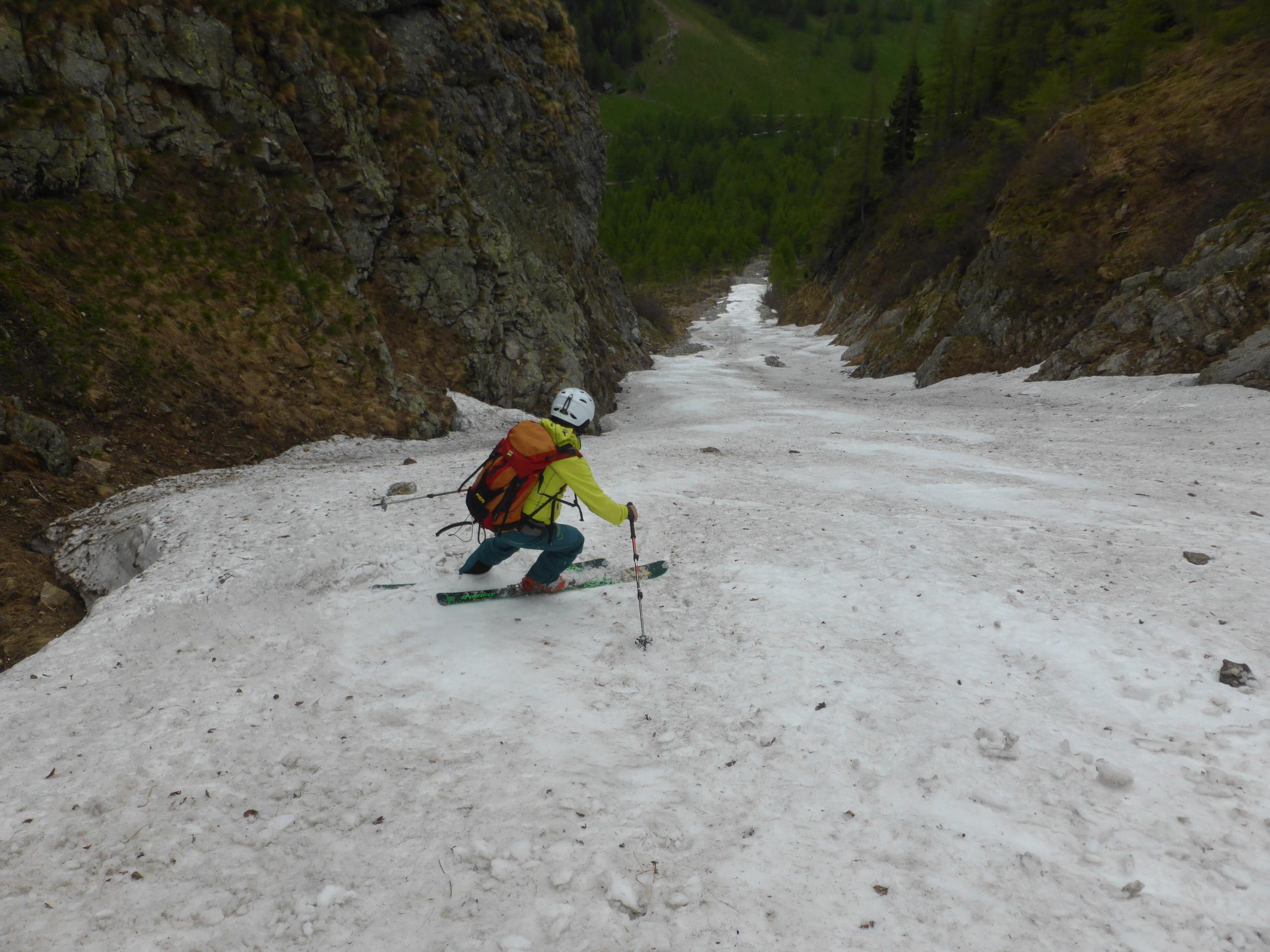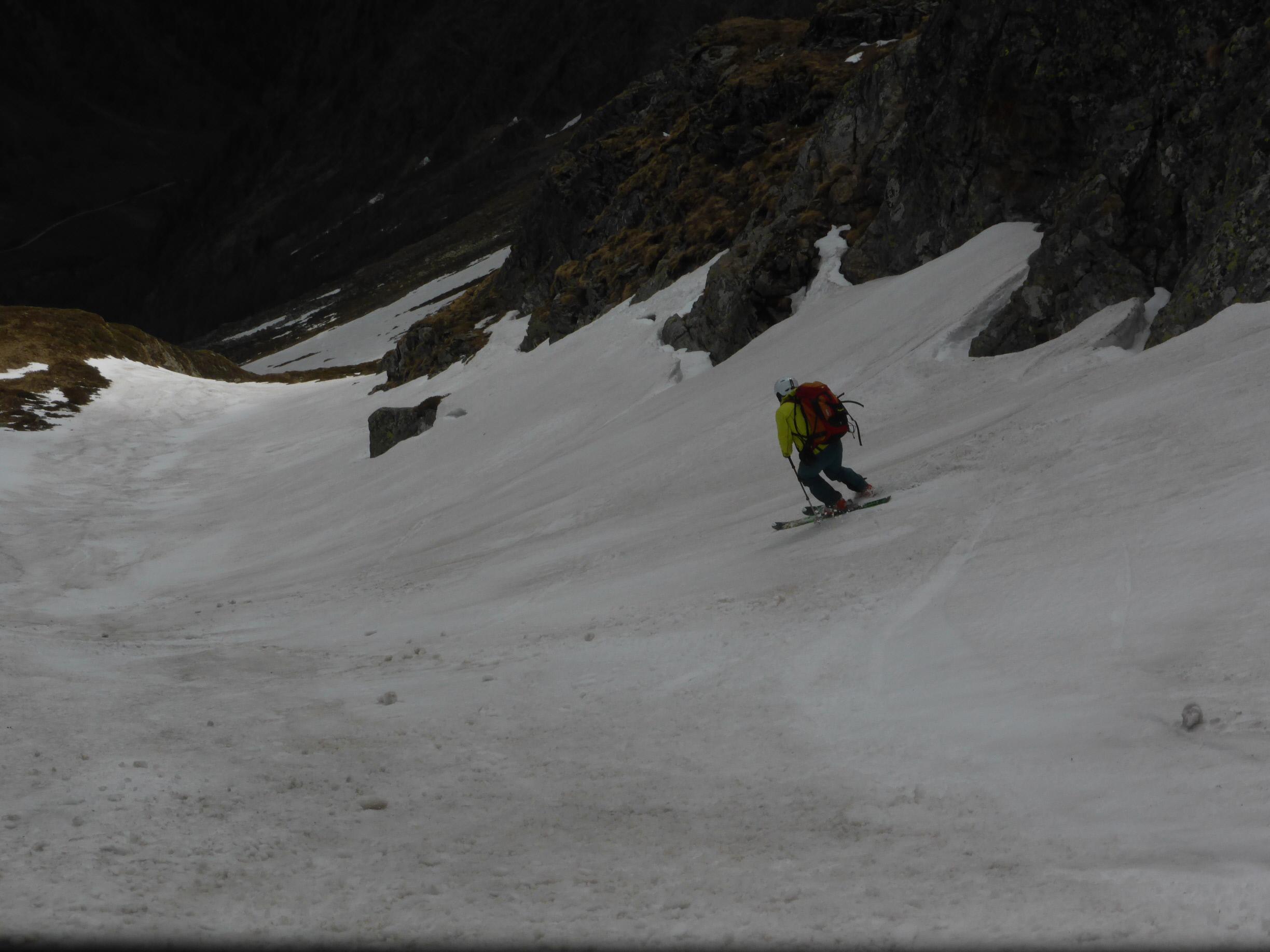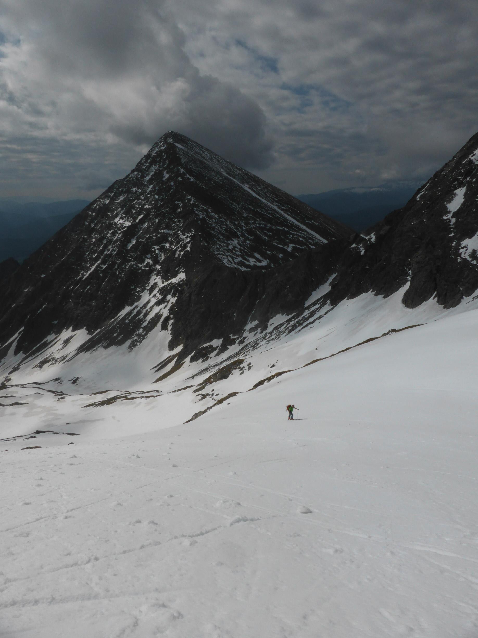 Immer noch beste Tourenbedingungen ausgehend vom Talschluss im Krakauer Prebertal; der Neuschneezuwachs vom Pfingstwochenende ist bestens umgewandelt und hat zusammen mit dem Sonnenschein der Vortage, dem Regen in der ersten Nachthälfte vor der Tour und anschließender Aufklarung mit damit verbundener Abstrahlung für beste Verhältnisse gesorgt