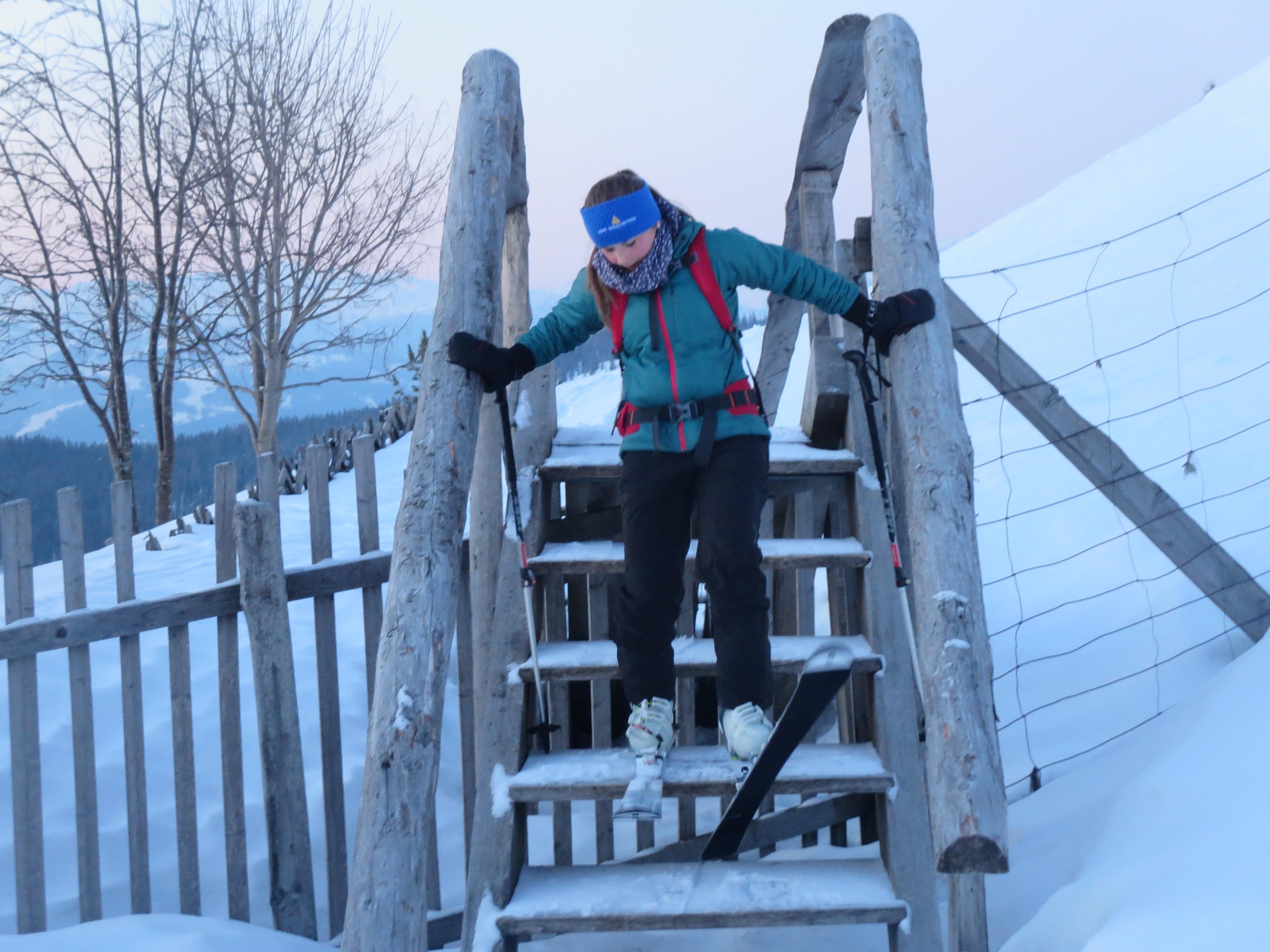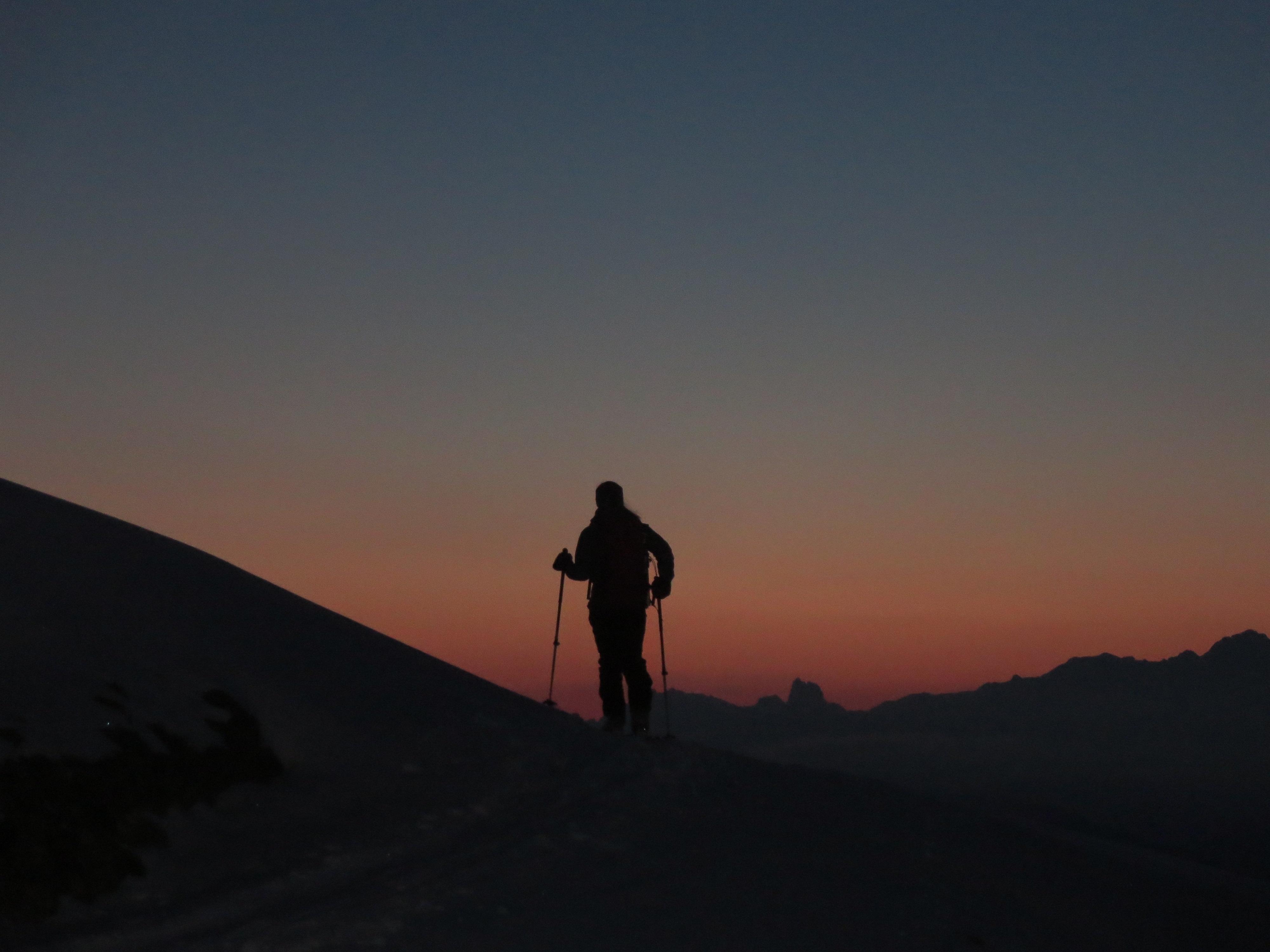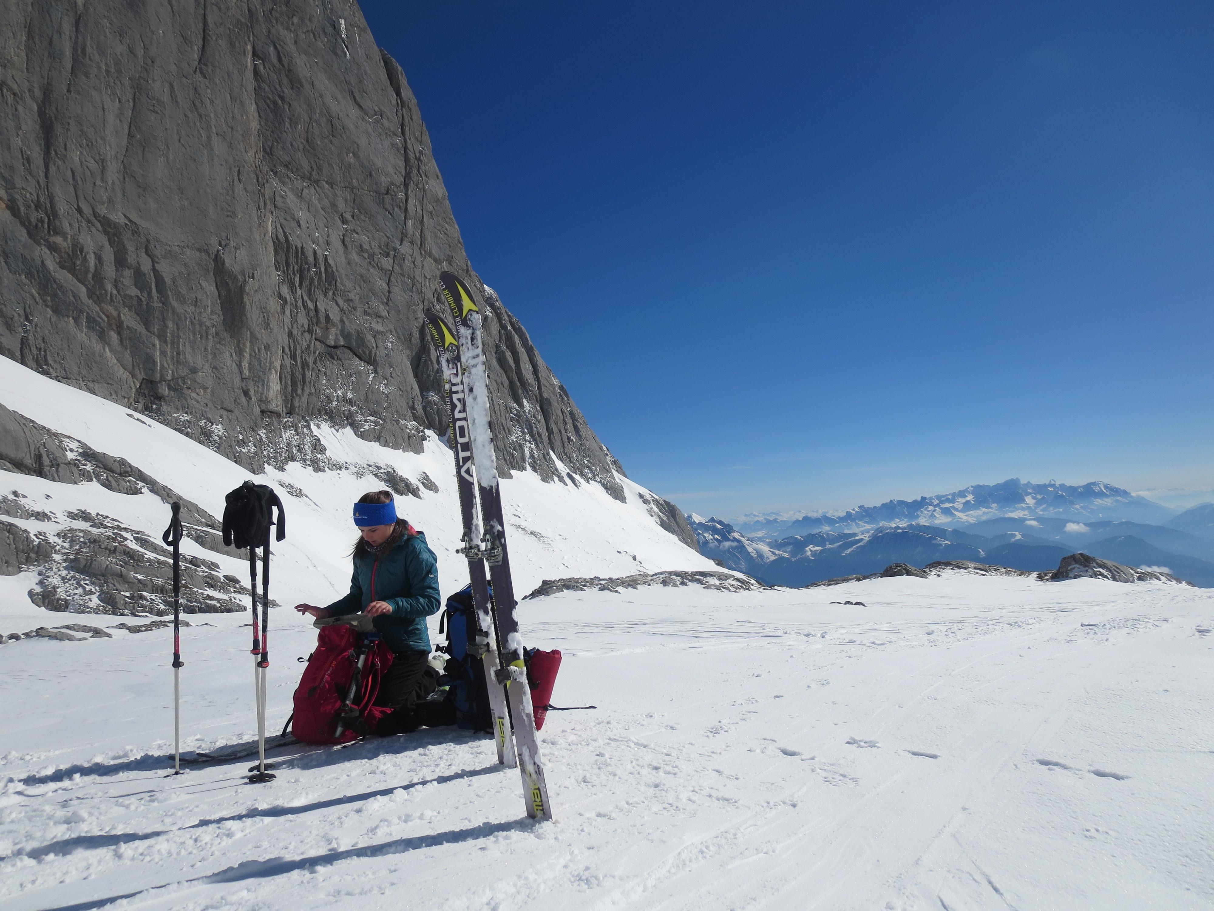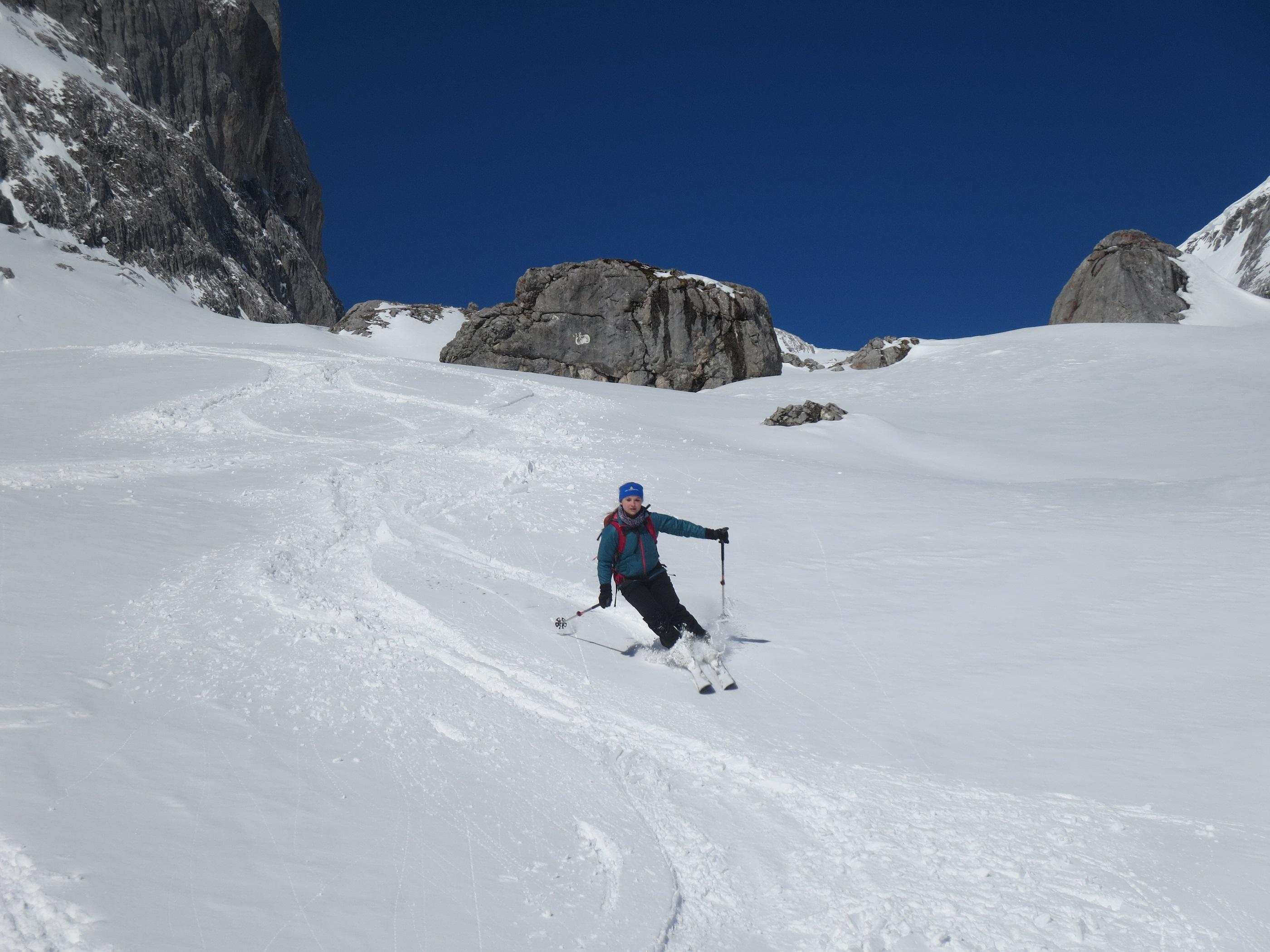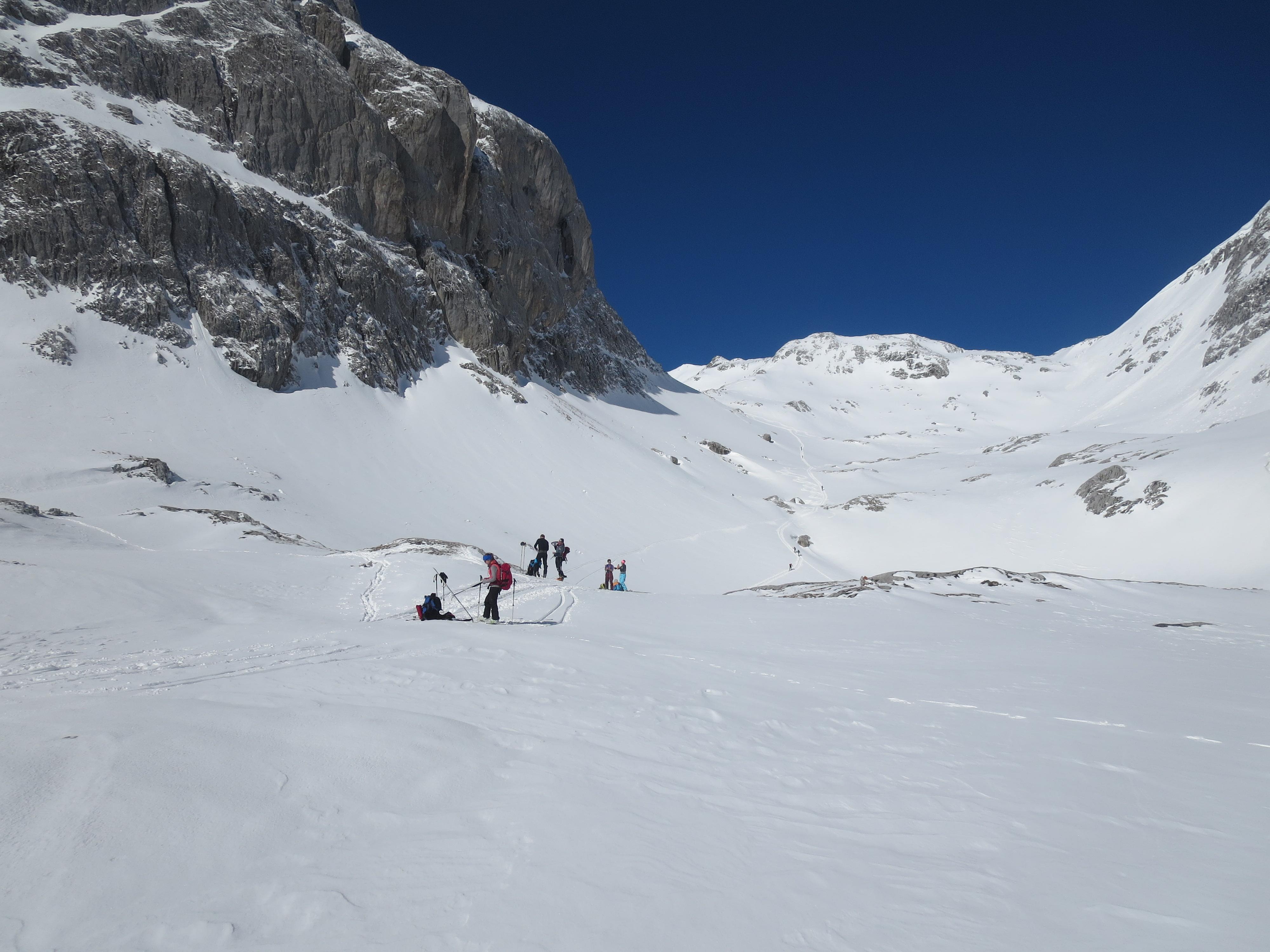 Über Mittenfeld in das Ochsenkar; Pulferschnee auf harter Unterlage . Viele Königgeher waren unterwegs.