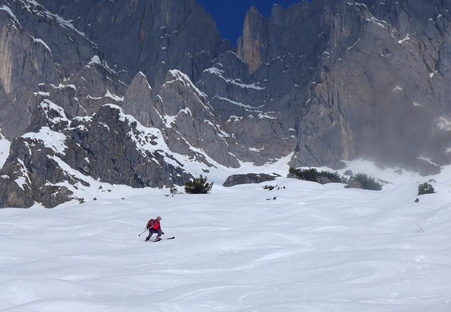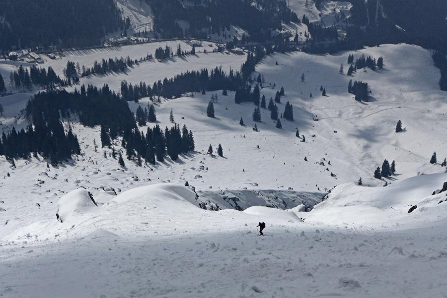 Es heißt jetzt früh aufstehen, die Sonnseite wird recht schnell tief, besonders die steileren Stellen, um nicht wadentiefe