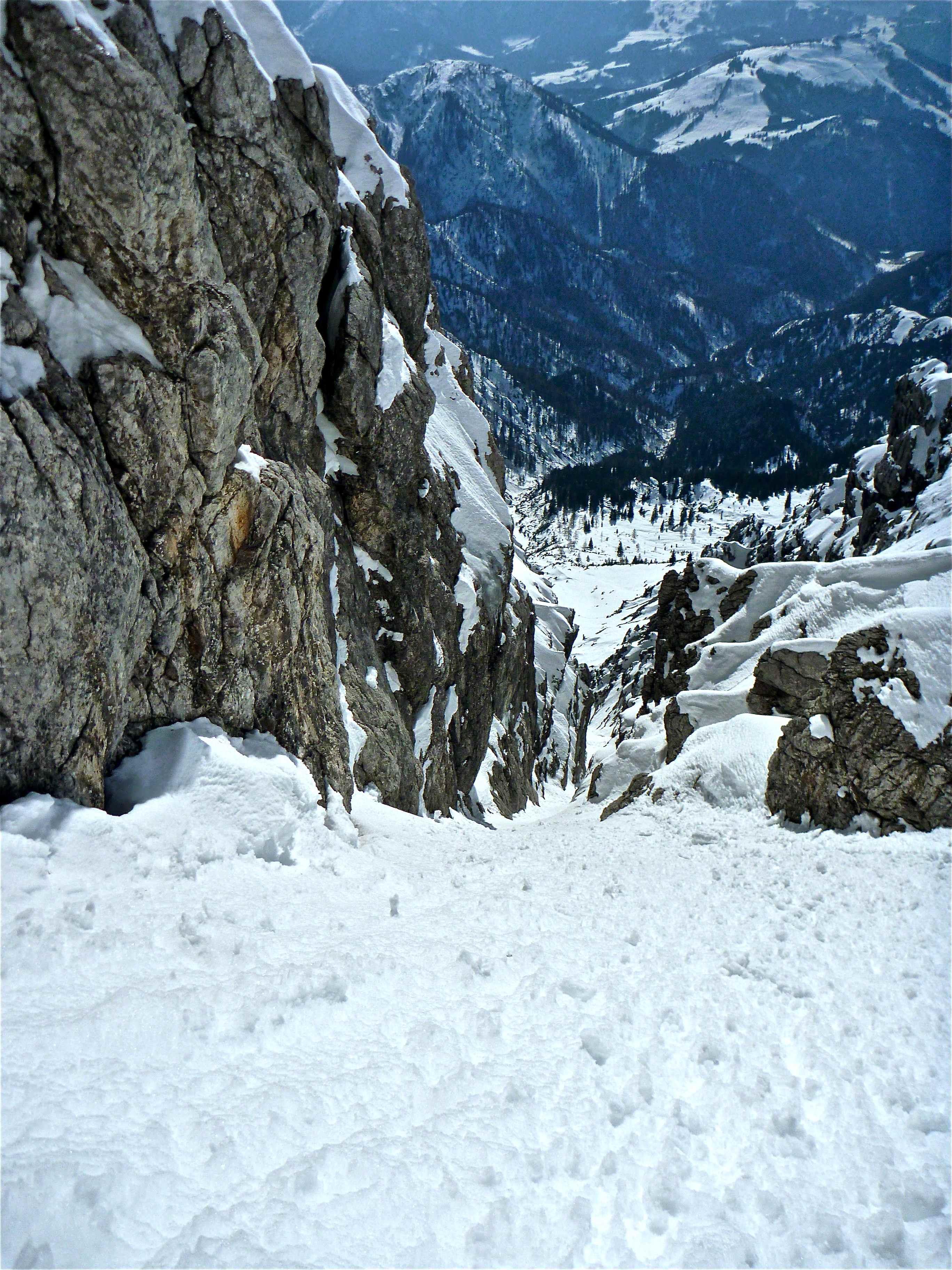 ...dem Bericht vom Tommy gibts kaum was hinzuzufügen. Heute gab`s einfach perfekt softe aber stabile Bedingungen für diese 2 tollen Rinnen aufs Skihörndl. Tragestrecke zwischen Jagdhüttte und Bachquerung vorm Märchenkar ca, 300hm. V.a. bis auf 2100m war`s richtig genial, da keine Lawinenknollen, Interessierte finden die Abfahrtsvideos auf splitboardtouren.at.